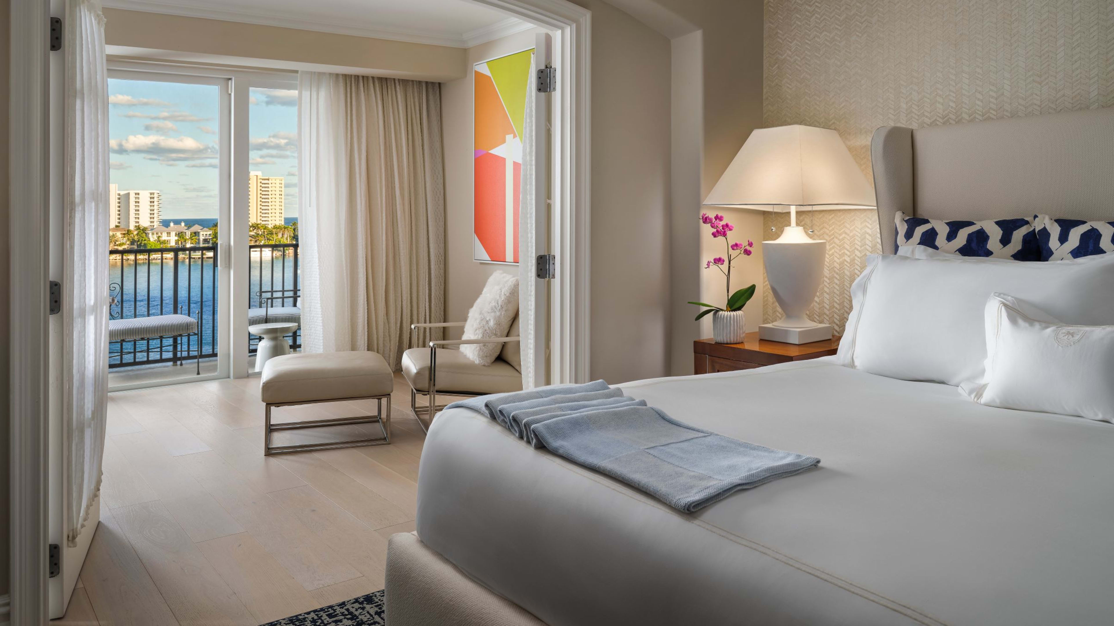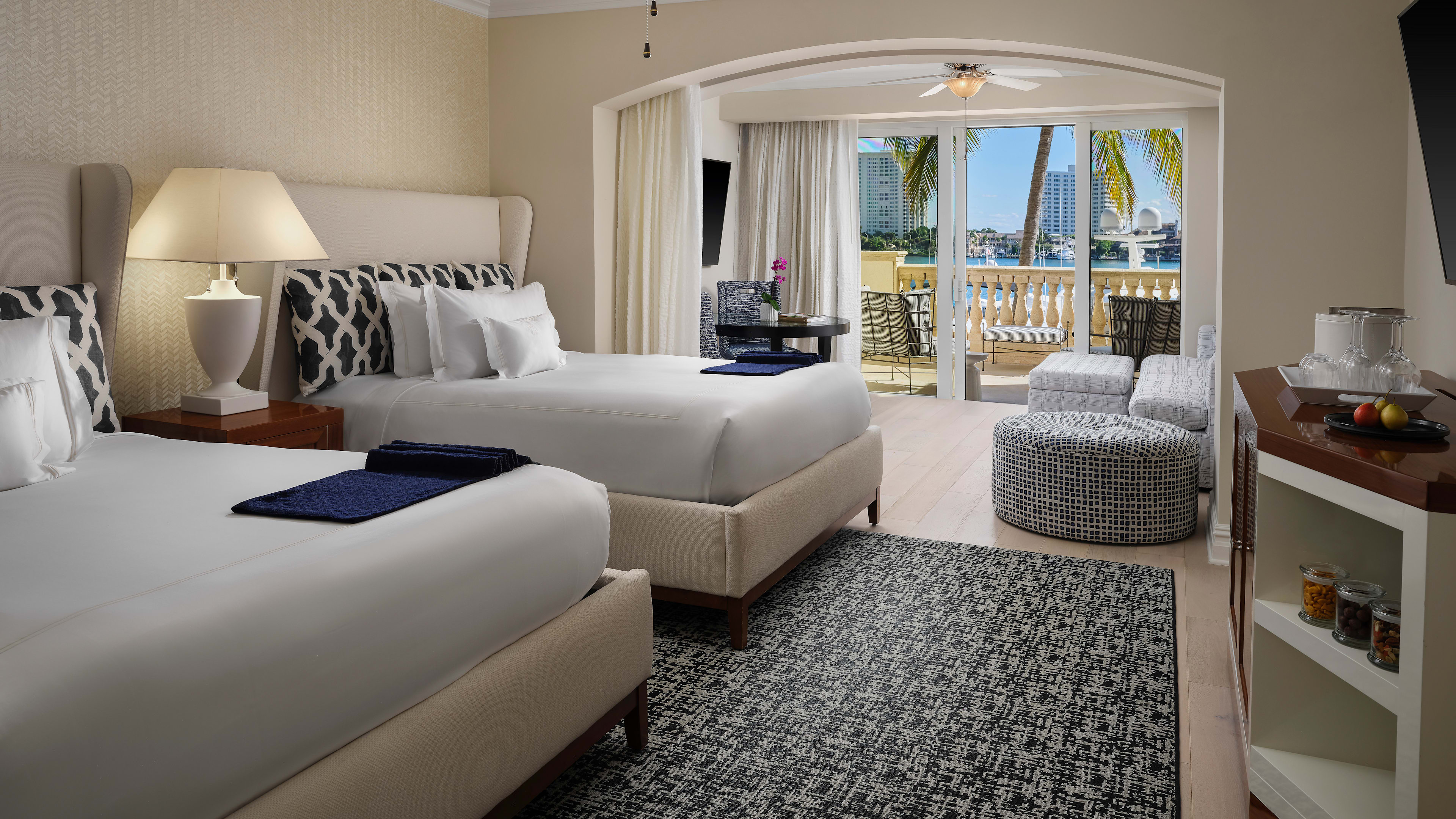 There are several restaurants and bars within the wider Boca Raton resort and guests of the Yacht Club can access them all. Right here at the Yacht Club is fine-dining Flybridge, which overlooks the ocean from its top-floor setting. Work up an appetite with a round of bocce, before heading inside Japanese Bocce Club for some Far Eastern fare (barbecued ribs, sushi and an impressive Wagyu selection). Continental breakfasts are served at Flybridge, but for an additional charge, Yacht Club residents can have breakfast at NYC import Sadelle’s (of brunch and bagel fame) or Mediterranean-style Marisol. There’s also Italian restaurant Principessa for hand-made pasta and gelato by the waterfront, the Flamingo Grill and more.