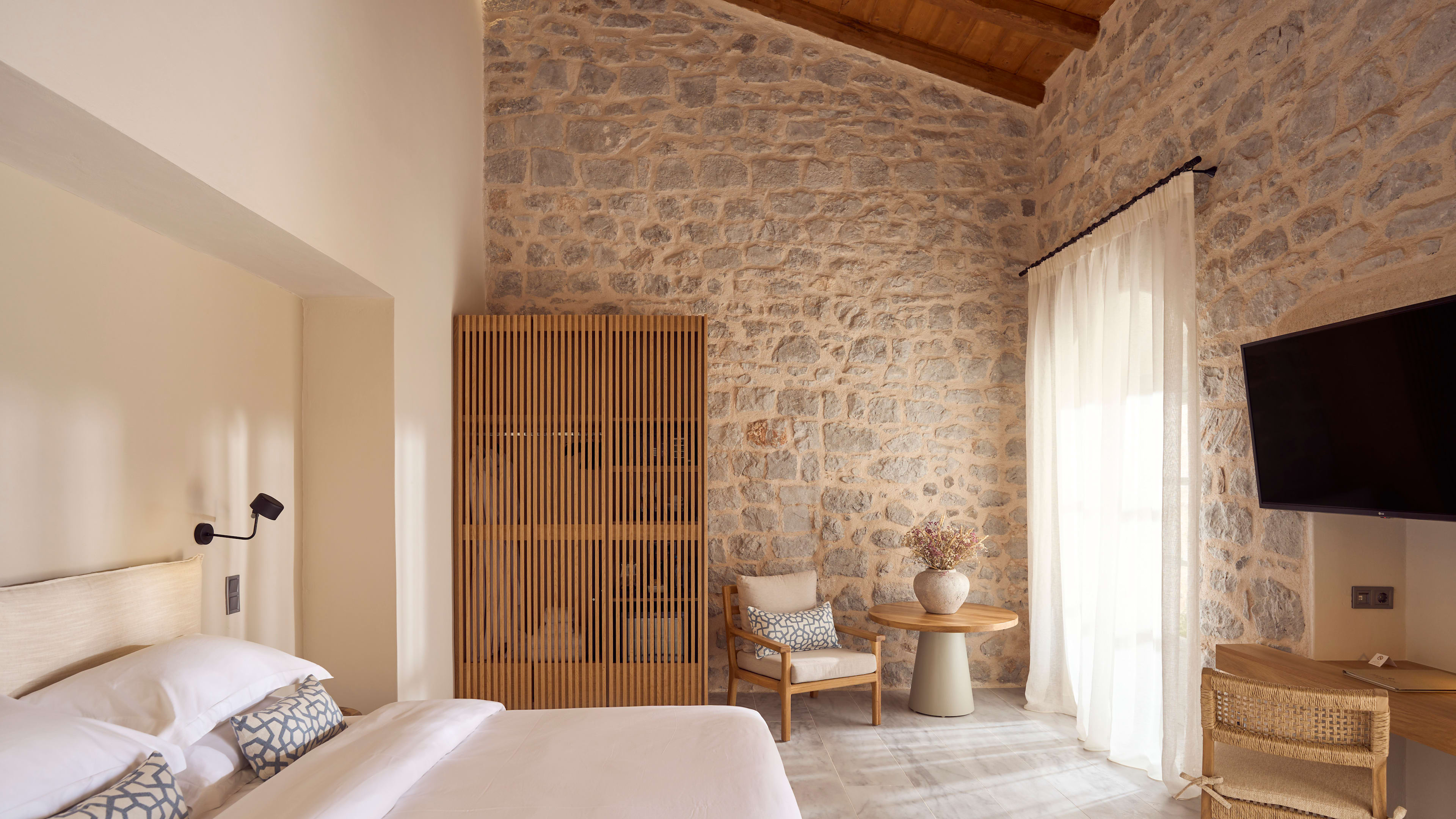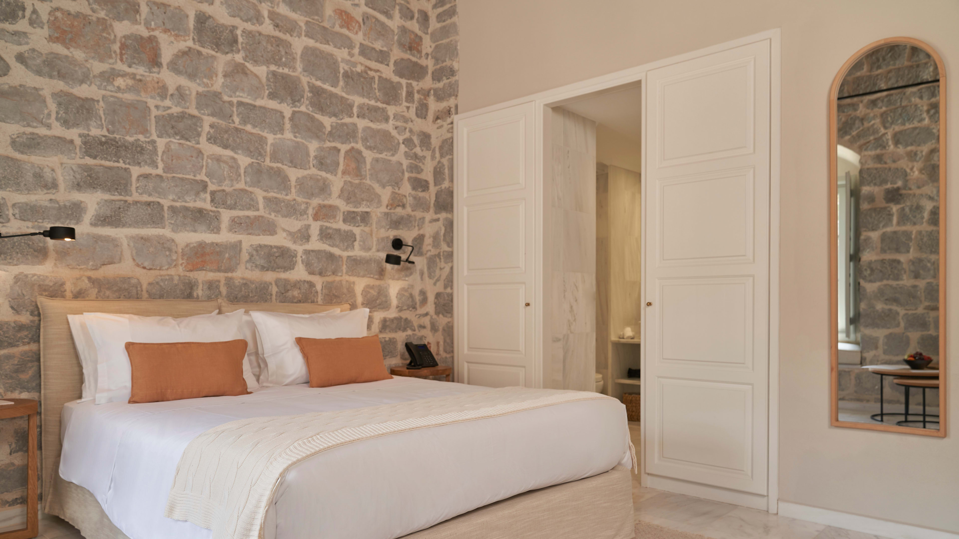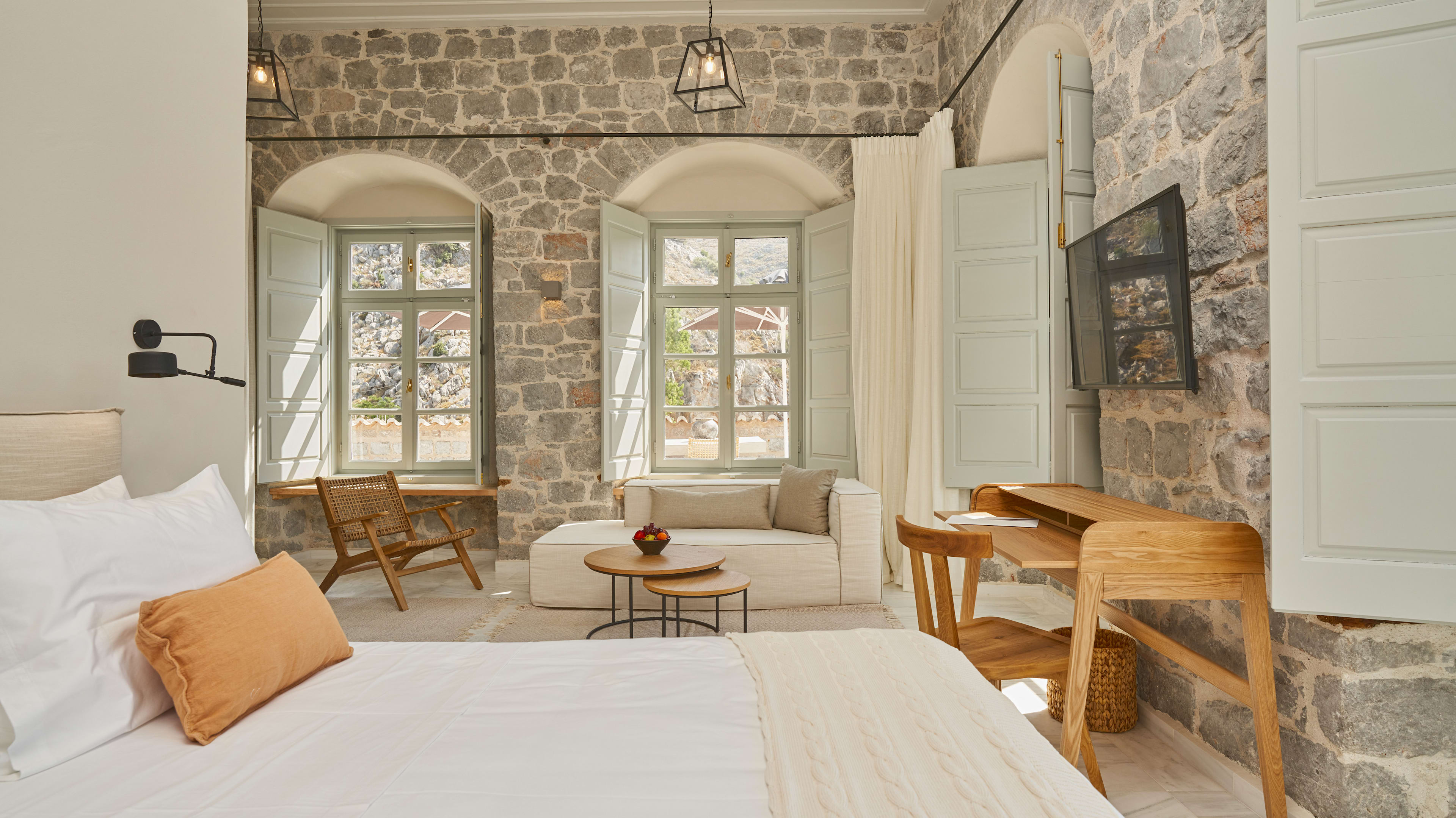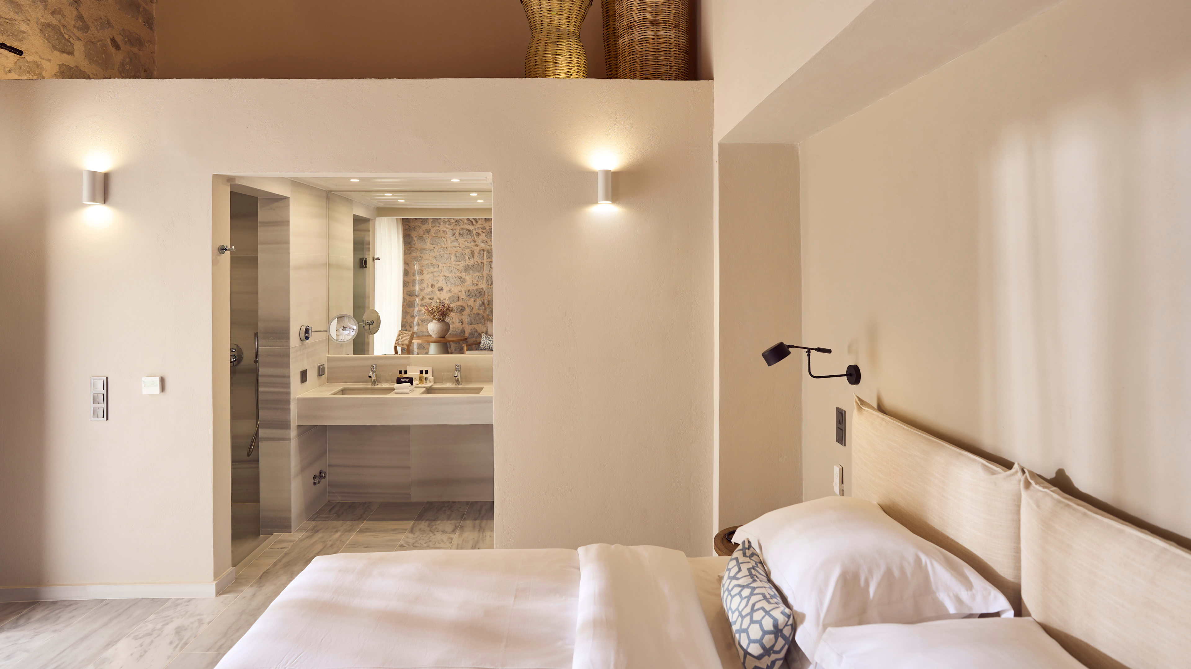 When you’re staying by the only sandy beach in Hydra, you want to be in on the action, and the Beachfront Suites position you staps from the sand; and, if you want to get your strokes in in private, there’s a sunken pool modestly tucked away behind a fence on the terrace too. For wistful sea-gazing, the Tower Suite, with its 19th-century stone walls, has expansive views from the windows and an alfresco sundowner spot.