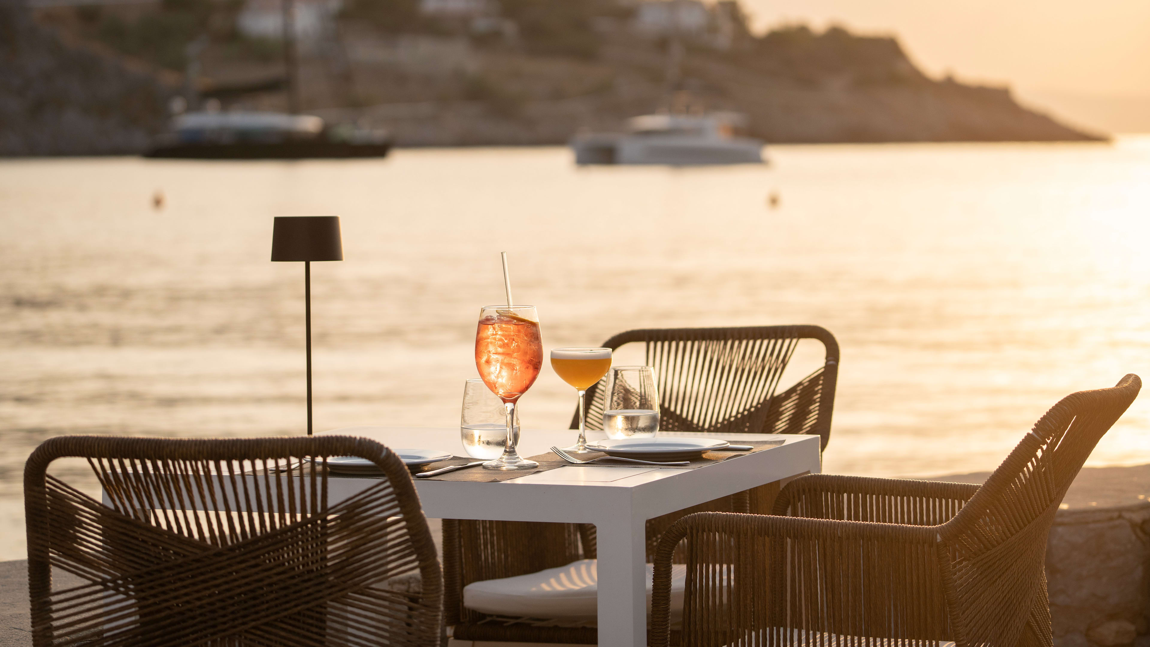 Say ‘aye, aye’ to Captain M, the hotel’s restaurant, named in tribute to military leader Miaoulis. Rations are anything but meagre here and there’s a steady stream of fresh catches used in dishes such as citrus-y grilled shrimp with a truffle-balsamic crumble; sous-vide octopus with squid-ink mayo and confit lemon; and lobster salad with salty Arseniko cheese crumbled over; or starring in the siren song of a sushi menu. The cauliflower salad is also a signature with caramelised almonds and honey vinaigrette, and the likes of crab brioche with avocado cream and cinnamon-y baklawa with marzipan ice-cream make lunching a decadent affair too. Breakfasts on the Greek islands are always an event, and there’s no exception here, with moreish feta-laden tomatoey strapatsada, olive-pocked omelettes, French-toast-style tsoureki, thick yoghurt drizzled in local honey,and a Grecian pie of the day.