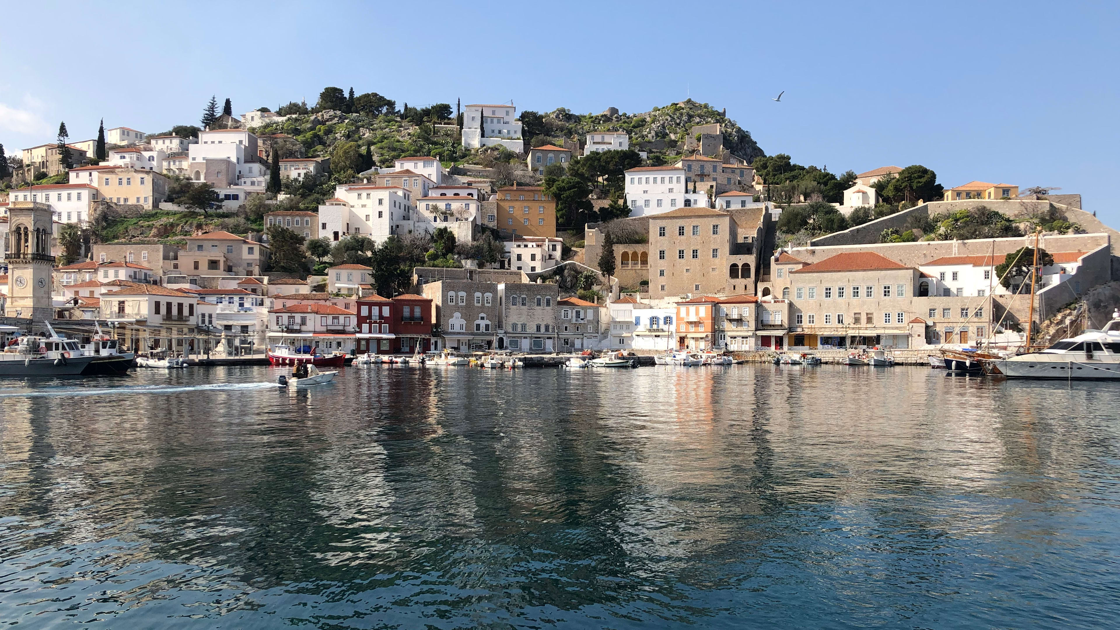 Cars are banned on Hydra, and this is why four legs are good here: traditional methods of transportation (horse, donkey, mule) are still in use.