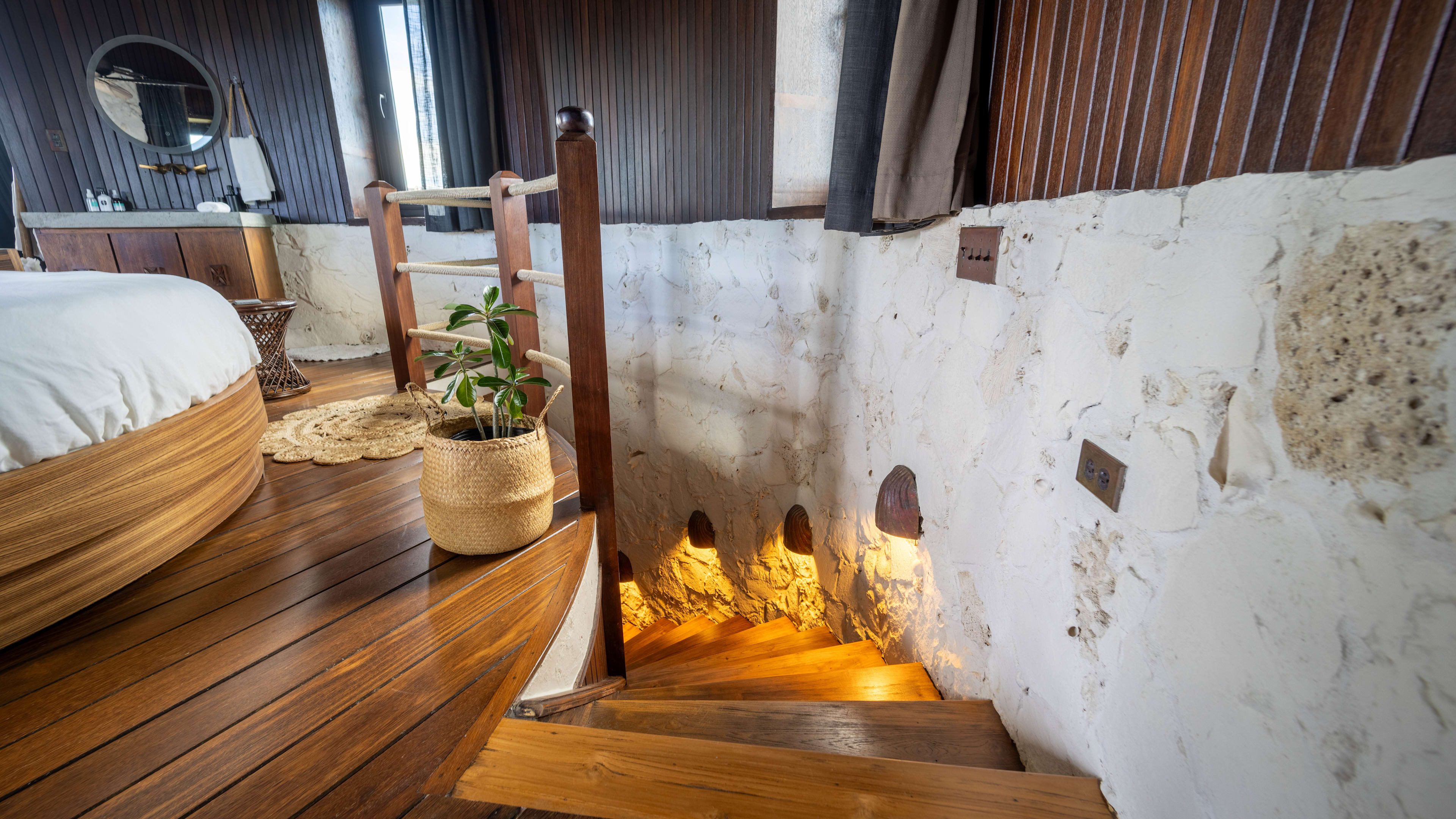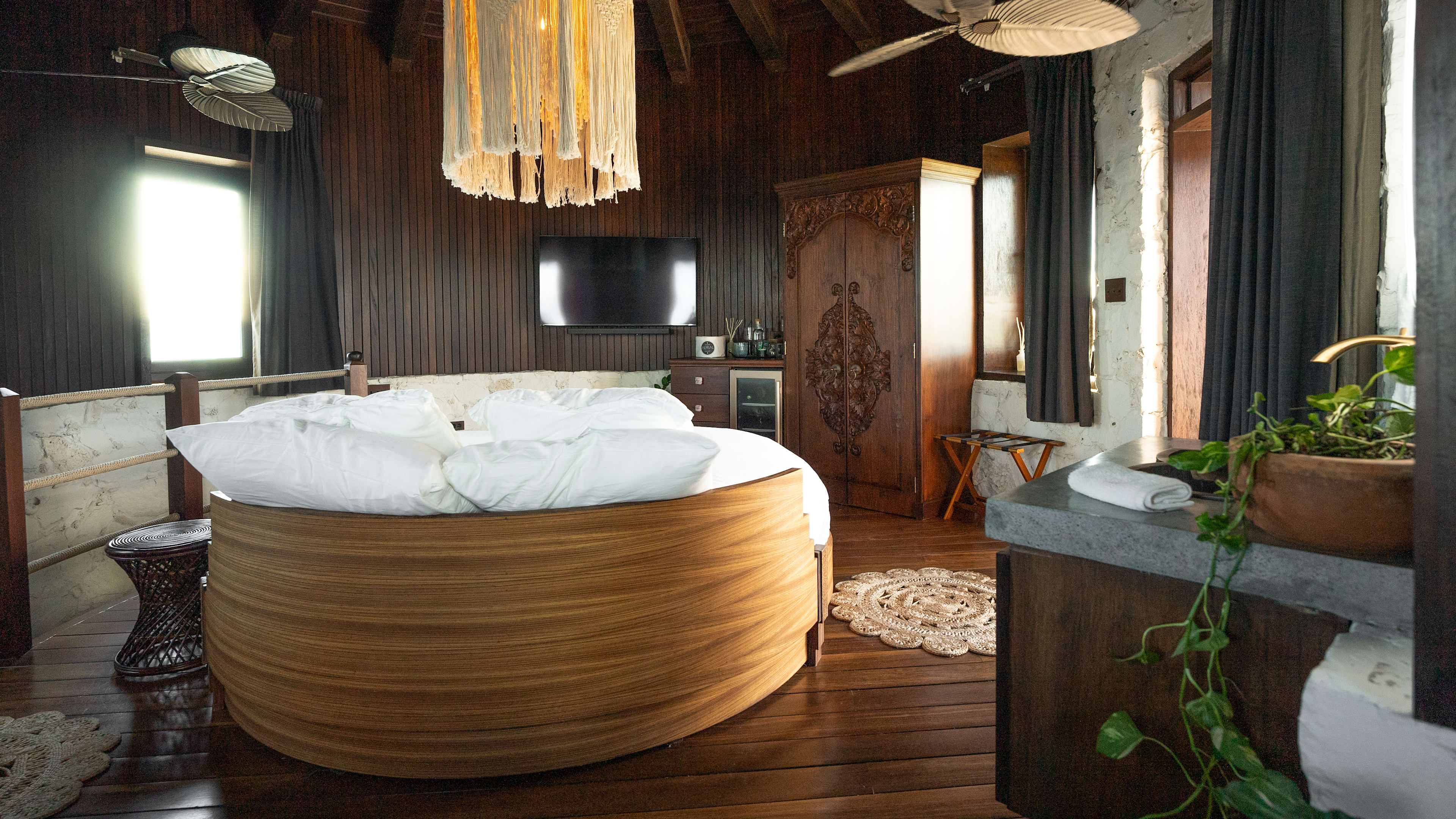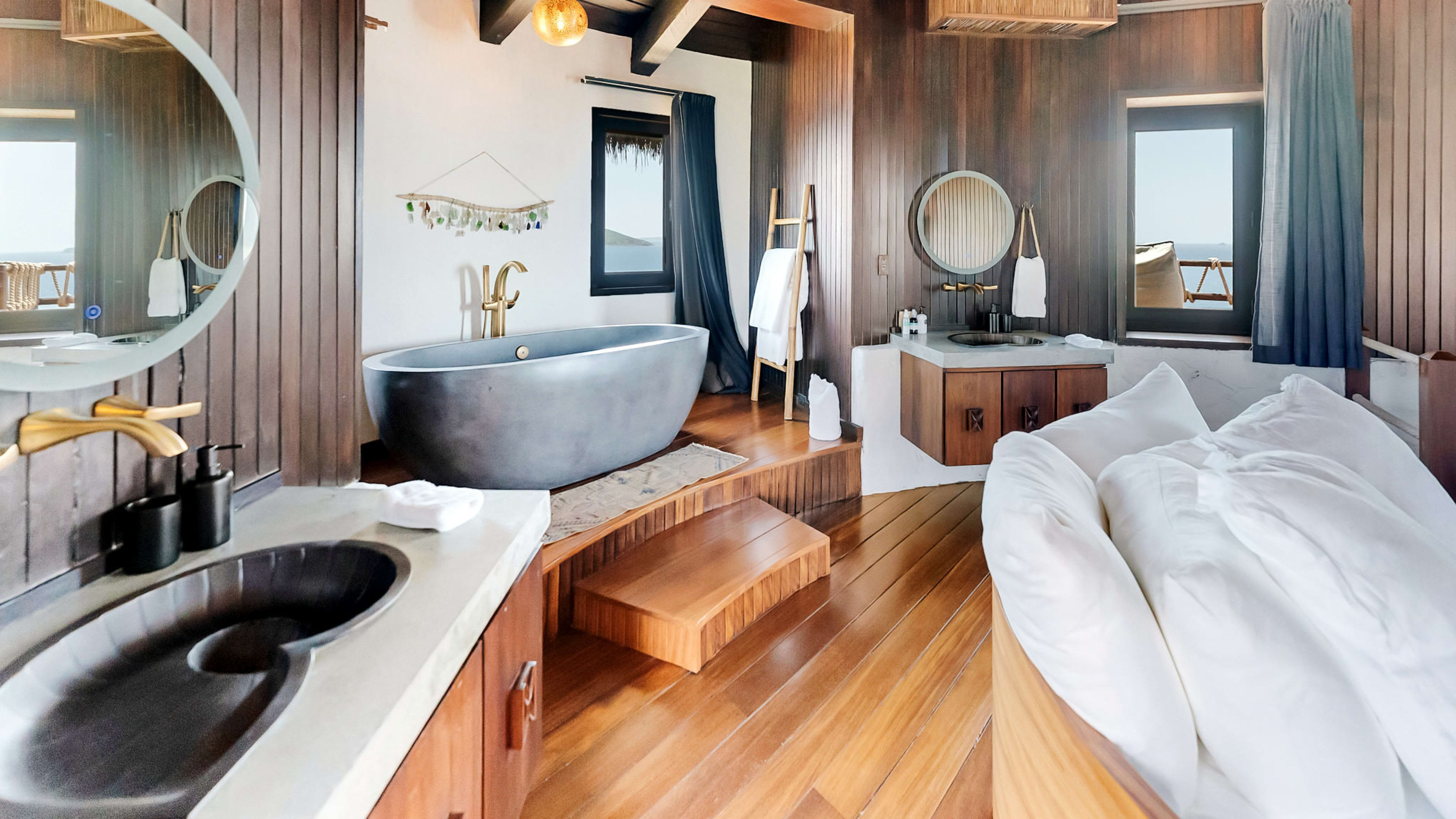 Dream is a circular reverie with a round bed, freestanding silver bath tub, a wraparound balcony and serious Rapunzel vibes, although we’re not sure how a princess would feel about the outdoor loo (it is adorned with pretty blue mosaics, though…). And if a rotund room is a must, Presence is another spherical solution.