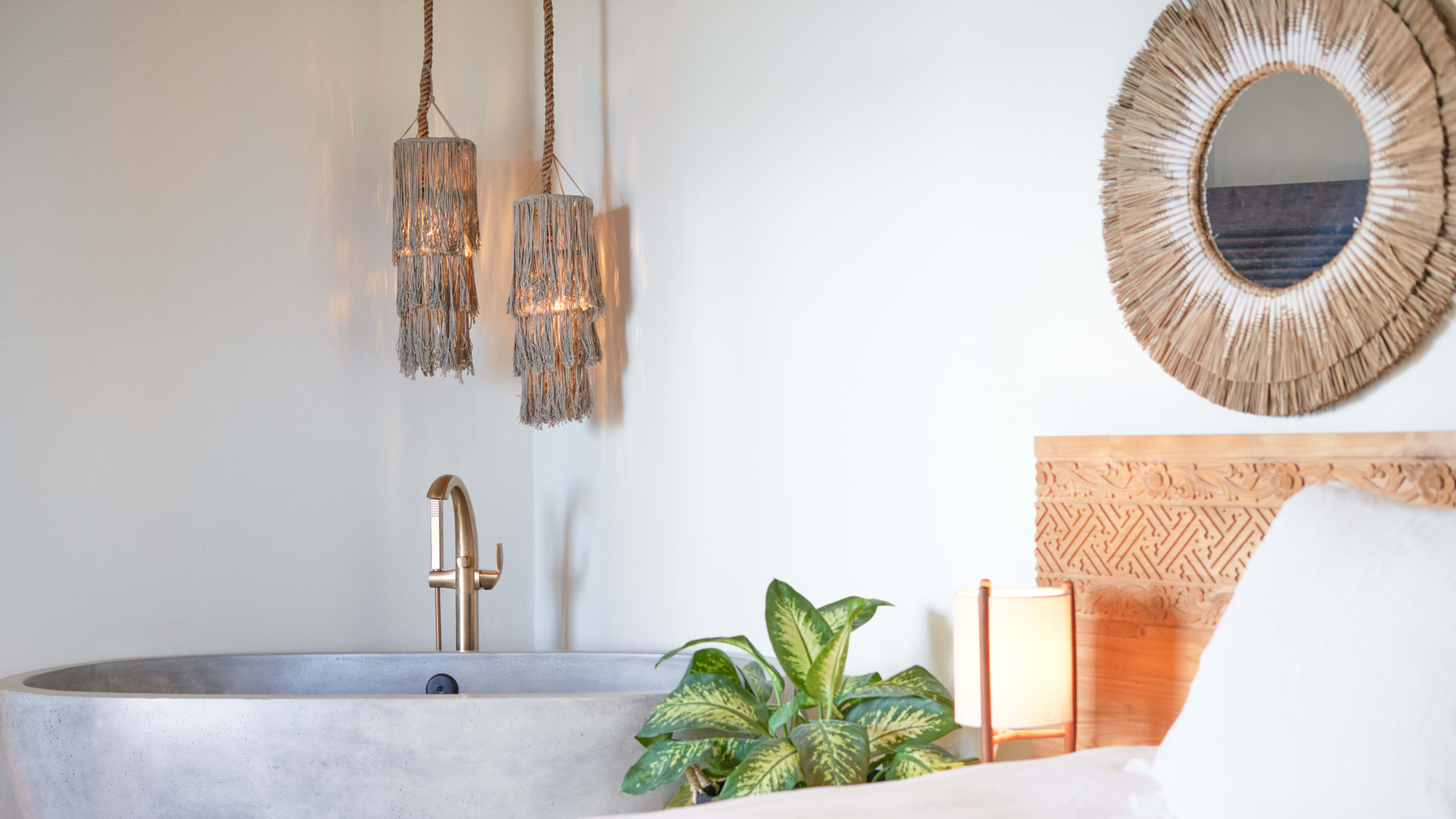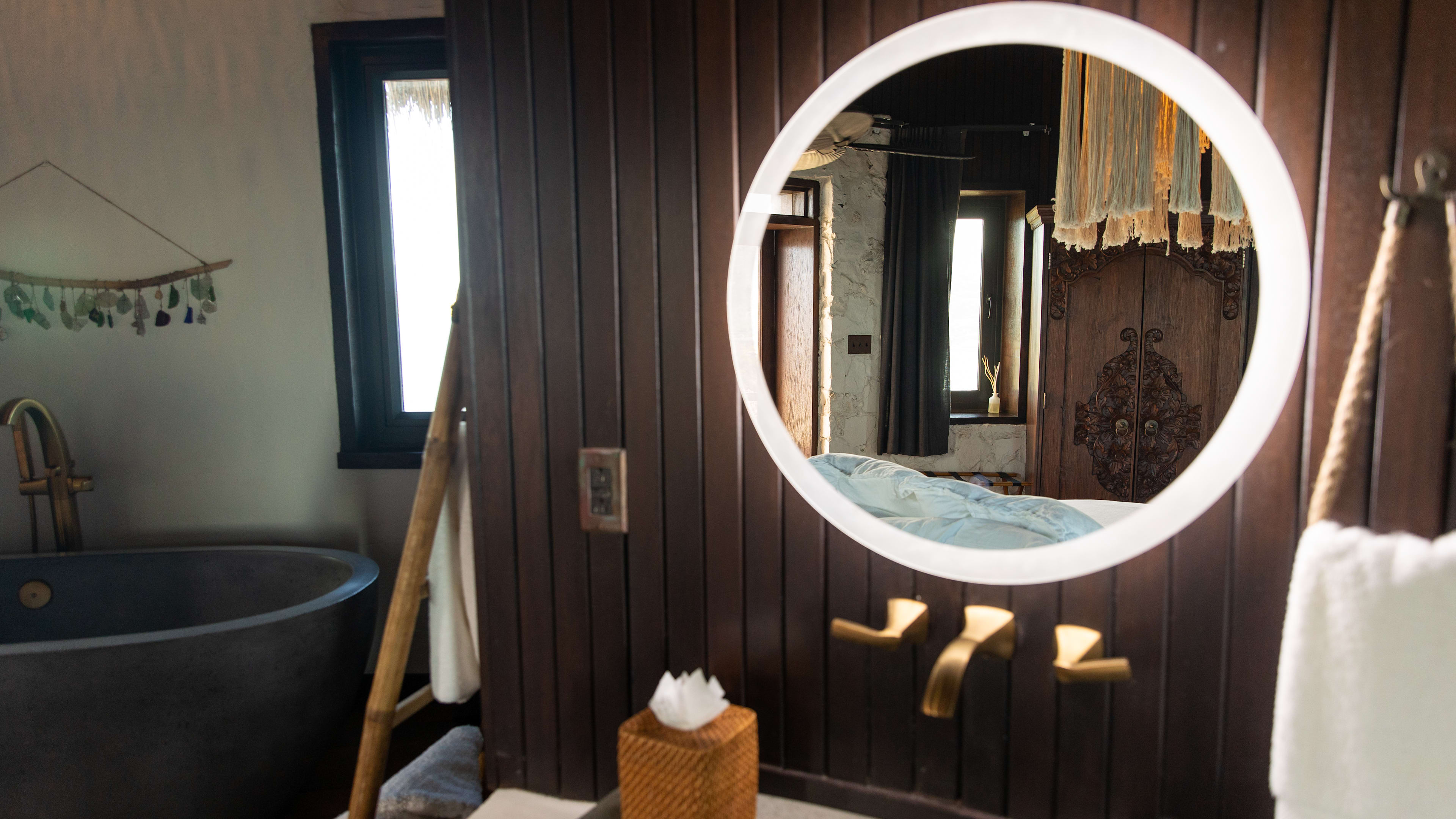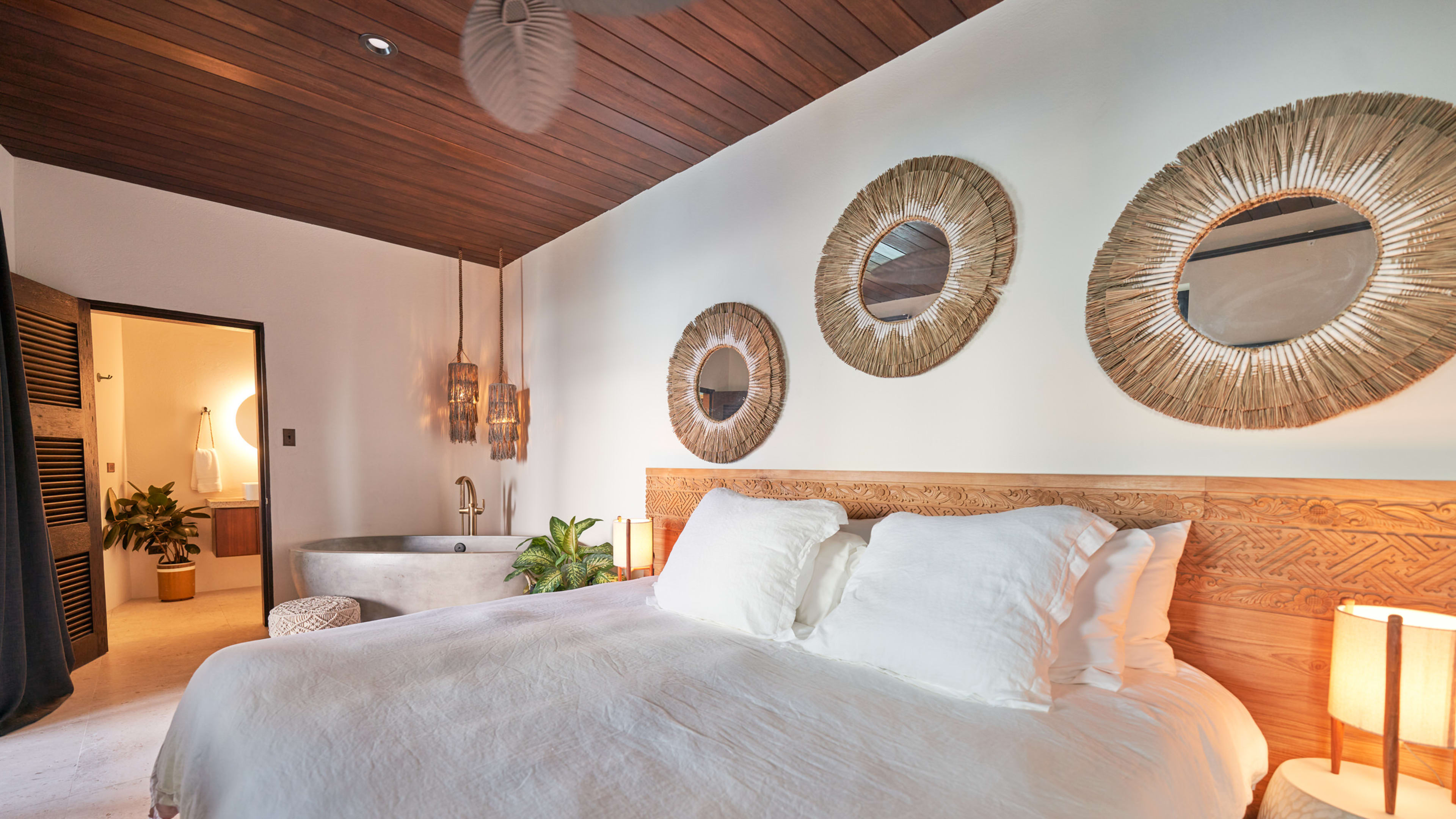 Dream is a circular reverie with a round bed, freestanding silver bath tub, a wraparound balcony and serious Rapunzel vibes, although we’re not sure how a princess would feel about the outdoor loo (it is adorned with pretty blue mosaics, though…). And if a rotund room is a must, Presence is another spherical solution.