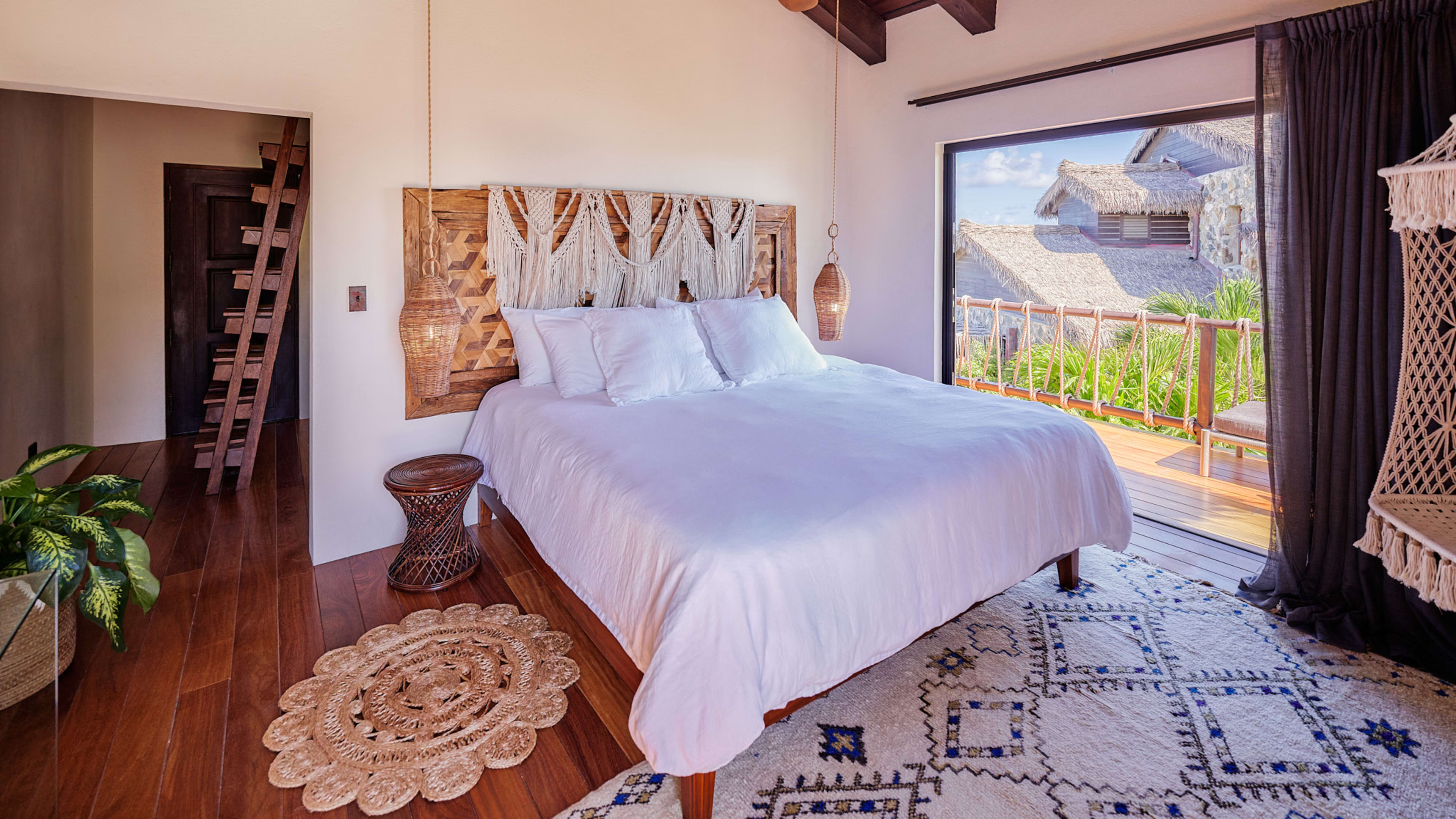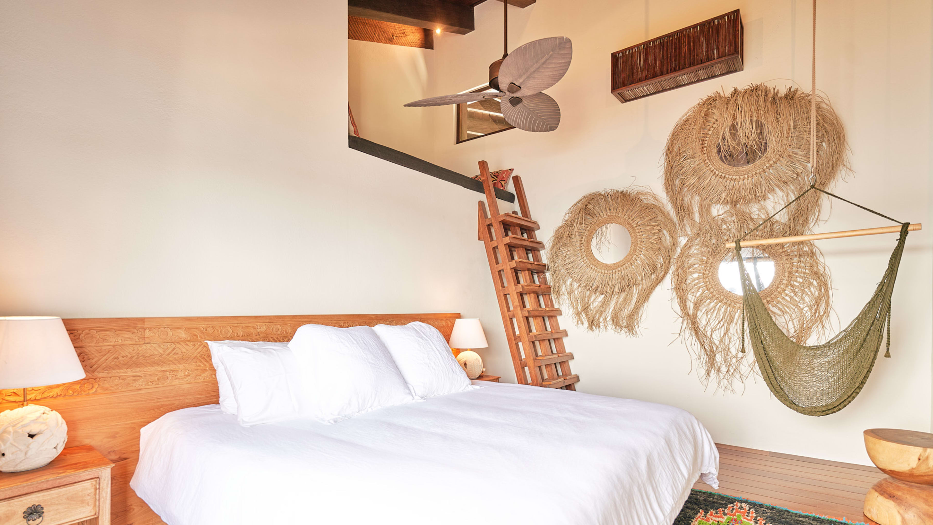 There’s not so much a restaurant at the Aerial, more a series of dining destinations, which change frequently (staff will alert you to where you’re eating, whether it’s up on the Higher Love deck, poolside, or a short Moke drive away at the beach). Guests are supplied with lunch and dinner choices at breakfast (usually based around what’s growing in the farm), and will then make their way to the designated spot, which will be illuminated with tiki torches and fairy lights after nightfall. Your daily food intake might feature shakshuka for breakfast, ponzu-marinated tuna for lunch and zucchini fritters with a date, lemon and butternut squash purée, toasted almonds and roasted vegetables for dinner. If your inner carnivore is calling, a steak can of course be sourced.