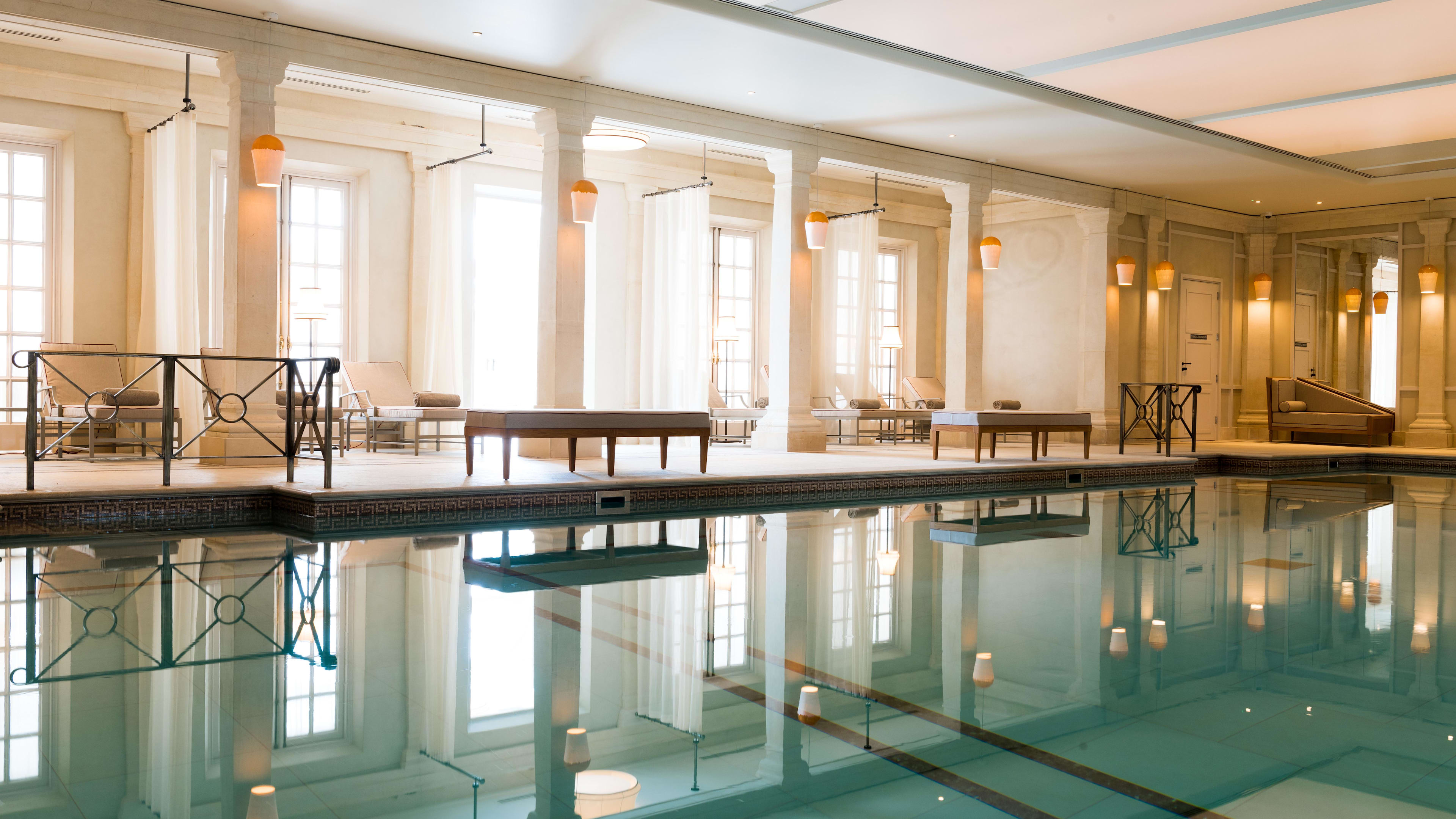 The Pavilion Spa boasts a heated indoor pool surrounded by loungers. The walled garden – the amorous arbour that kick-started the Profumo affair – is home to the heated outdoor pool, where waiters serve drinks and snacks to reclining guests.