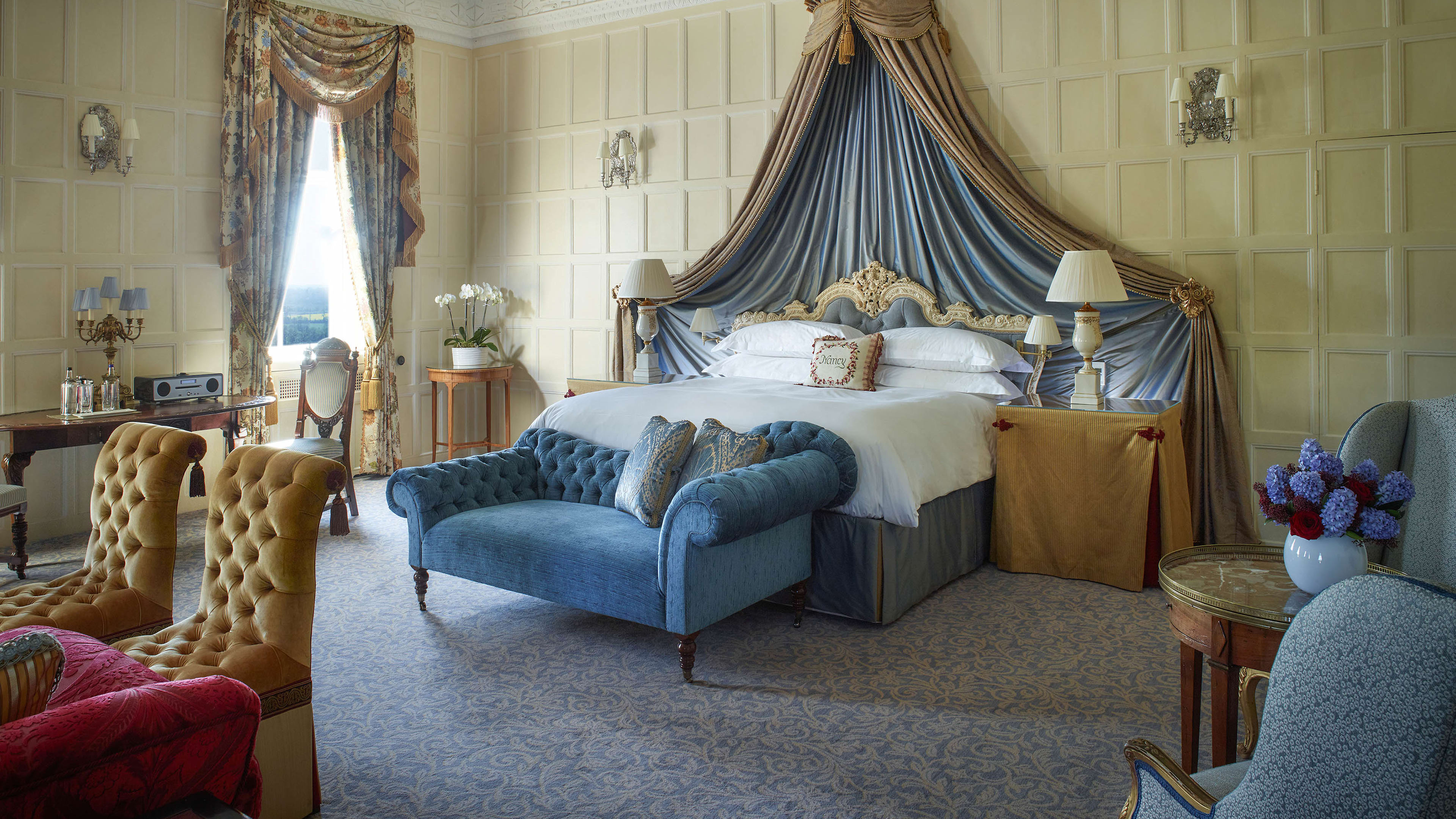 Each one of Cliveden’s rooms – named after the illustrious personalities who have been part of the manor’s checkered history – has something uniquely appealing about it. But if forced to pick favourites, the Henry James suite, with its 10-mile view of rolling countryside from its marble bath tub, the Sutherland room with its palette of soft pastels and its astonishingly ornate chimneypiece, and the Chinese room, which is light, airy and impeccably styled in light golds, are all pretty special. Ask for a suite in the main house, overlooking the gardens, rather than rooms on the ground floor, which are located by the car park.