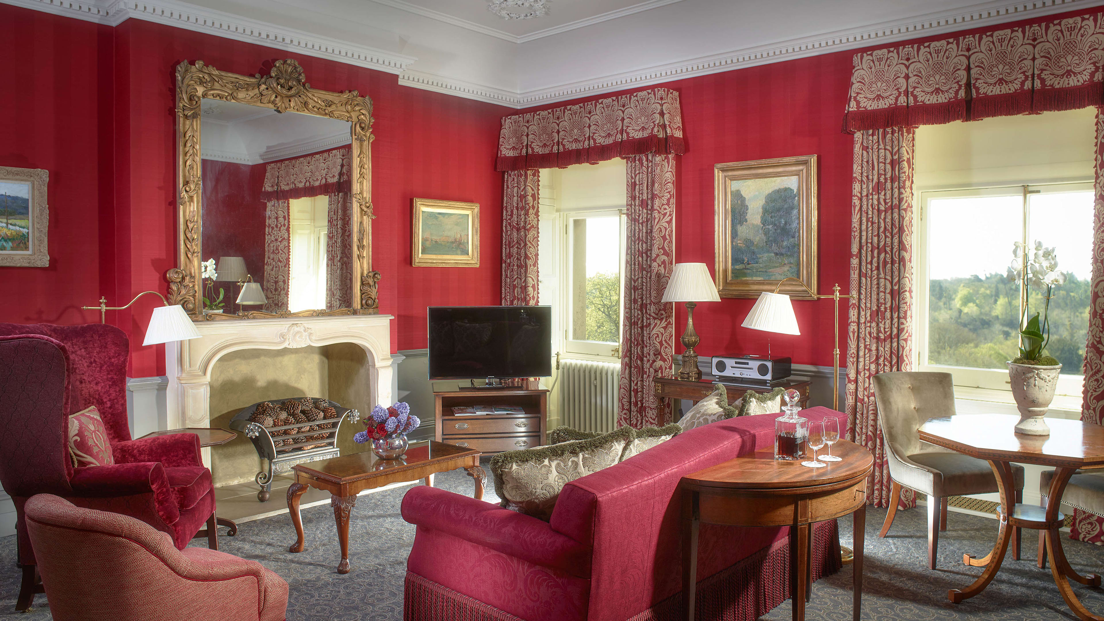 Pavilion spa, state-of-the-art Technogym gym, indoor and outdoor tennis courts, squash courts, boathouse with two boats, helipad, library, DVD/CD selection. In-room amenities: TV, DVD/CD player, roll-top baths, under-floor heating.
