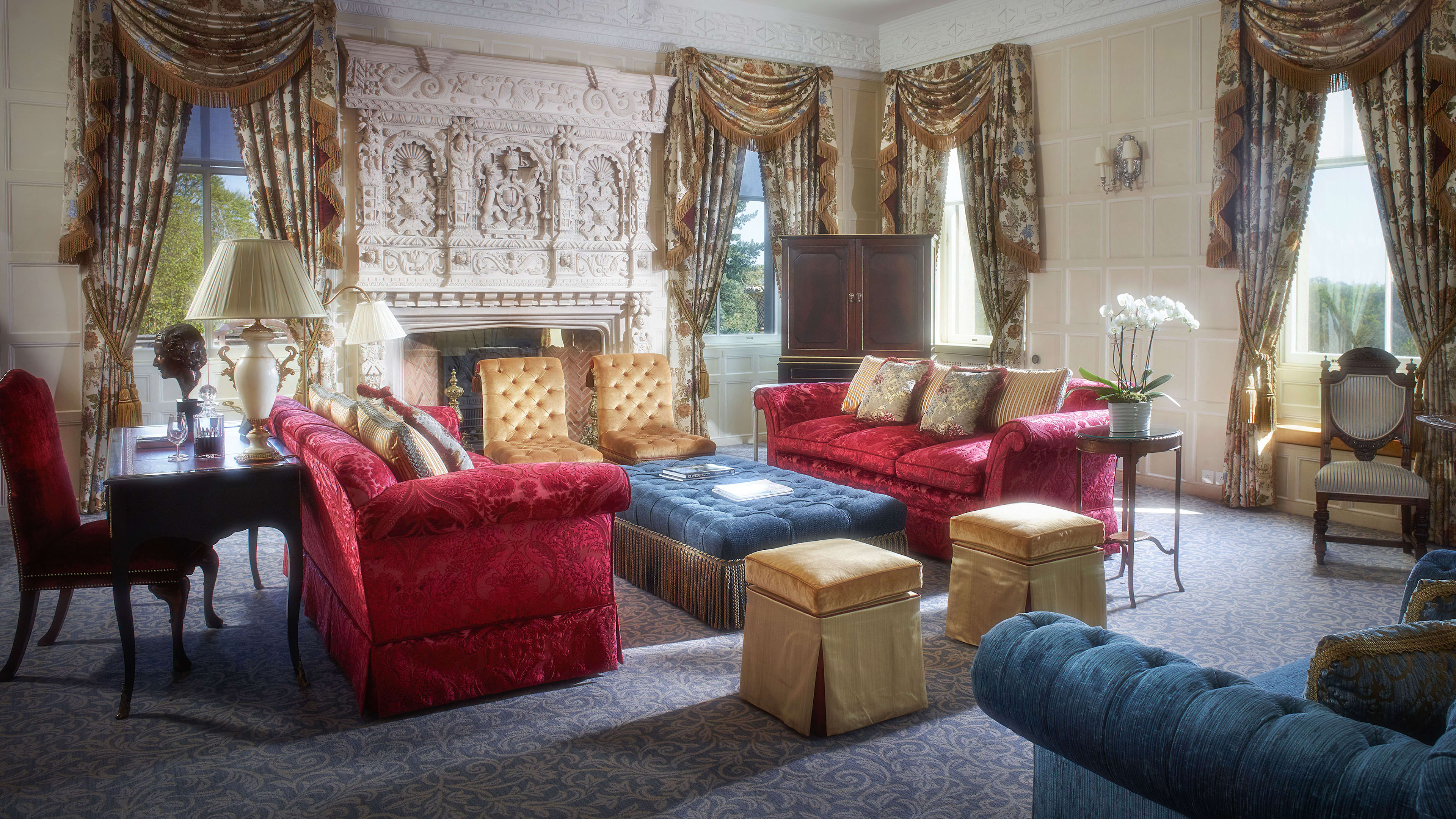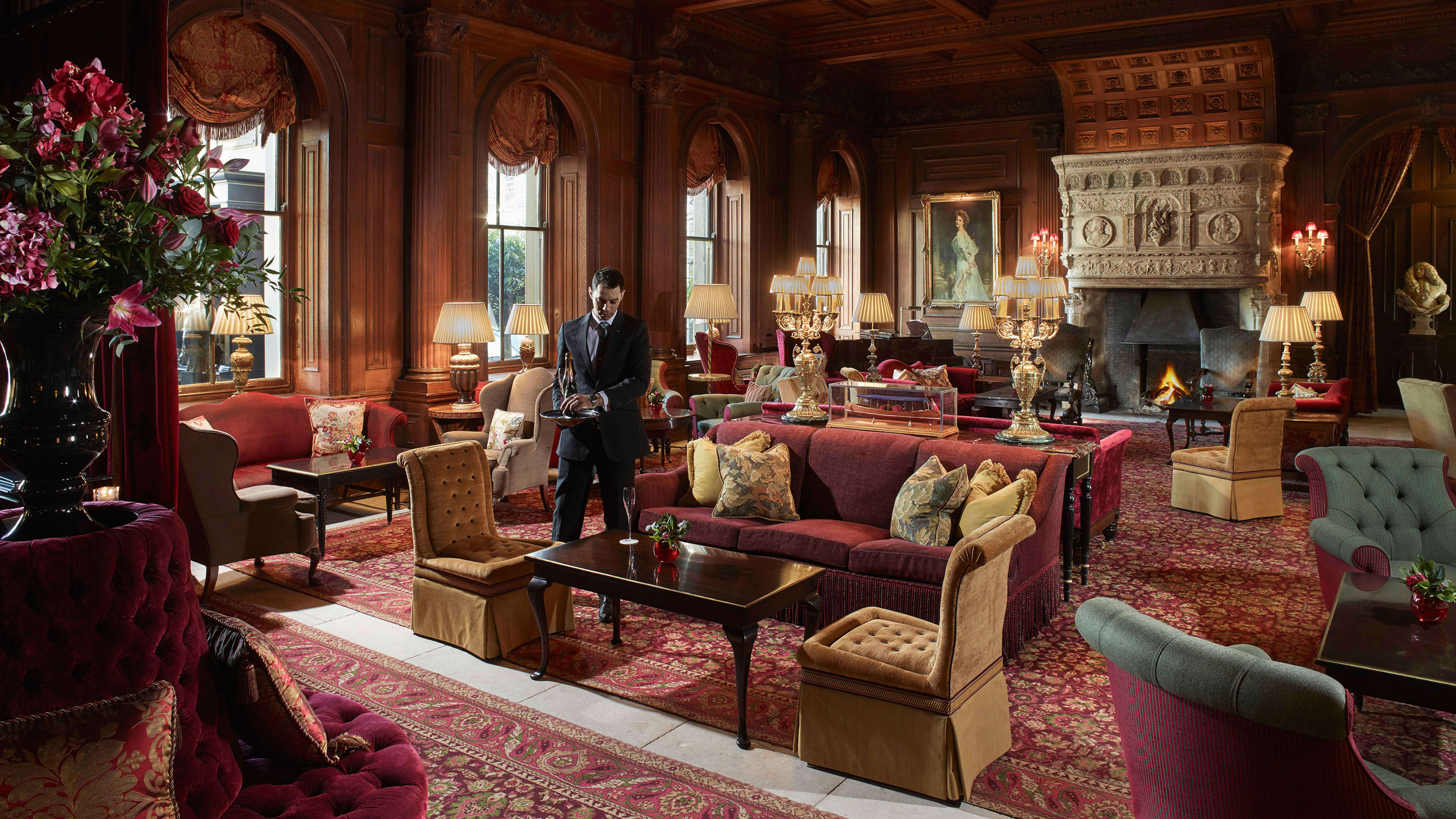 Guests may sup signature Cliveden champagne cocktails and marvel at the majestic staircase, imposing fireplace and delightfully vintage furnishings of the sparkling Grand Hall.