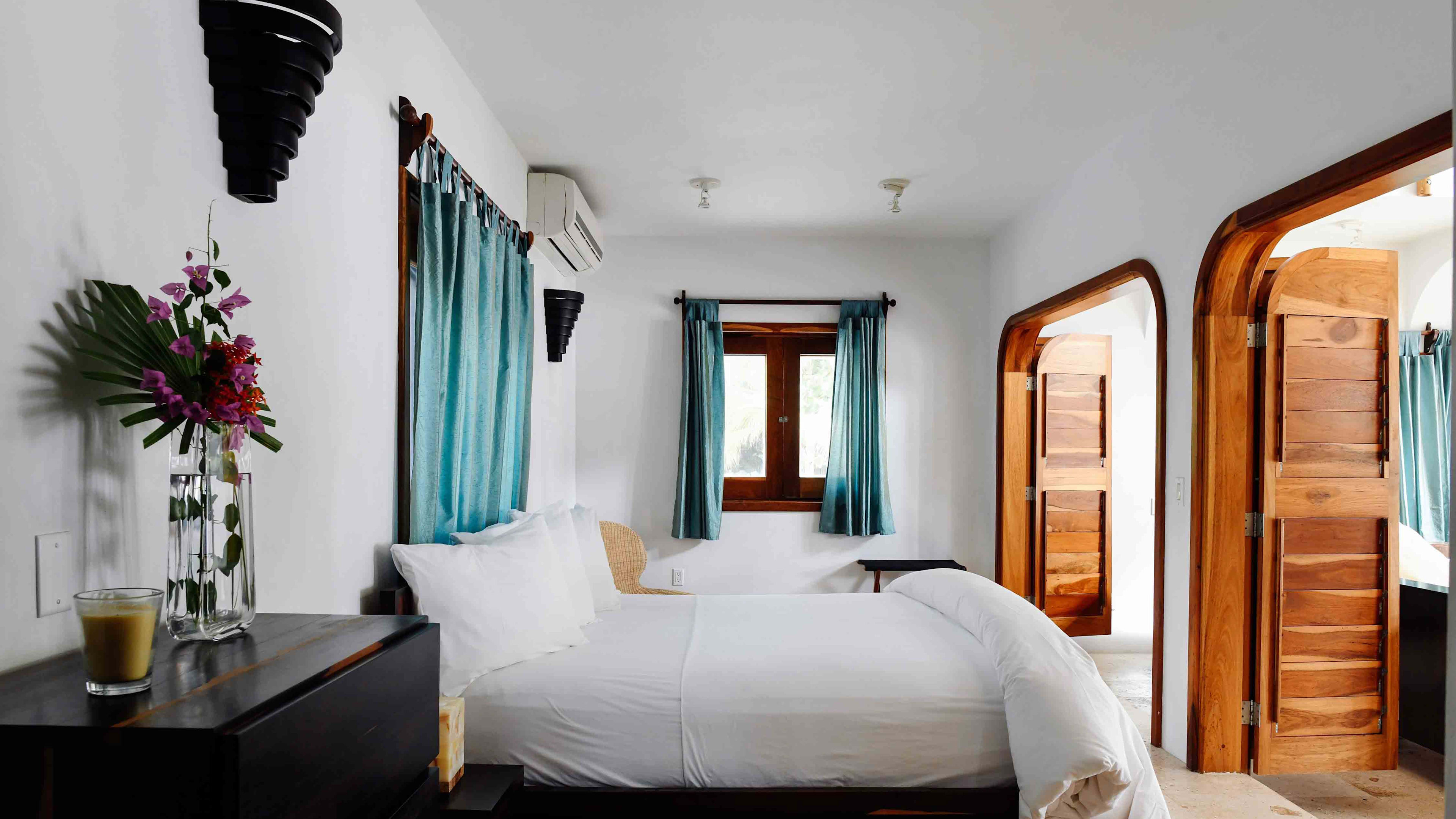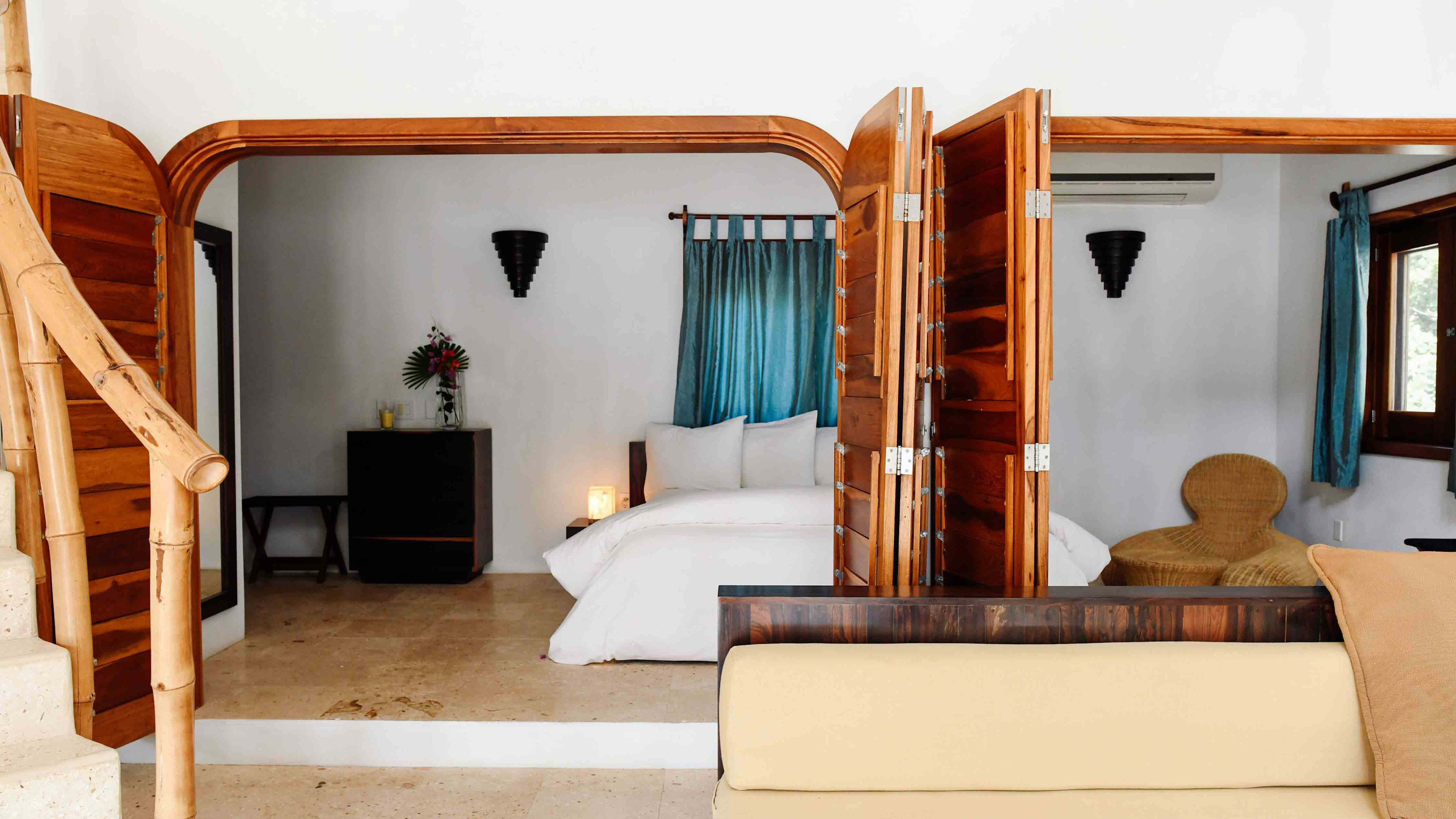 Let the sound of the crashing surf lull you to sleep each night from the pink-hued ‘Melon’ Deluxe Beachfront Casita just a stumble away from the sea. As with all of the the casitas, this thatched roof palapa has a private porch and is tastefully styled with locally crafted artwork and furnishings. This casita also has double mosaic sinks in the ensuite – the key to harmony in some relationships.