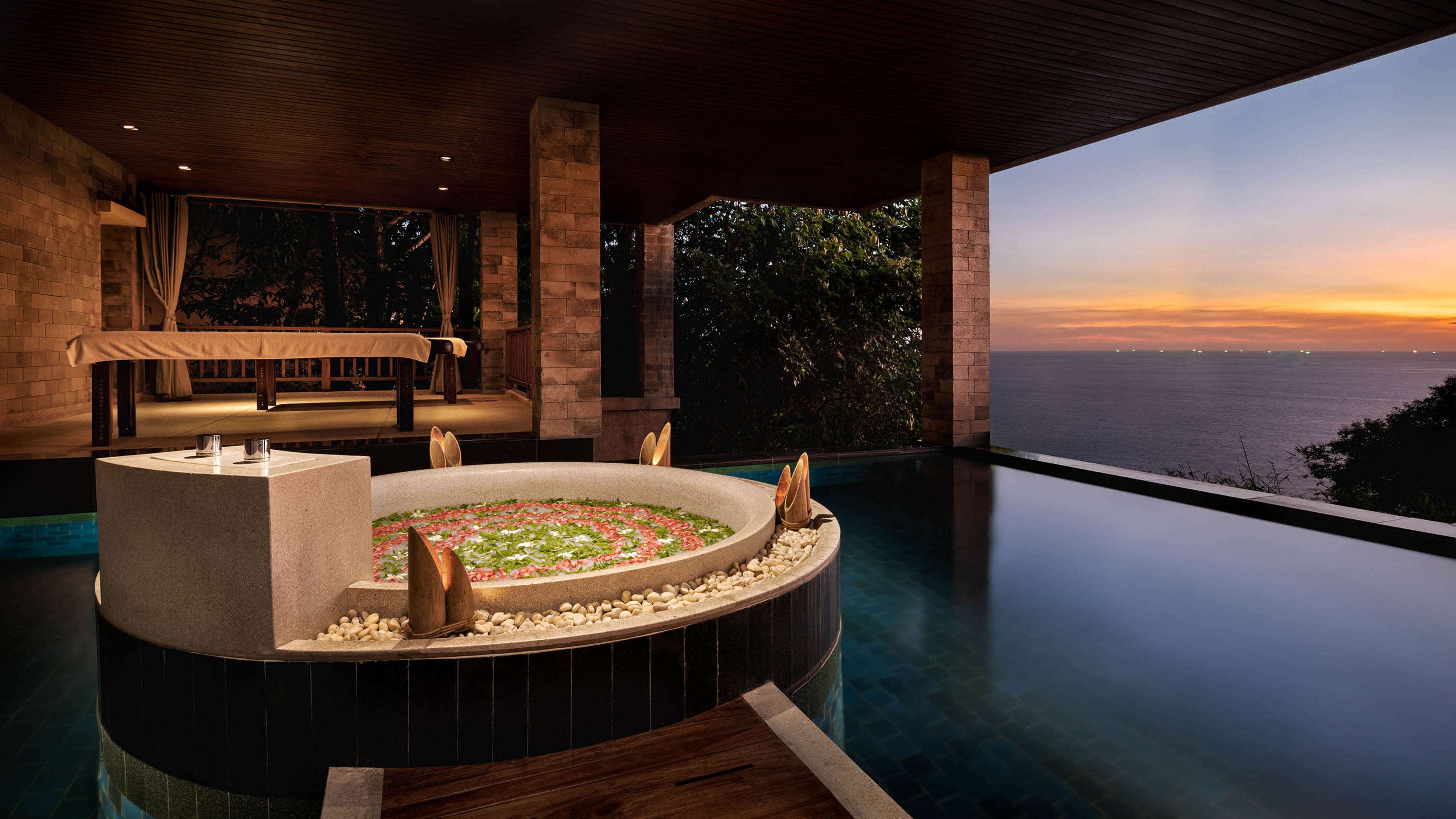 Paresa's streamlined infinity pool is a thing of beauty, flanked by a vast wooden deck delivering Andaman Sea views. Poolside food and bar service means you won't go hungry or thirsty lapping up those views from your lounger or beanbag, and the heady cliffside setting means you can survey your holiday kingdom from on high. Shake things up in the Energy Flotation Pool, a small, black-terrazzo number on the sun-deck with a rose quartz crystal obelisk for positive vibes. The pool is open between 10am and 6pm; after that, it's the setting for romantic dinners.