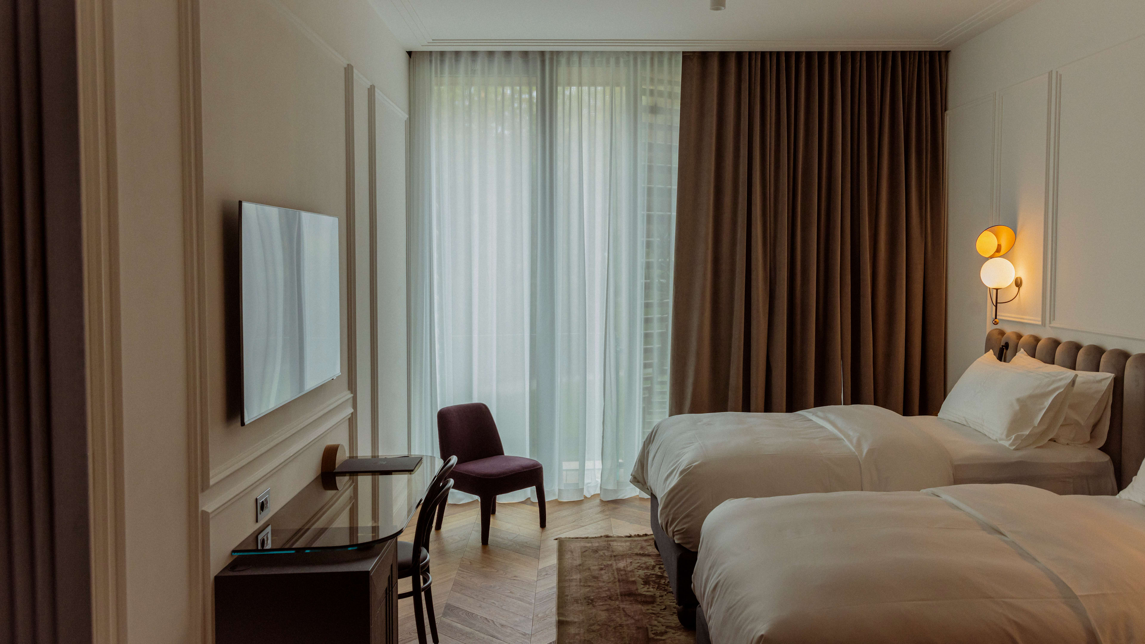 Close to all the action, but set back from the main streets, there’s an Edenic feel to AS Boutique Hotel, with a gauntlet of greenery at its entrance, a blooming inner courtyard and small peaceful park set behind. The verdure rambles on in Tivoli Park close by, which takes up a swathe of the city with its romantic landscaping (largely put in place by architect Jože Plečnik, who had a huge impact in modelling Ljubljana). It’s also home to the International Centre of Graphic Arts, housed in a 17th-century mansion, National Museum of Contemporary History and the Zoo.
