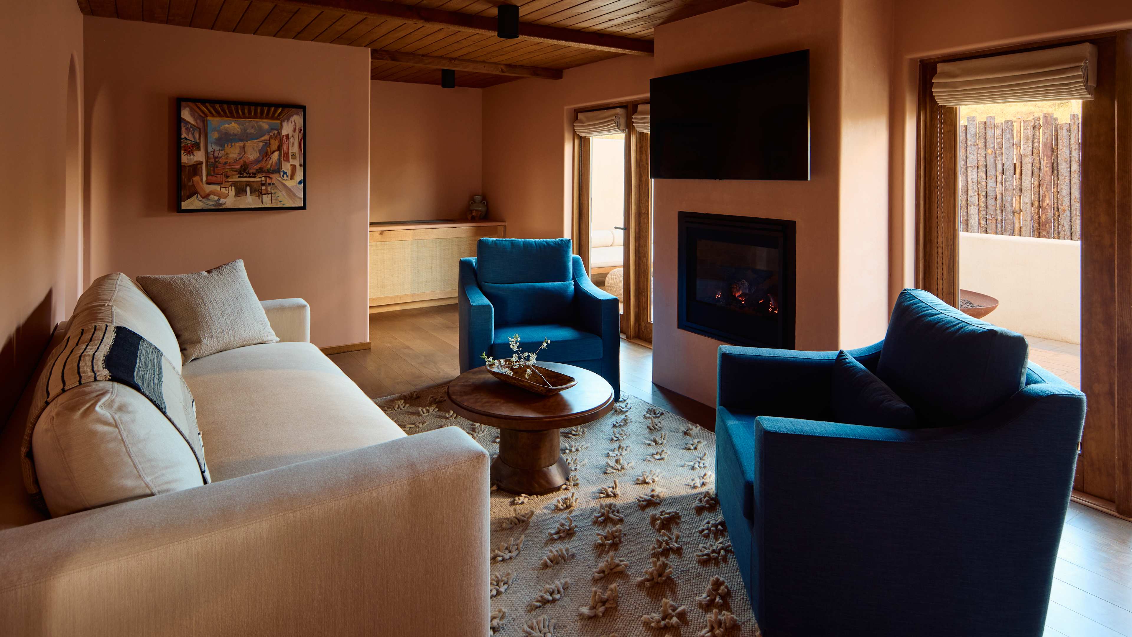 Your nearest international airport is in Albuquerque, a little over two hours from the hotel by car; private transfers can be arranged for $280 each way. If you’re arriving from within the States, it’s quicker to fly straight into Taos Regional Airport, which is a closer 15-minute drive and $30 for one-way transfers. Staff can also arrange collections from Santa Fe for between $100 and $150 each way — an alternative option for domestic flights and around 90 minutes away by car.
