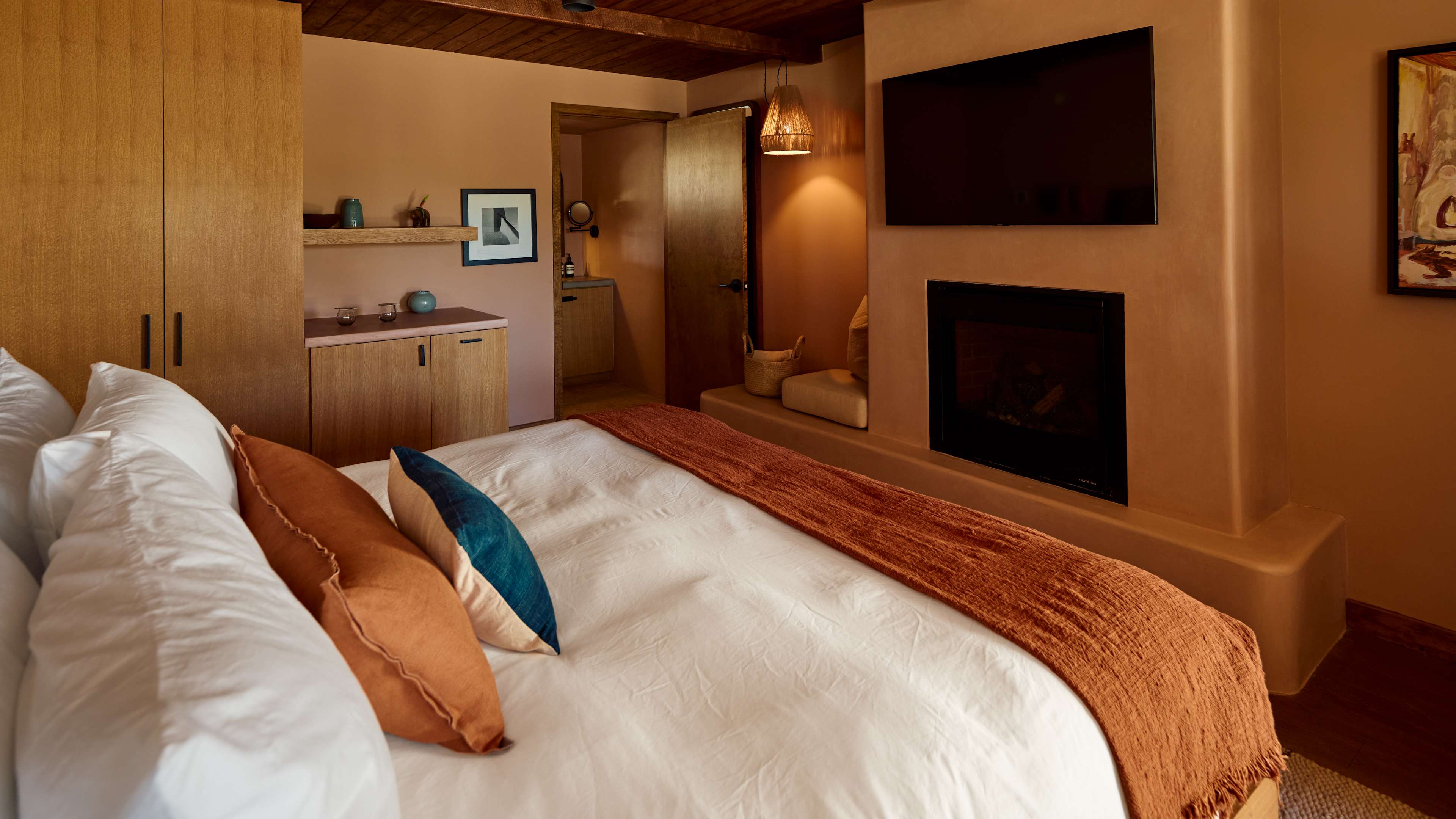Taos’ central Paseo del Pueblo is walkable if you’re sticking to its borders, but for those looking to explore New Mexico’s beyond-the-town landscapes, a car will come in handy. There’s free round-the-clock parking at the hotel, including chargers for electric vehicles.