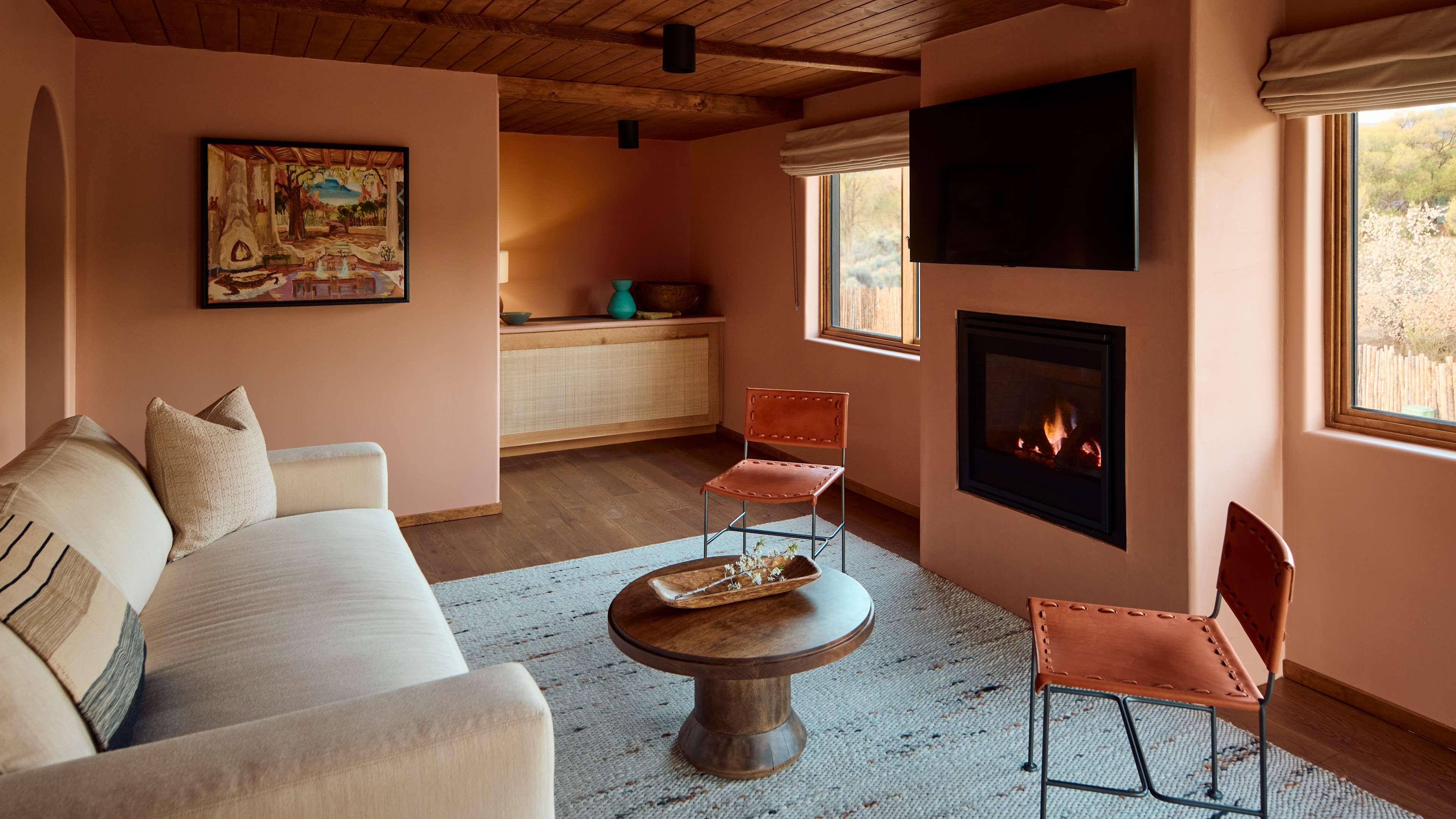 Pair you morning brew with enchanting views of the Sangre de Cristo Mountains that accent the Deluxe King rooms’ light-welcoming windows — one also comes with its own bedside log-burner for fire-warmed evening trysts. For settling-down seclusion, bag one of the standalone Adobe House’s four coveted rooms, or book it in its entirety for full-family affairs.