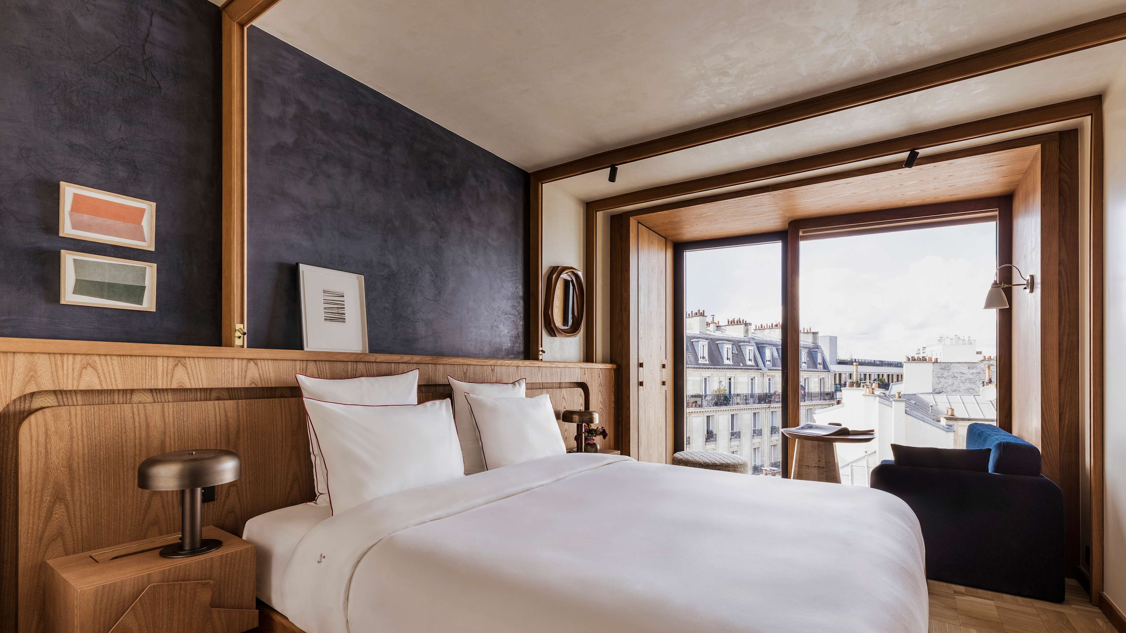 Suite Sacré Coeur’s namesake views are hard to beat. But go for any room facing Rue Legendre and your floor-to-ceiling windows will look out onto a pretty Haussmannian scene — and provide unmatched people-watching.