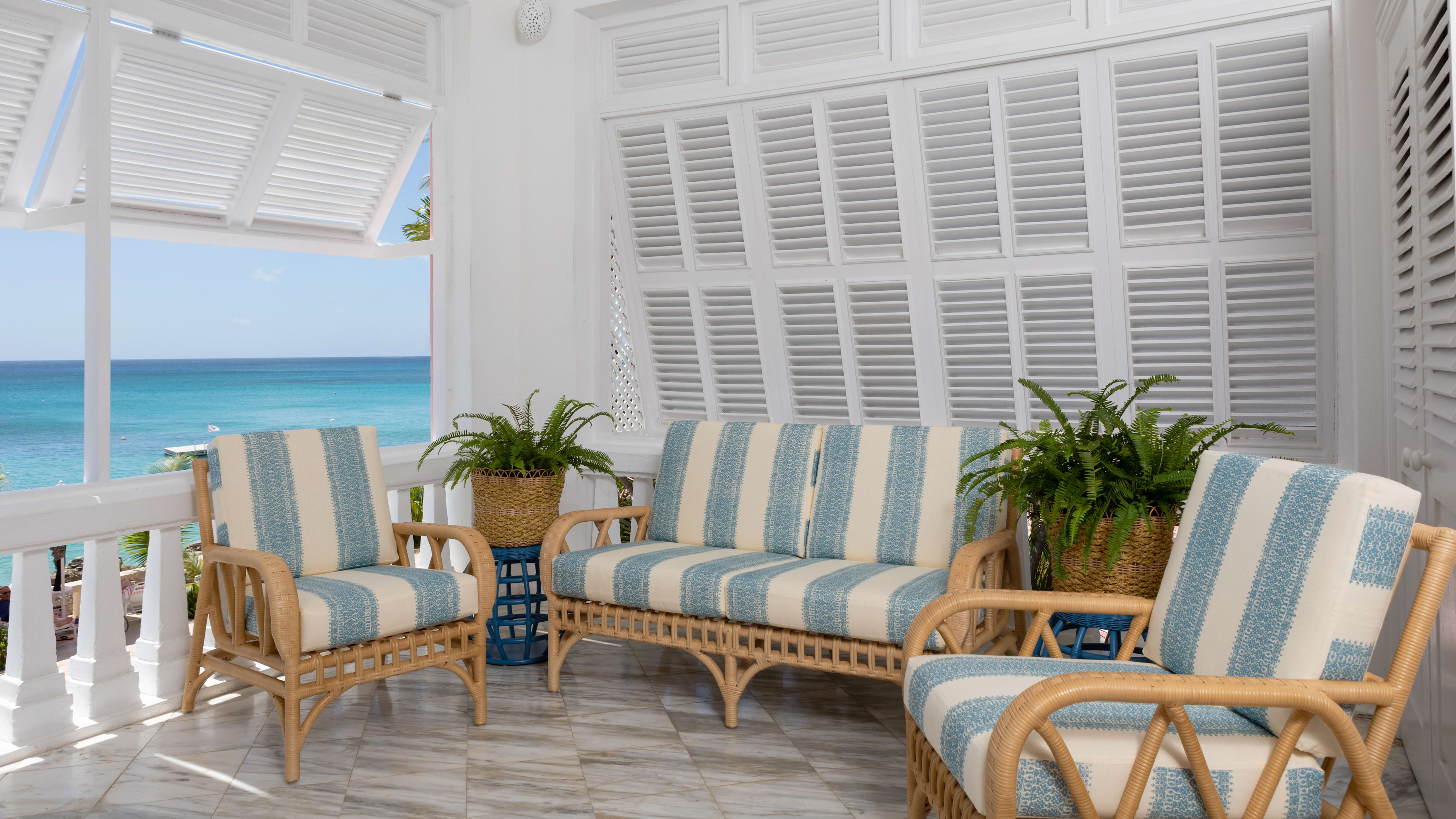 Camelot and Colleton are the only two suites in the Great House, occupying the two turrets; each one comes with its own rooftop terrace (Colleton Suite has a plunge pool overhung with bougainvillea too). The next-best views are from the Ocean Front suites, which look out over the umbrella tops to the sea.