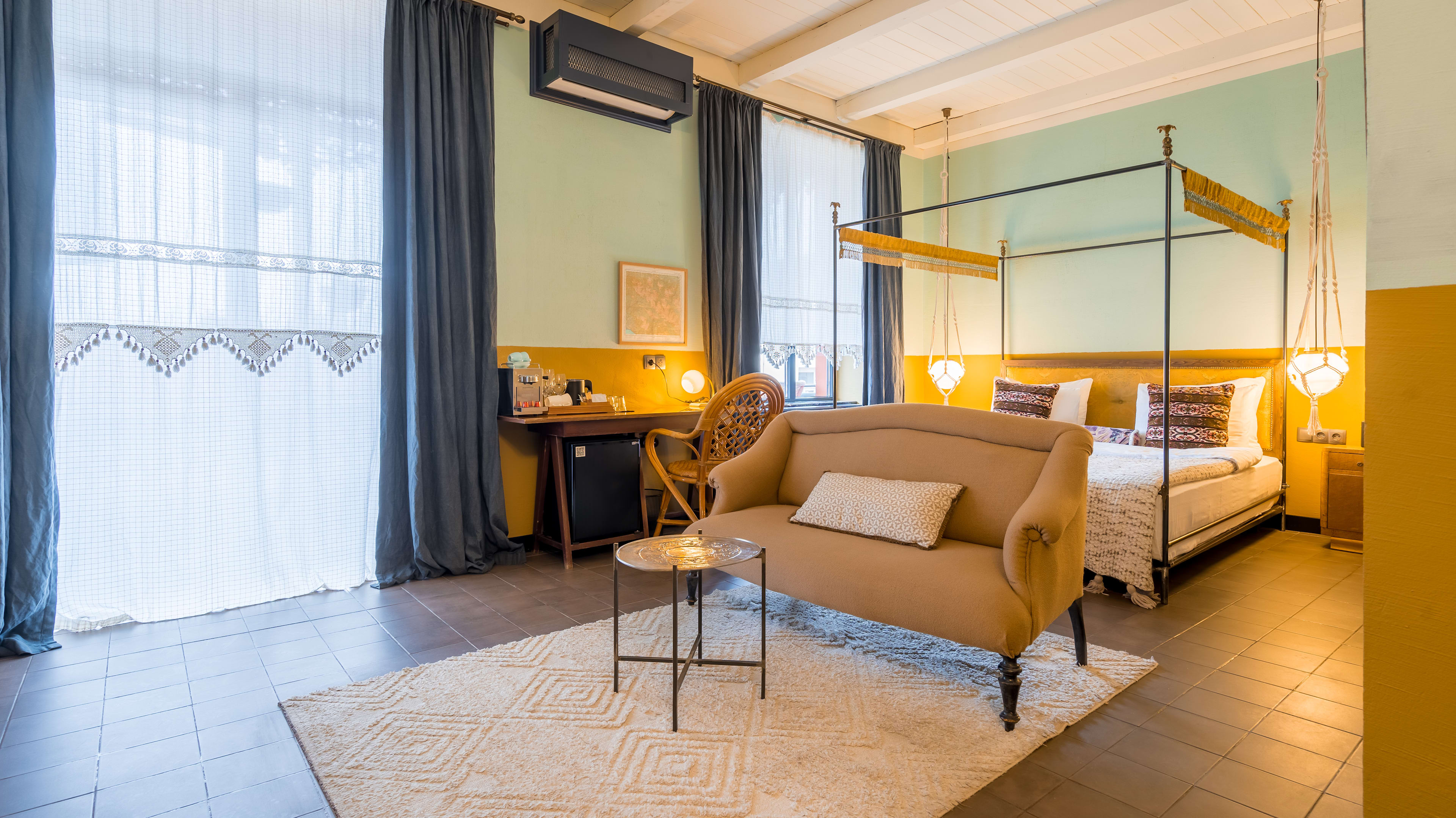 There’s a small outdoor pool, where you’re welcome to order zesty cocktails to green-striped sunloungers and soak up Georgia’s summer sun.