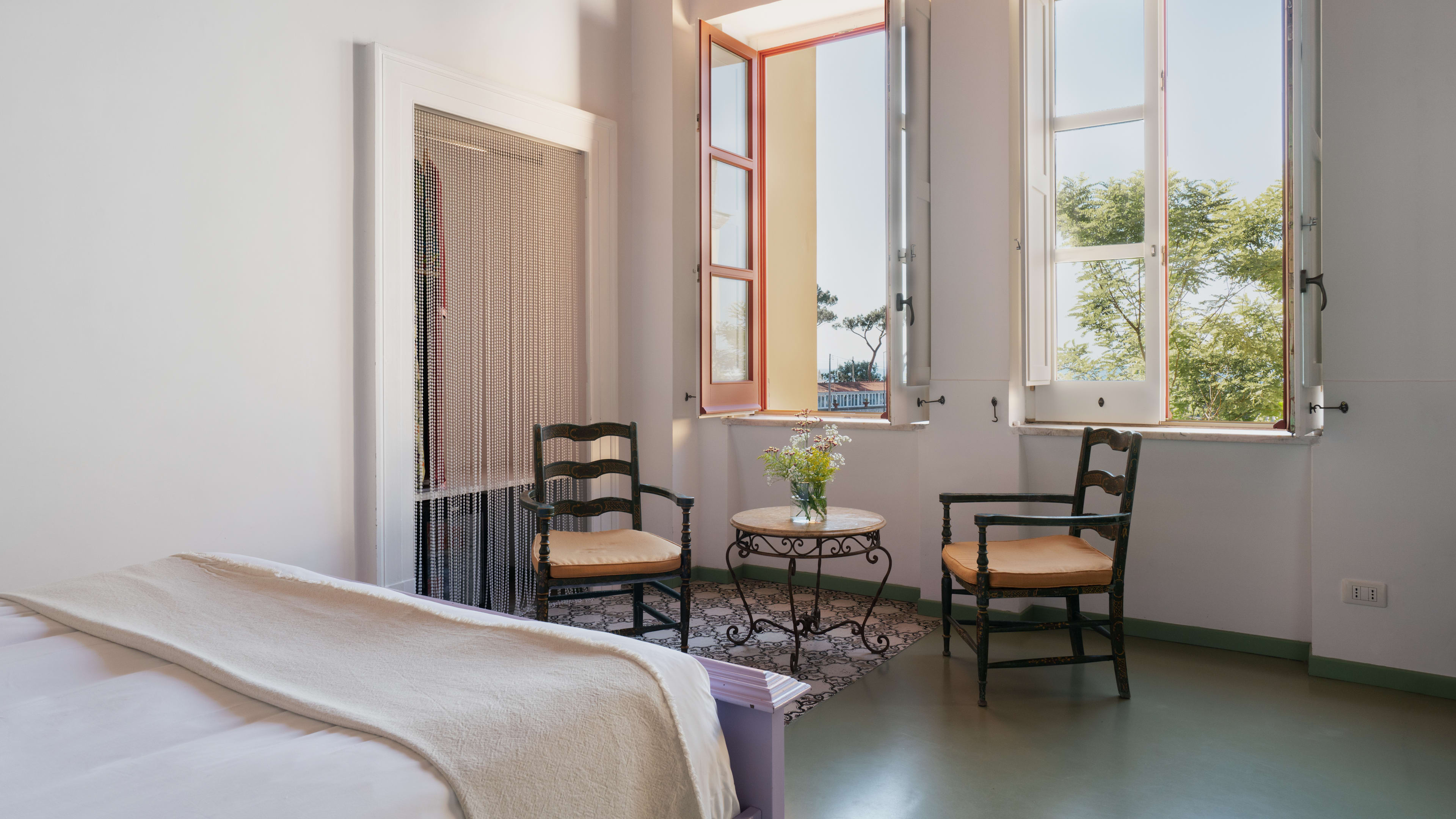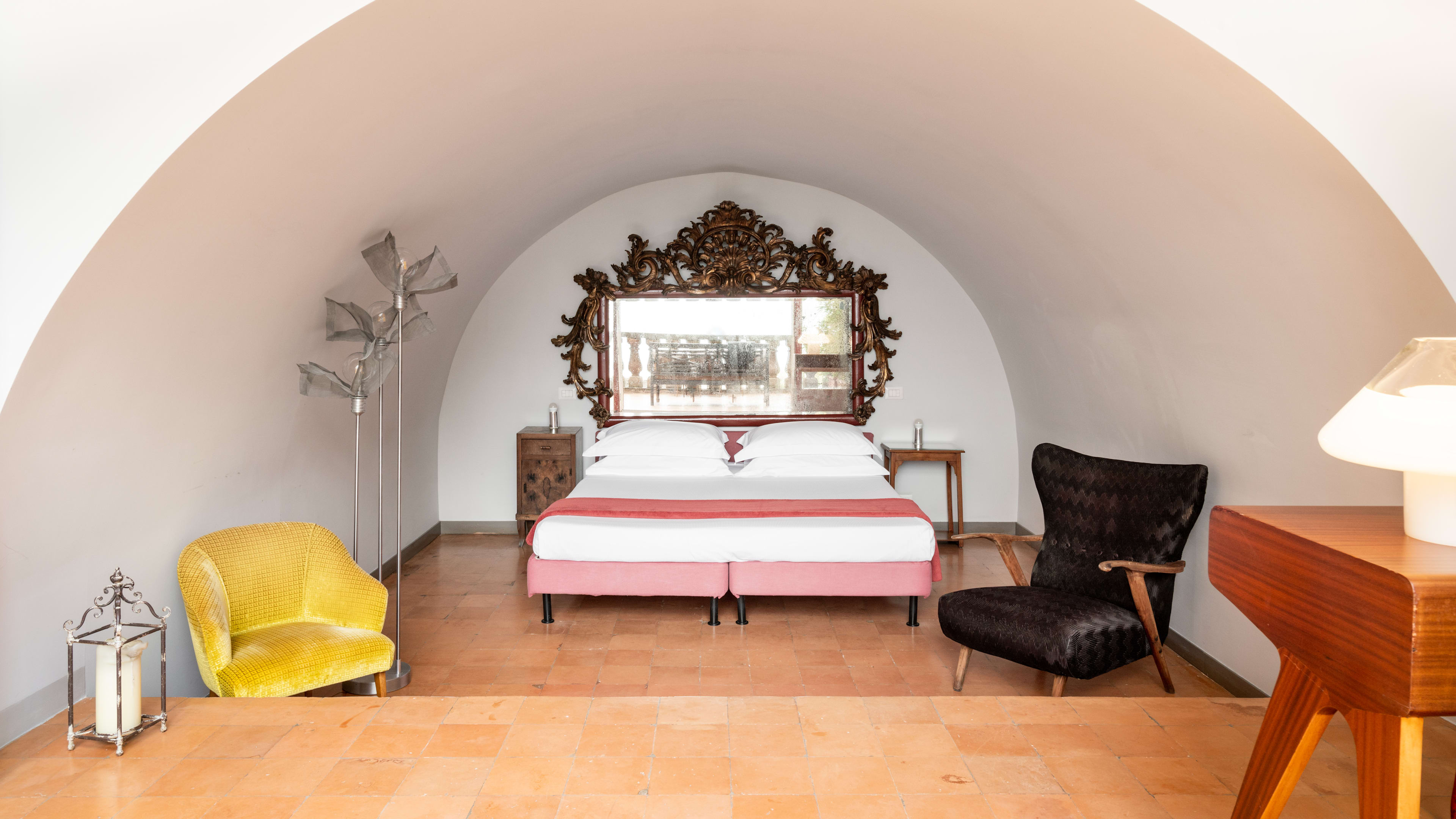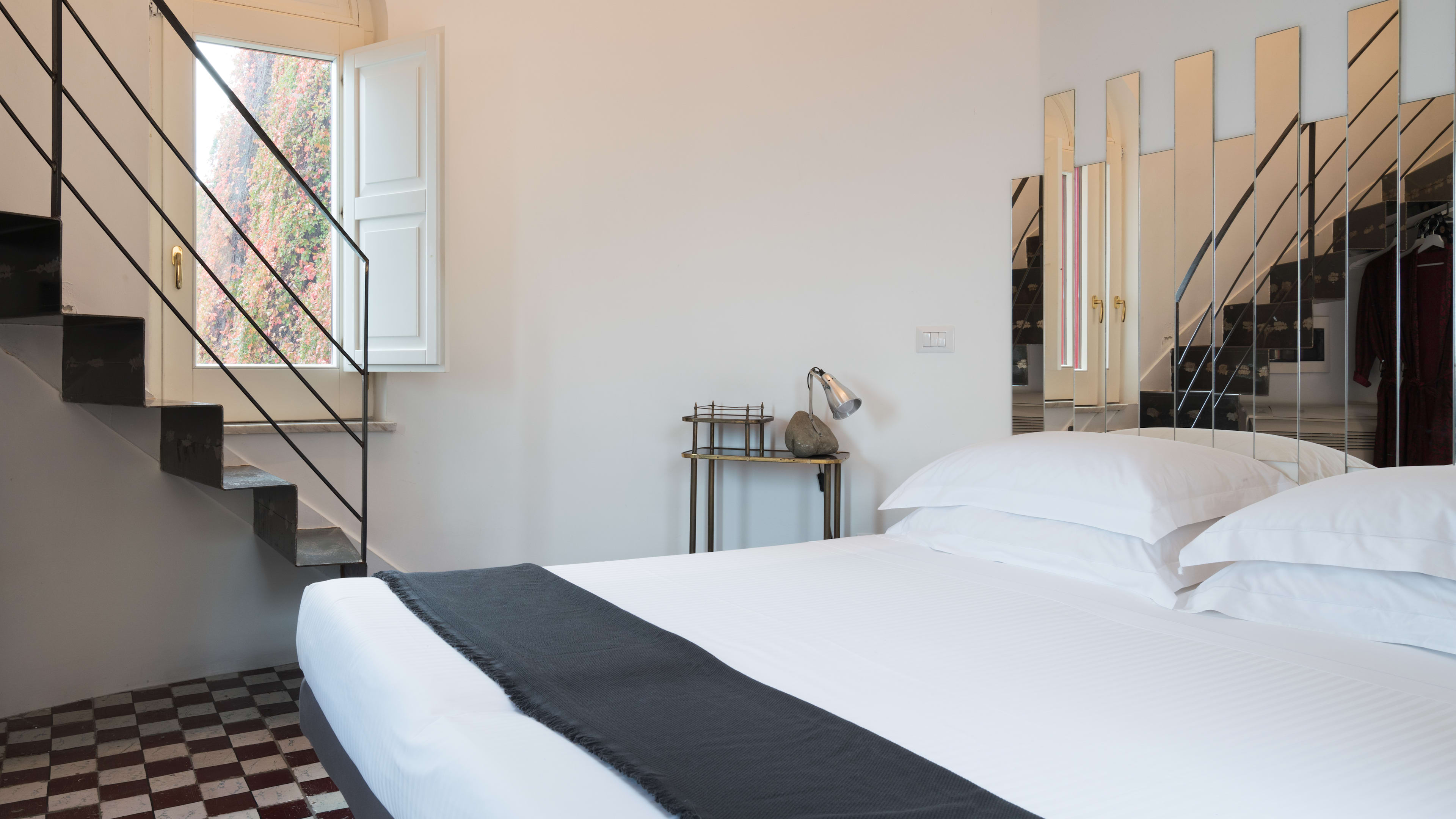 Each room has its fair share of handpicked antiques, but we especially love the Tower Room for its circular shape, spiral staircase leading to the bathroom and direct access to the communal terrace. We’re also fans of the Deluxe Room with Terrace, for its vaulted bathroom with checkerboard tiles and its breezy outdoor space.