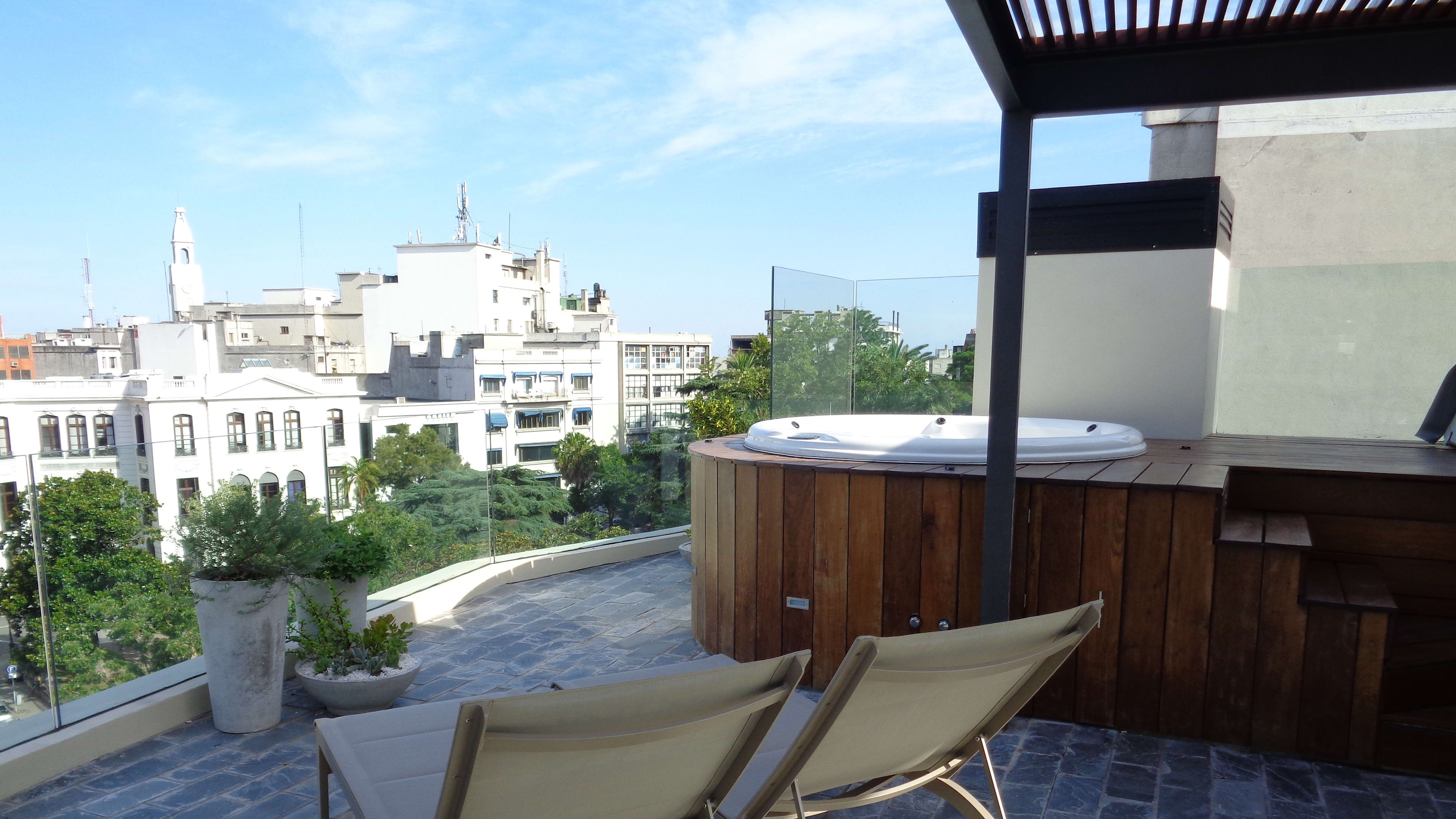 There’s no pool, but the cobbled roof terrace has a decked hot tub with views of the Old Town. The green plaza below is popular with locals, but noise is minimal, so this potted-fern and sunlounger-scattered spot is a serene city hideaway.