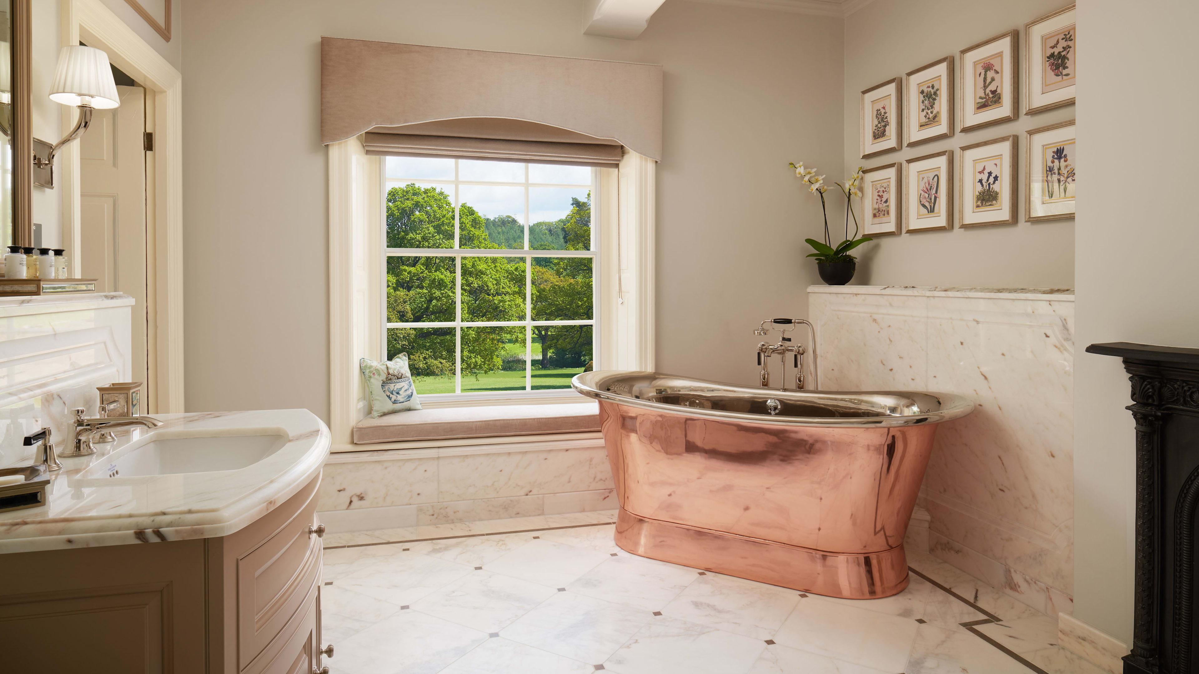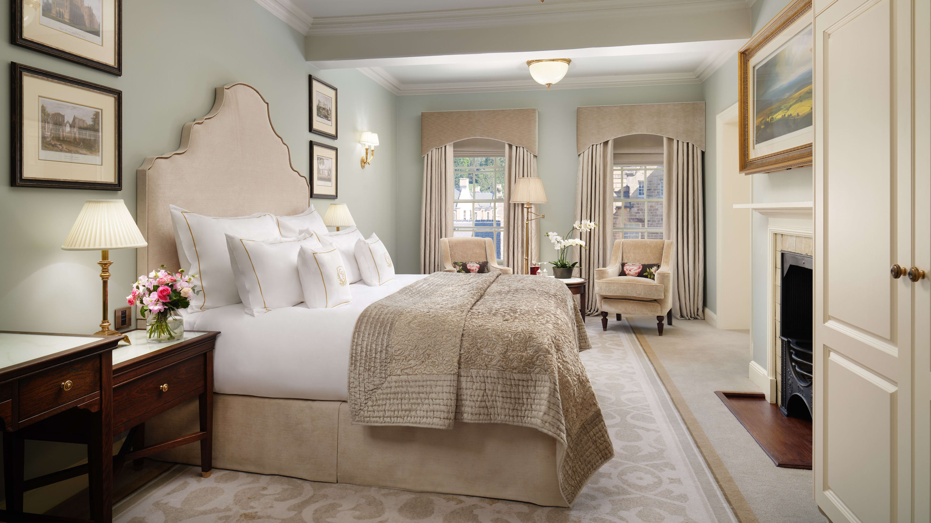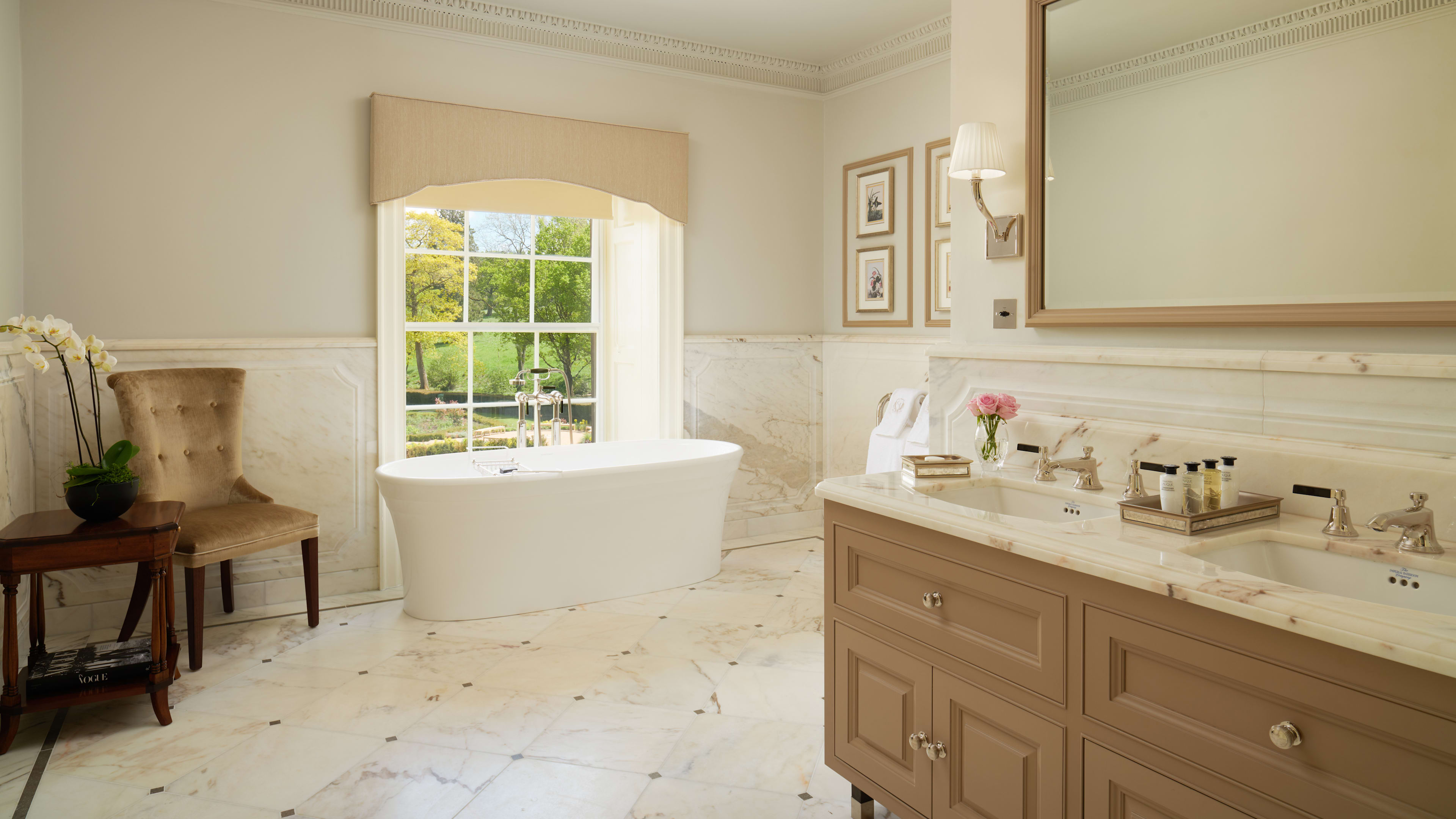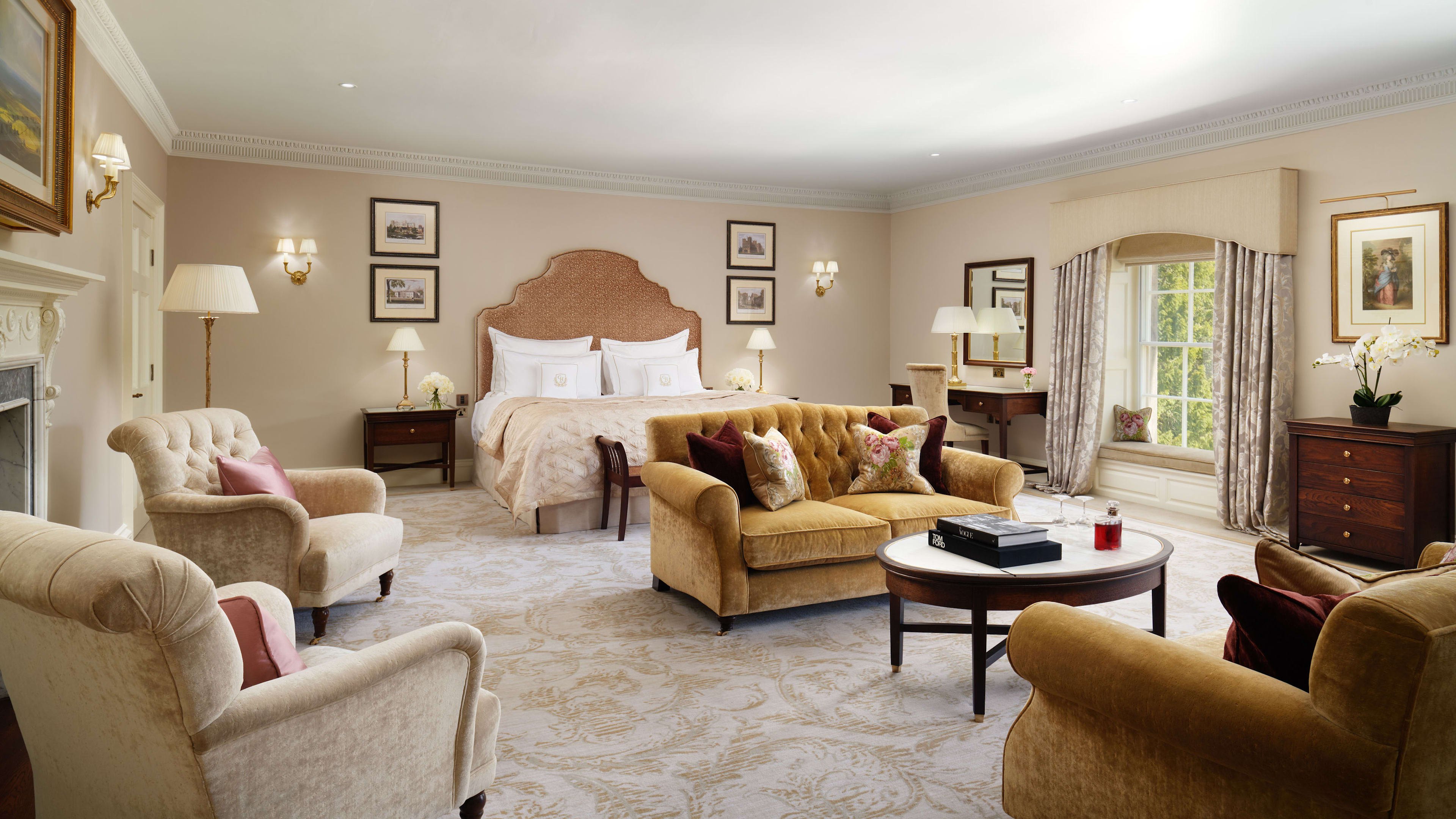 Each room is decorated in elegant muted tones with a king-size bed, plush carpeting and marble ensuite as standard issue. We’re partial to the Executive Rooms in the original 17th-century hall, which have period fireplaces and a romantic window seat. If you’re lucky, you’ll get the one with the enormous copper bath tub.