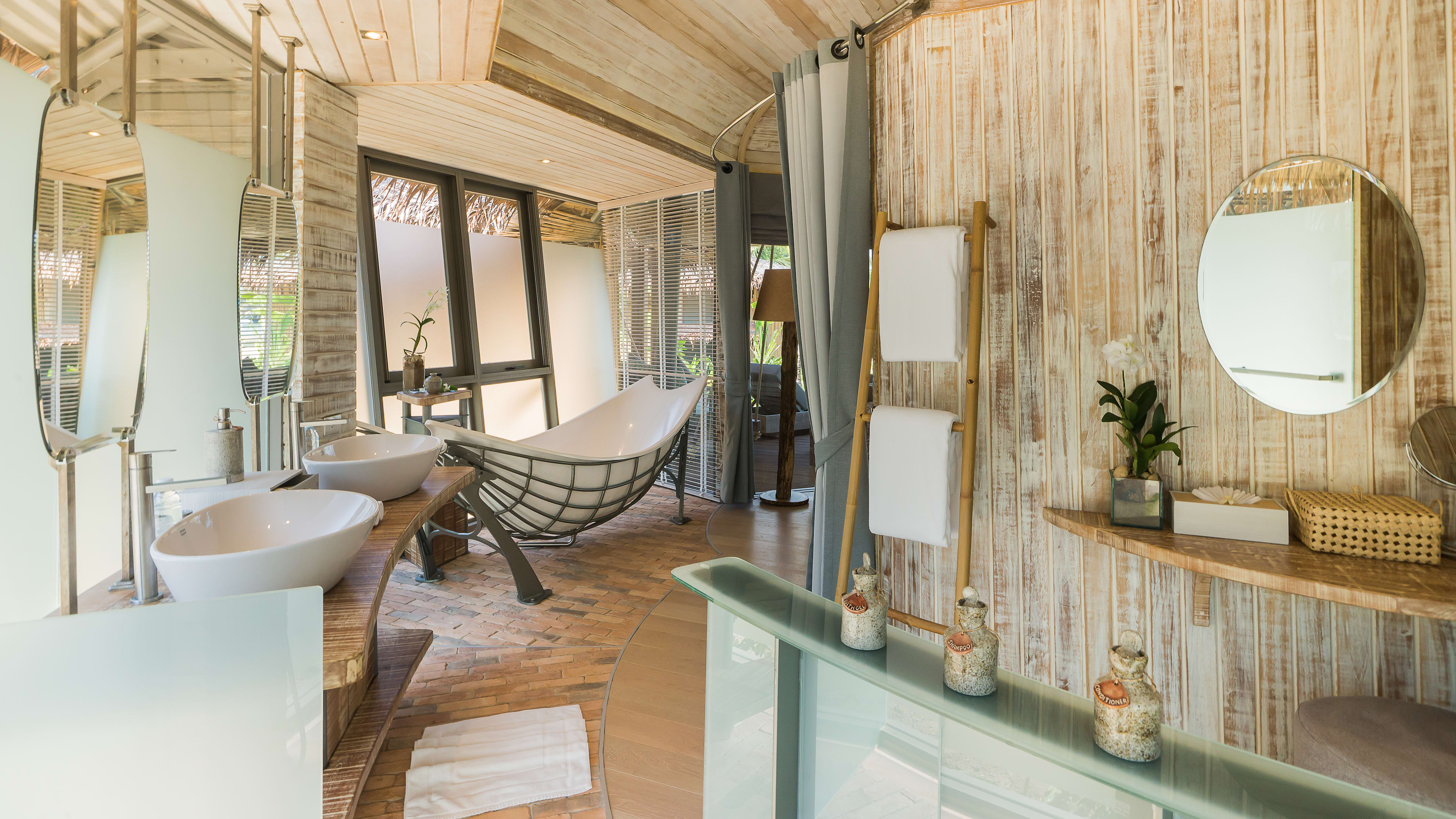 While the beachfront pool villas have their undeniable charms, we won’t be persuaded away from our first choice: the TreeHouse Villa. With two floors (one outdoor and one indoor) stacked on top of each other and cradled in sprouting tropical plant life, these villas combine the best of the jungle with the beach and bay still within easy reach. The first-floor balconies, designed for romantic moments for two, give a real sense of suspension in the tree canopy itself. And let’s be honest, whose inner child can resist the lure of a treehouse?