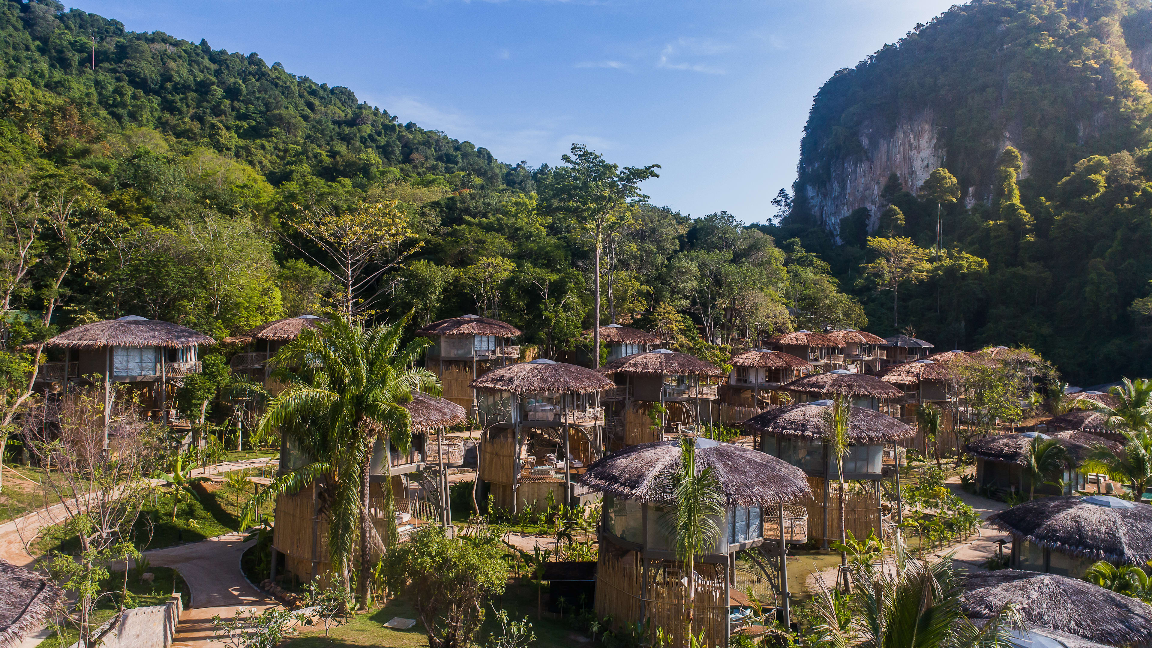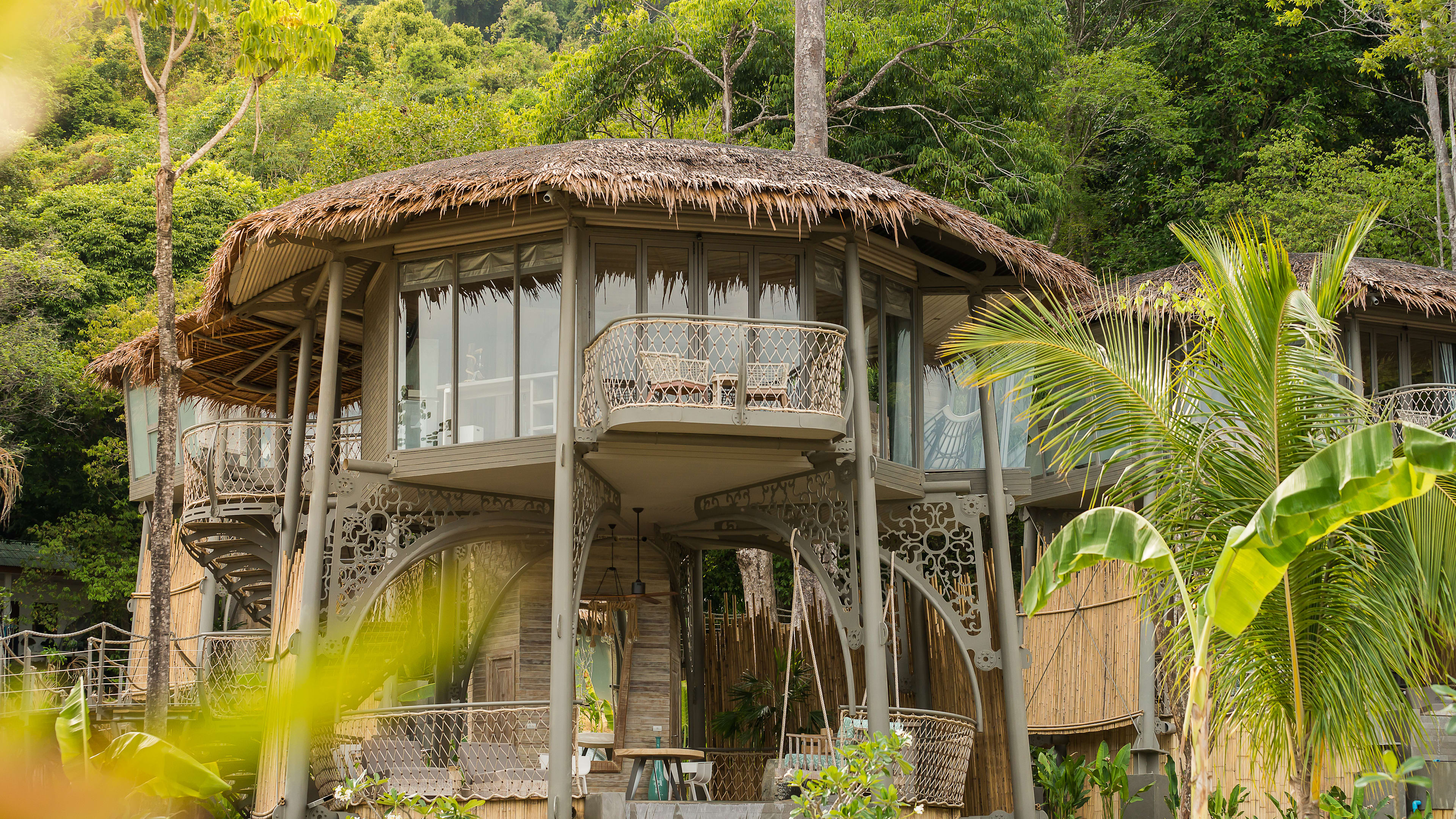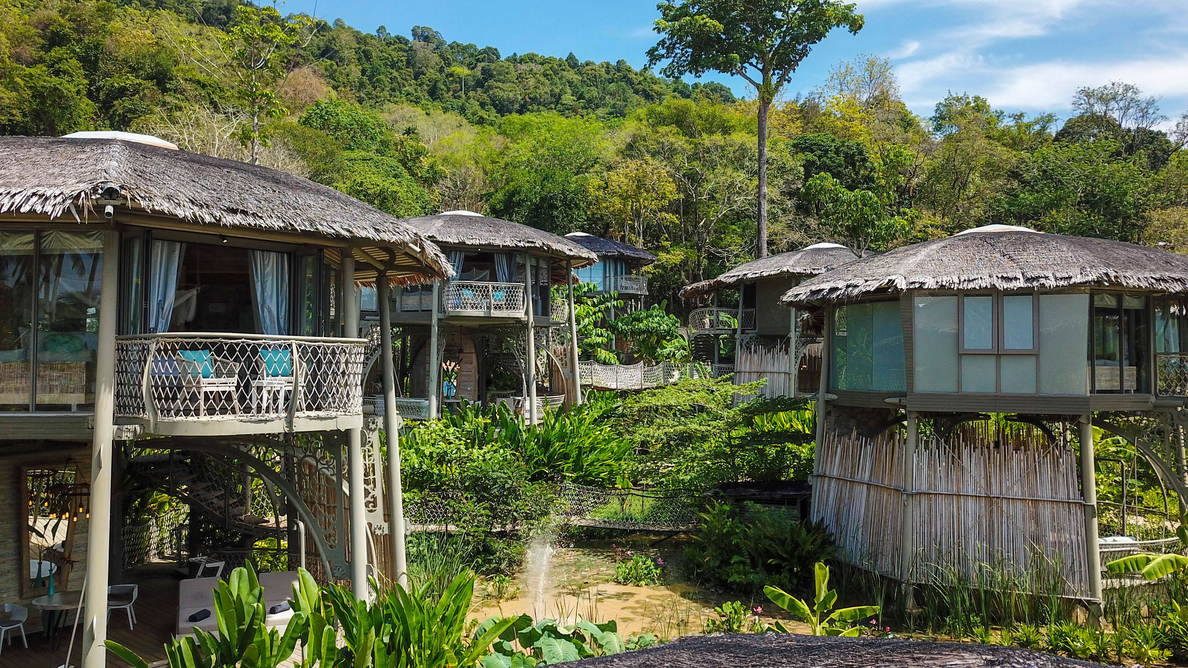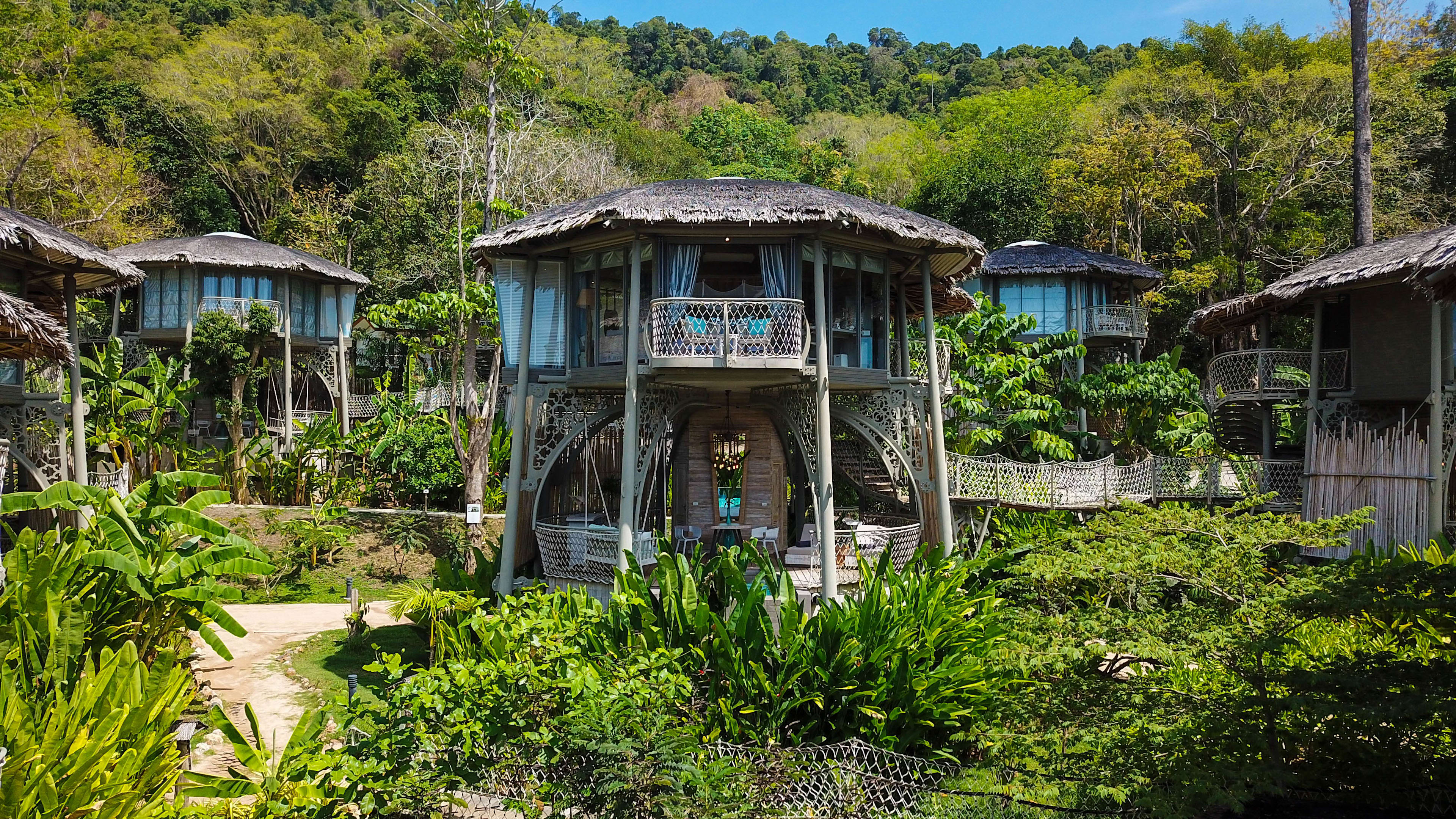 32 private treehouse villas, designed to blend with the natural surroundings.