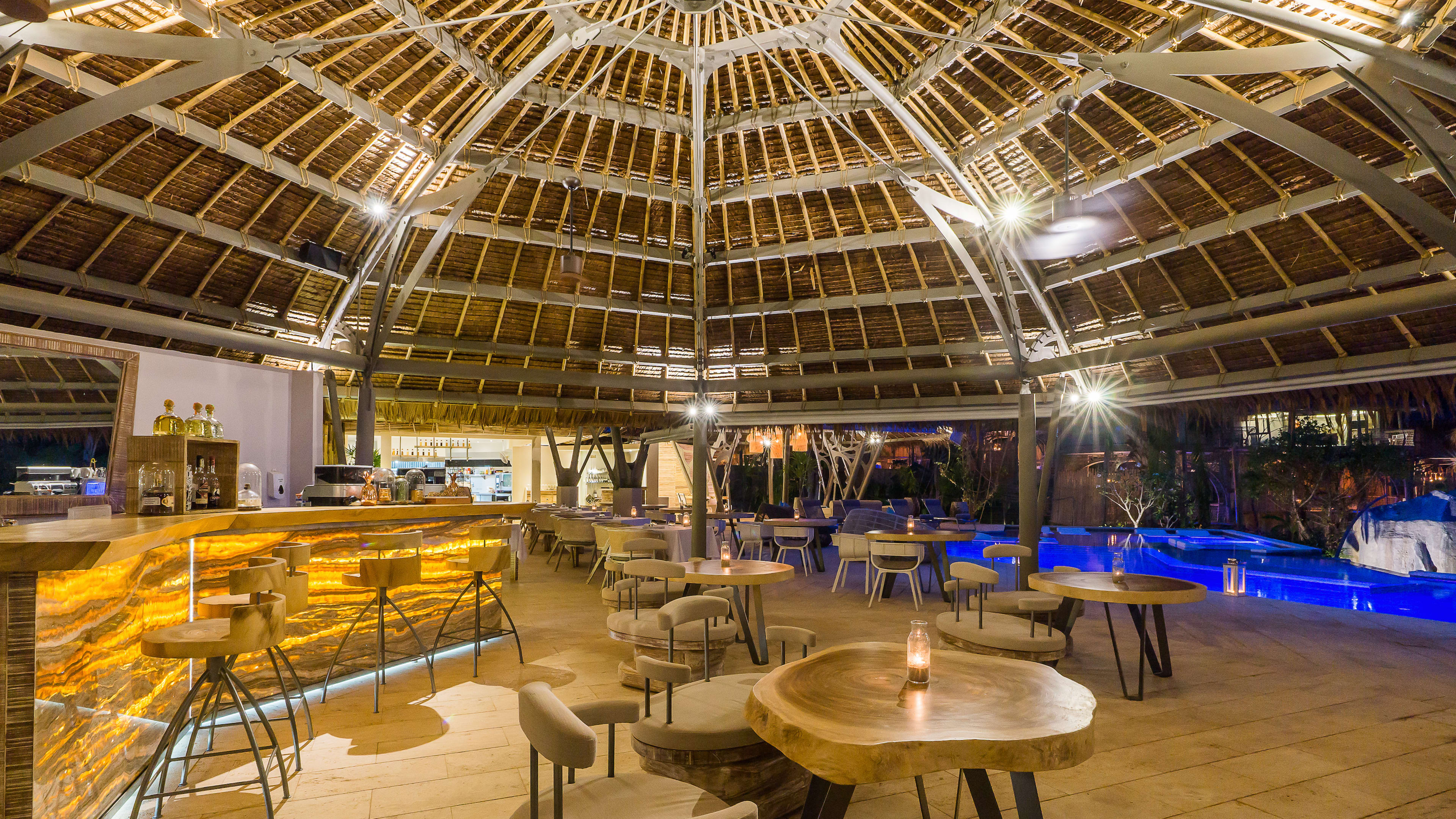 The breezy Roots lounge area, part of the adjacent restaurant, is open from 7.30am to 11pm. You can sit under the cover of the elegant high wooden pavilion, at the bar or by the infinity pool, taking in some bay views with your apéritif. Drinks are mixed to order using local ingredients.