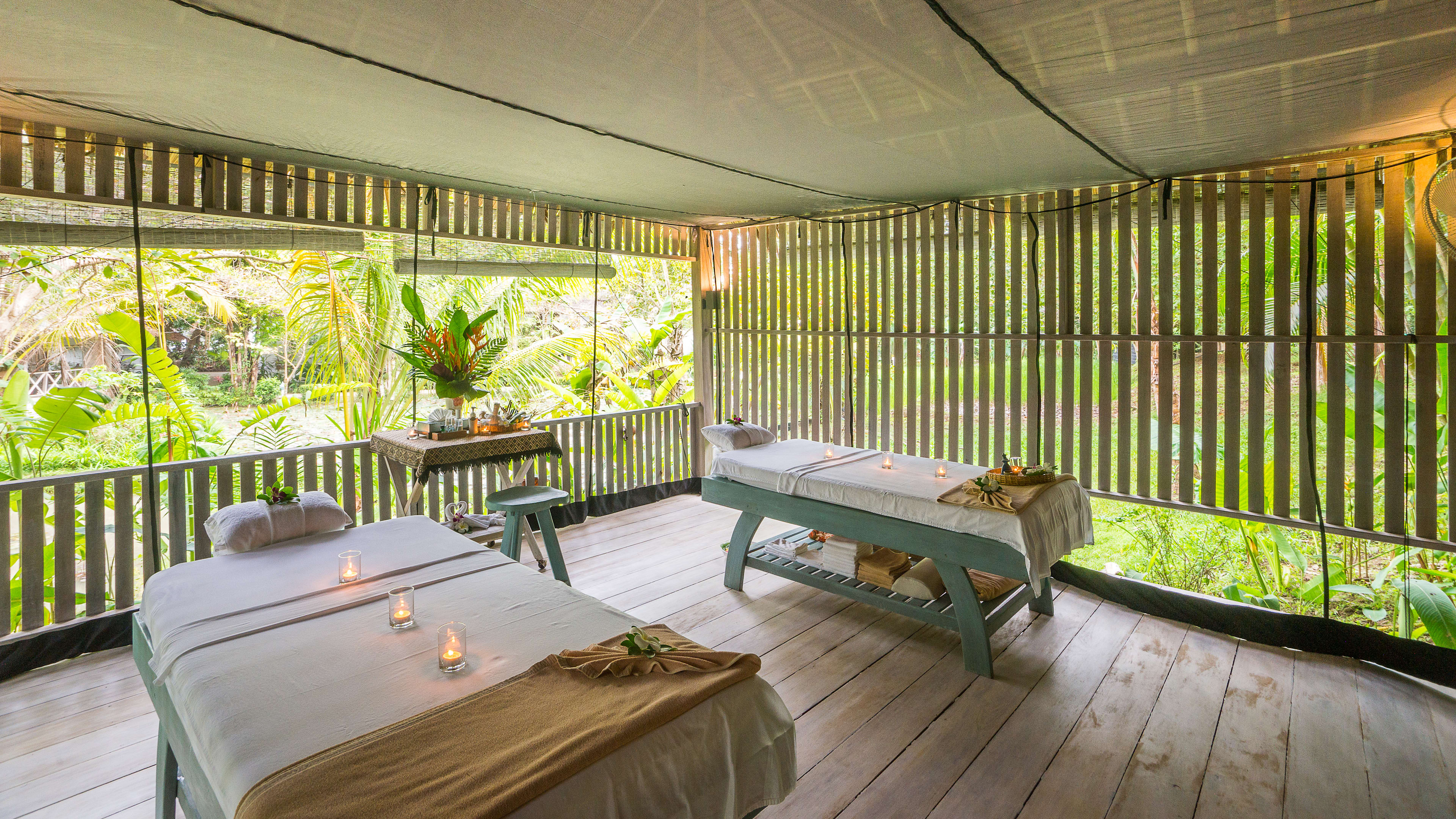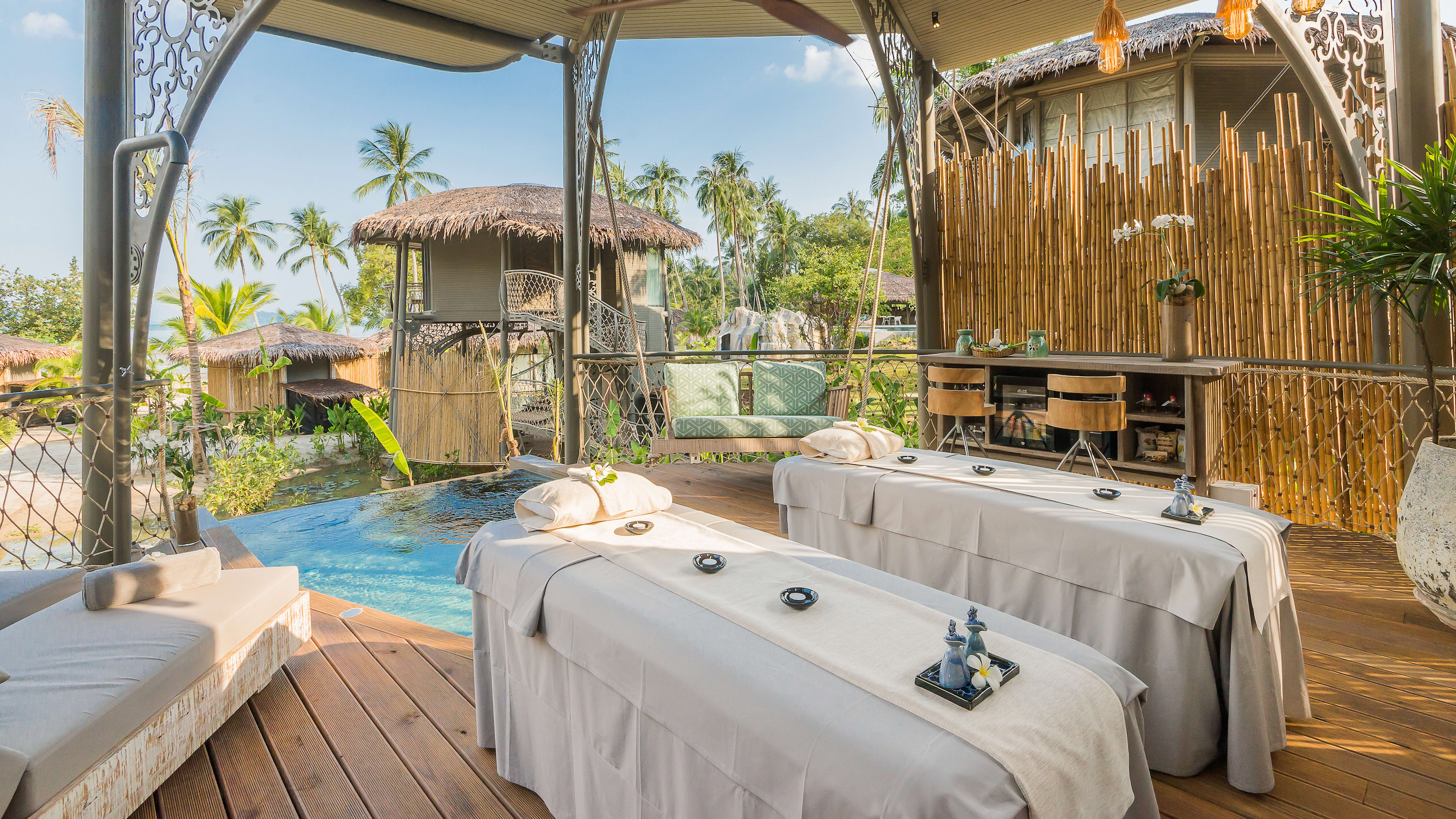 The Serenity Spa (around 100 metres from the TreeHouse Villas site and shared with its neighbouring sister hotel, Paradise Koh Yao Resort) is open daily from 11am to 8pm. Its lush jungle setting helps kick off the journey to relaxation and healing, which continues as you hit the herbal steam cave and waterfall plunge pool. Book in advance to enjoy treatments such as aromatherapy and Thai massage, performed using all-natural herbal products, in one of the six open-air treatment rooms overlooking the waterlily pond and rice fields. Personal-training sessions are also available, as are group or private yoga sessions in the scenic beachfront space.