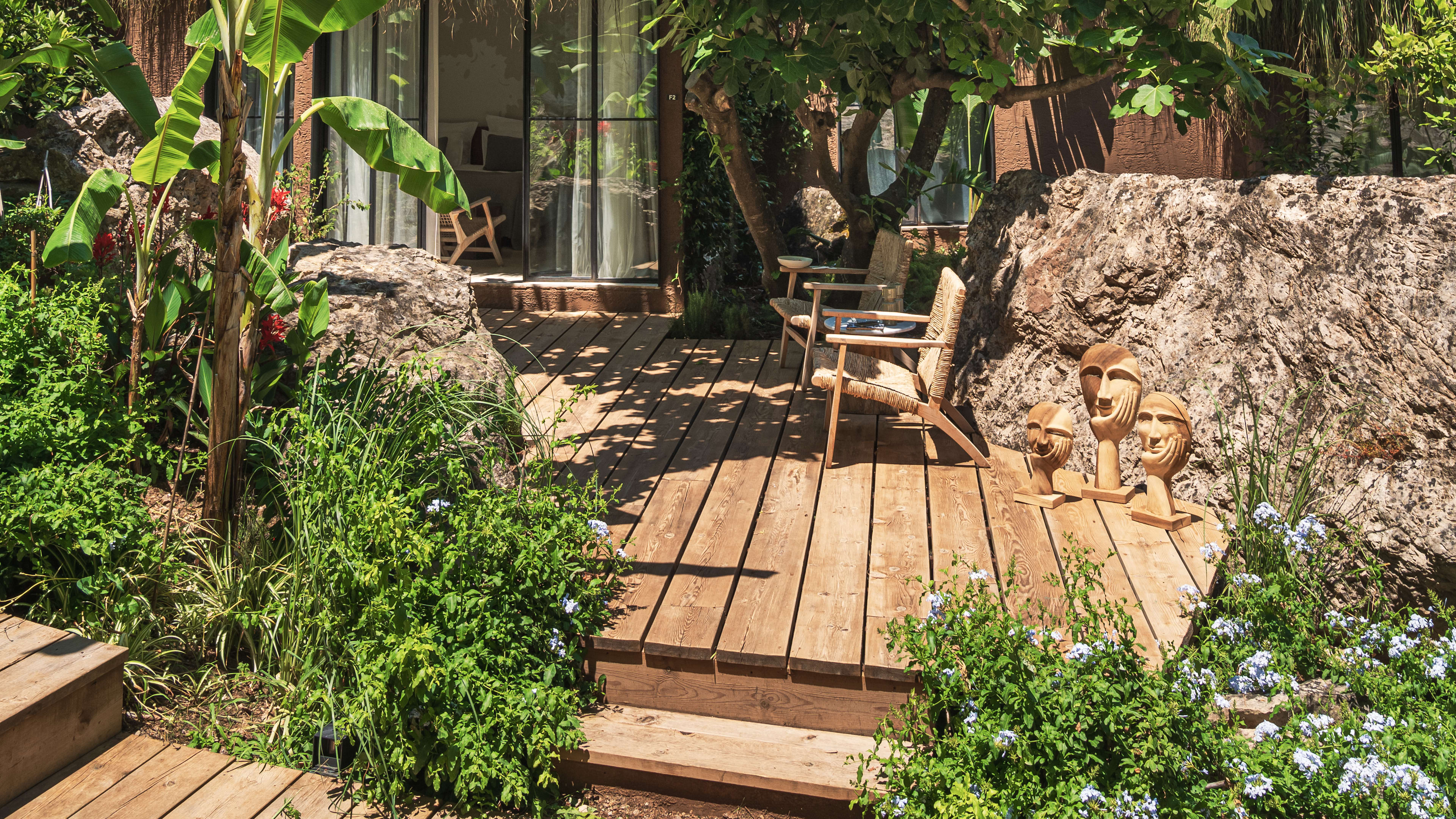 Settle on to a shaded sofa or sun-worship from dawn till dusk on one of the double day-beds stacked up in tiers on the decking.