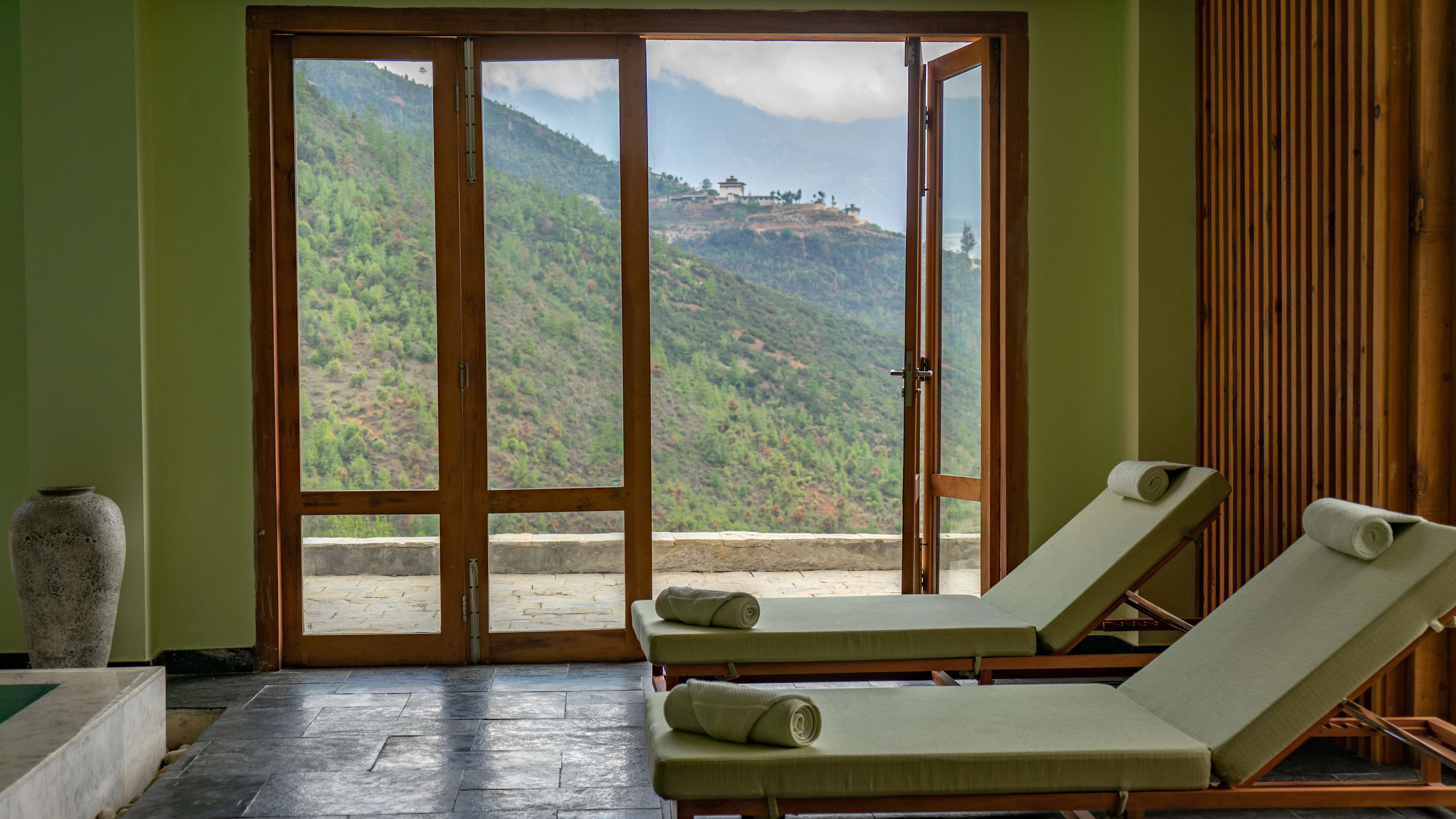 All-inclusive spa treatments may sound like the stuff of dreams, but they’re part and parcel of a stay here. Your rate includes at least one signature wellness treatment a day, for each guest, and wellness activities, including a consultation with a traditional-medicine doctor (which you’ll have soon after arrival). In the spa, there’s a lounge area, six treatment rooms (with 10 beds in total), two Bhutanese hot-stone baths, mens’ and womens’ saunas and steam rooms, a yoga/meditation room and a gym. Treatments include hot-oil compressions, full-body massages and moxibustion treatments, in which warmed parcels of herbs are applied to the skin.