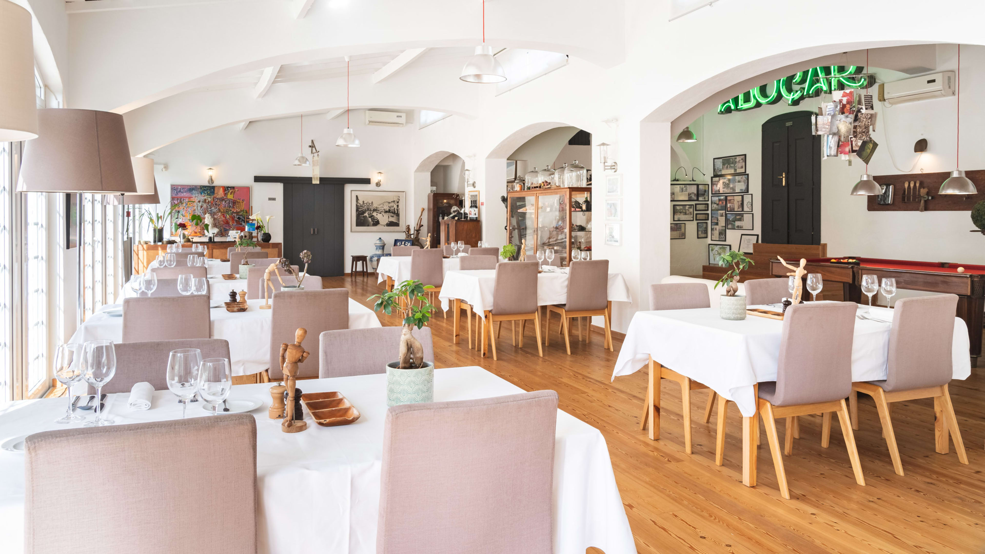 Breakfast is served every morning in the light and airy Improvável Restaurant. For lunch (and dinner on Monday and Tuesdays, when the head chef Rui Rosário is off duty), go for lighter options of salmon wraps, caprese salads, fruit plates and burgers. The rest of the week, dinner is a heartier affair of classic Portuguese dishes, including alentejo tomato soup, brás codfish and asparagus migas with pork tenderloin.