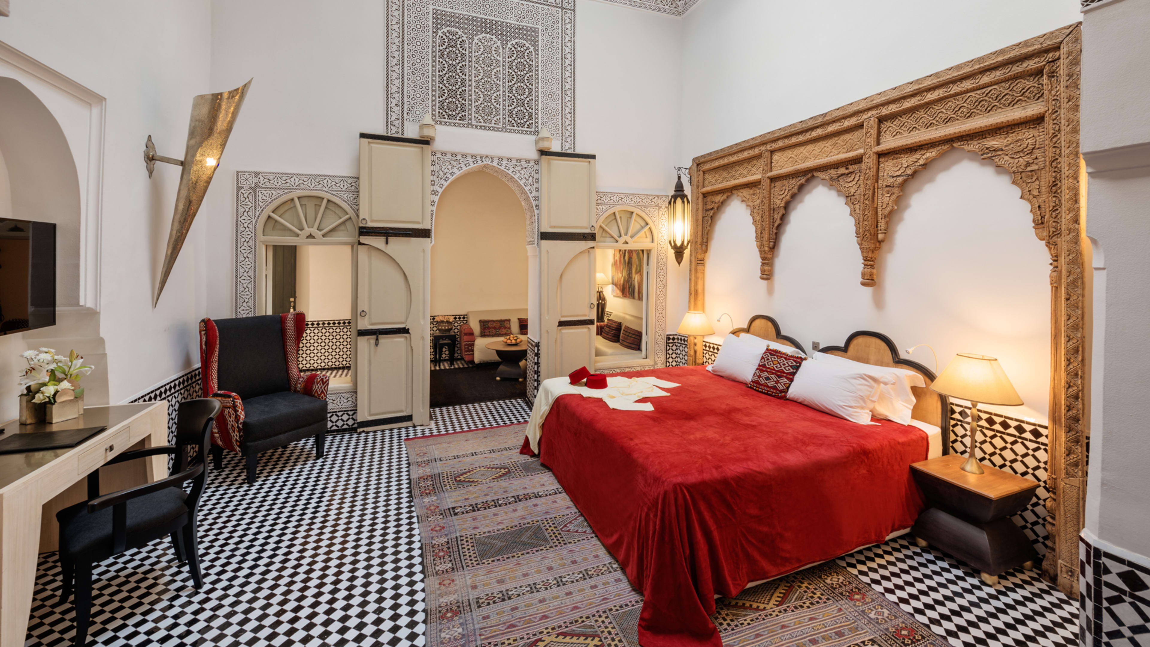 Rates include breakfast, a one-way transfer from Marrakech Menara Airport to the riad, fez hats and slippers.