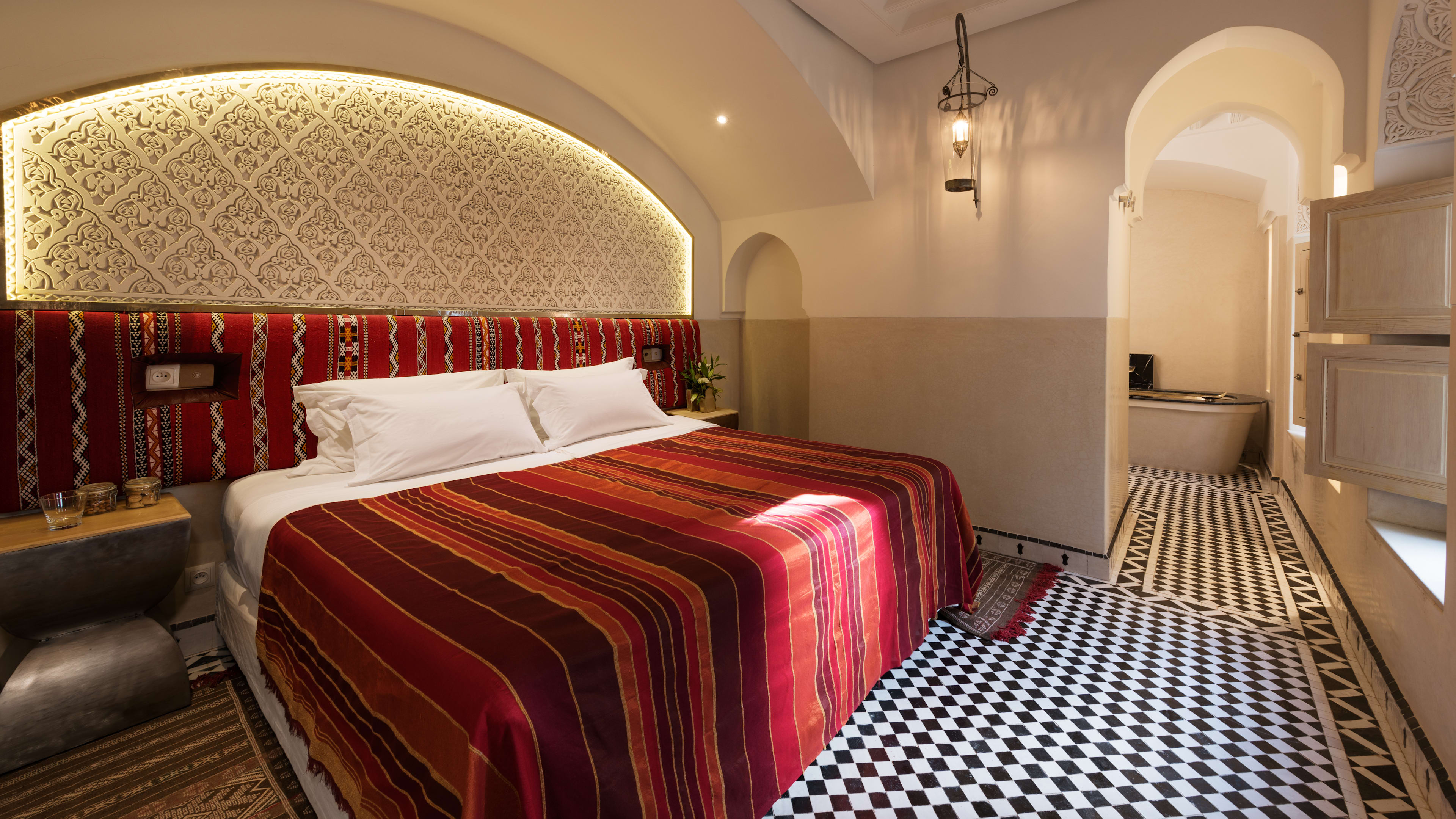 Take a soothing dip in the courtyard pool, chill out in the rooftop lounge, or refresh with a eucalyptus-scented hammam in the spa: the hotel offers downtime with a capital ‘D’. The immensely helpful staff are happy to help you make the most of the city and can send you off on a wide range of experiences. Take a guided cycle tour through the leafy Palmeraie, or out to the Atlas Mountains, if your legs allow. Learn how to make a Berber feast with cookery lessons, trek with a professional as they regale you with local lore, or see the city by car, Vespa or horse and carriage. Raid the souq for lanterns, spices, kaftans and such; be whisked around the glorious Jardin Majorelle; and learn how to make your own scent, or practise a couple artisanal crafts: wood-turning, tadelakt pottery, Zellige mosaicking and more.