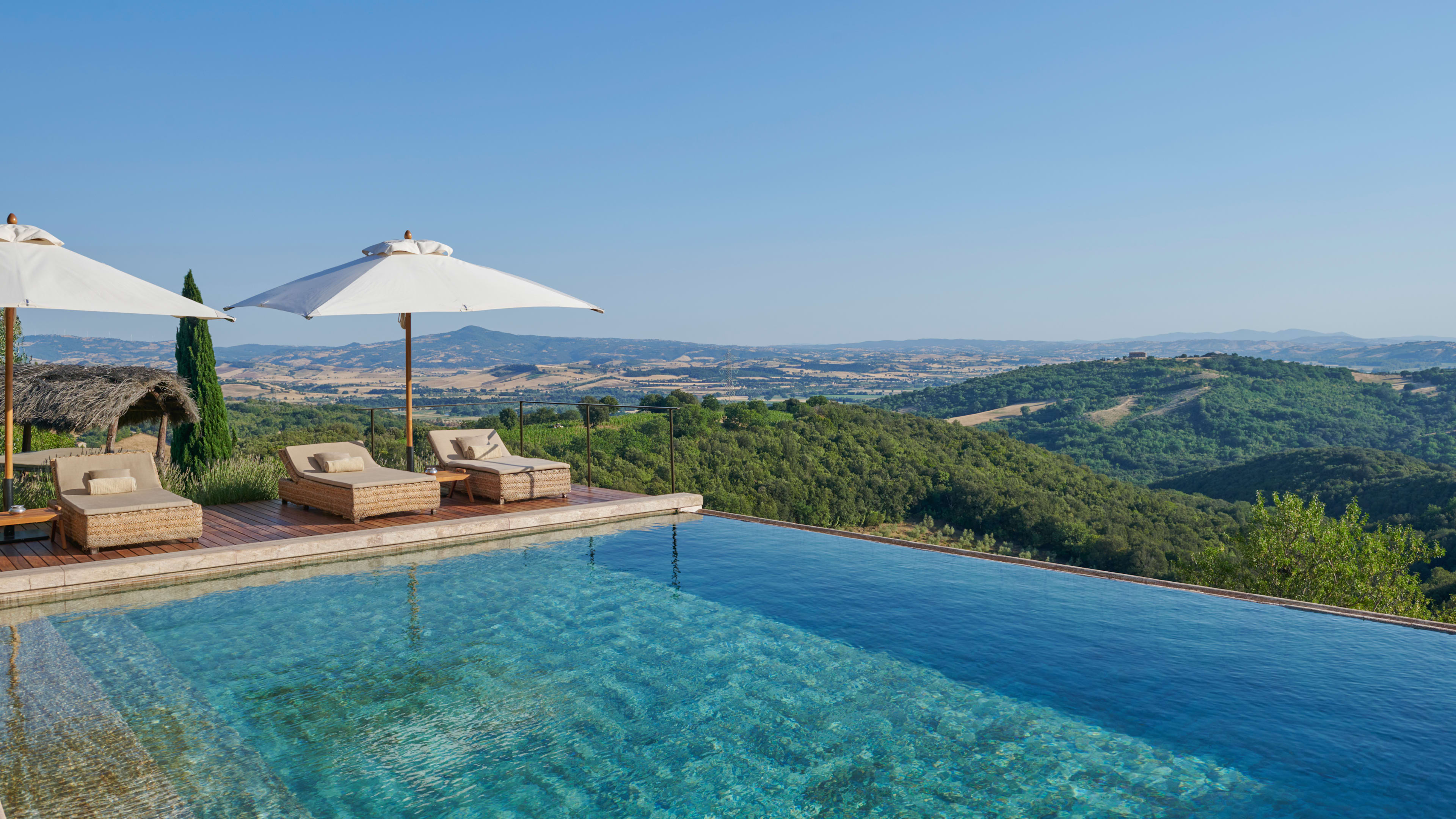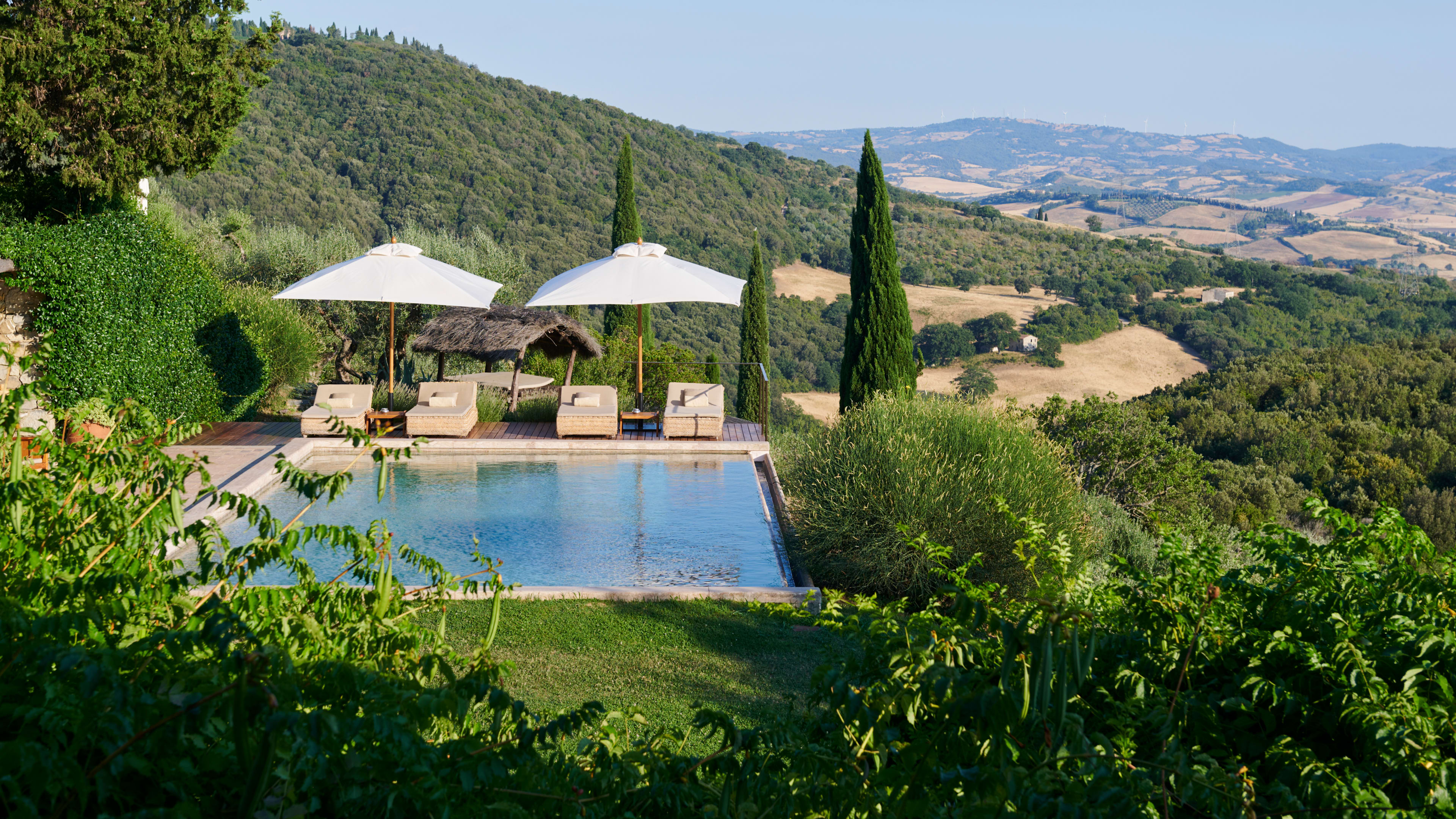 Refined Tuscan estate Castello di Vicarello has had 900 years to cultivate its air of rustic majesty, so it’s little wonder that the honey-coloured buildings and perfumed gardens look like they’ve sprung from the canvas of an Italian master. Despite the romantic atmosphere, the hotel is still very much rooted to the rolling and fertile land on which it sits. Delectable home-style cuisine is prepared in the castle’s historic kitchen, which draws much of its produce from the organic garden, vineyards and olive groves, all of which sit within the enchanting grounds. There are two valley-facing infinity pools to choose from, a Balinese hut for massages, yoga and personal training in the summer months and several tiers of cyprus-studded gardens and manicured lawns on which to bask under the Tuscan sun.