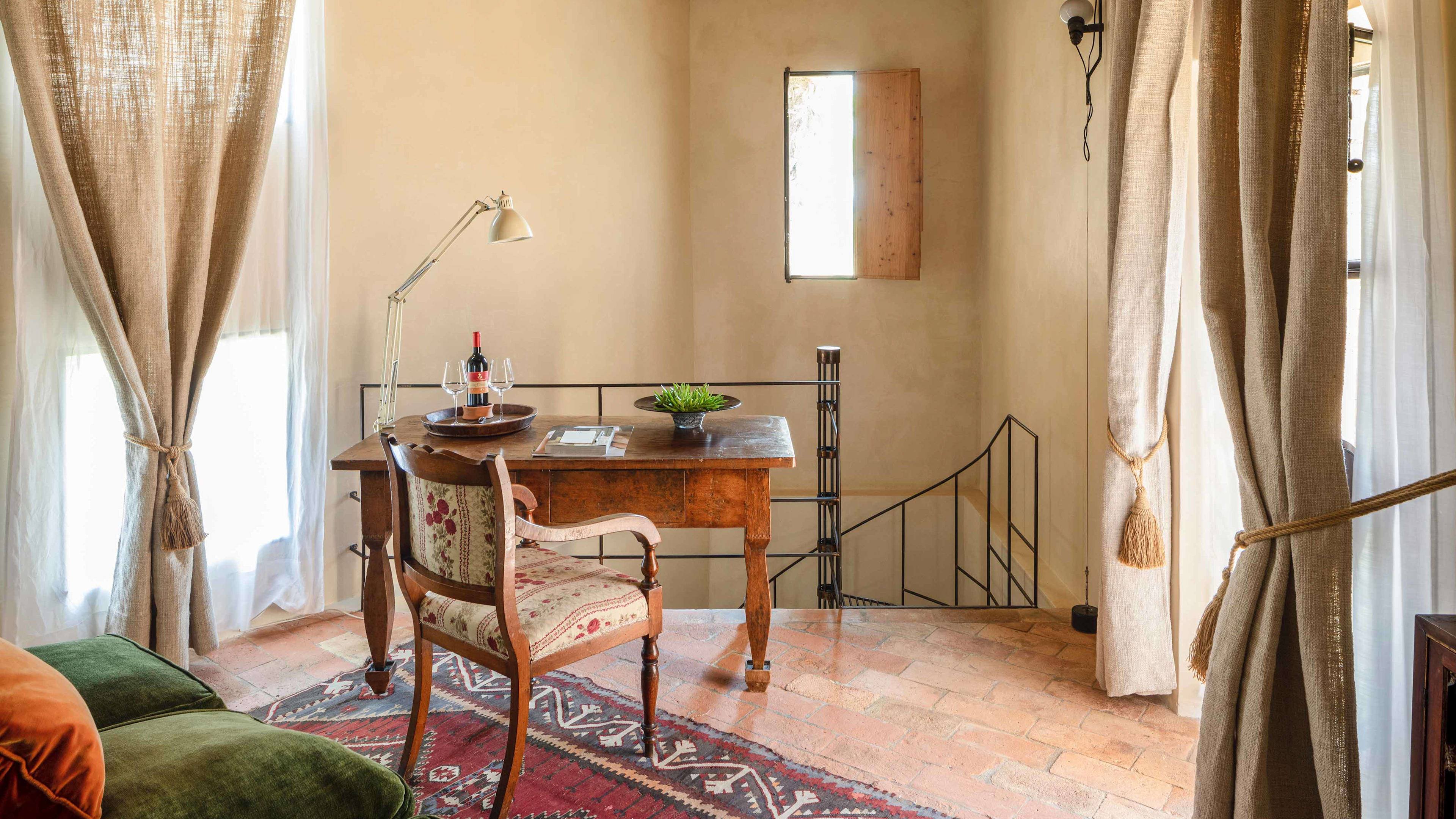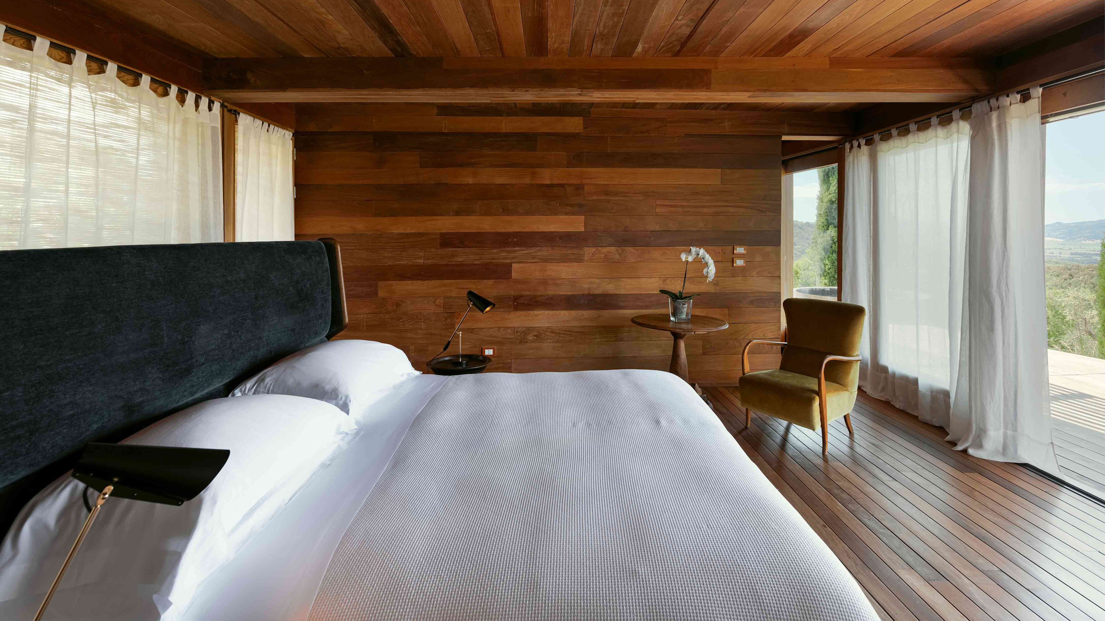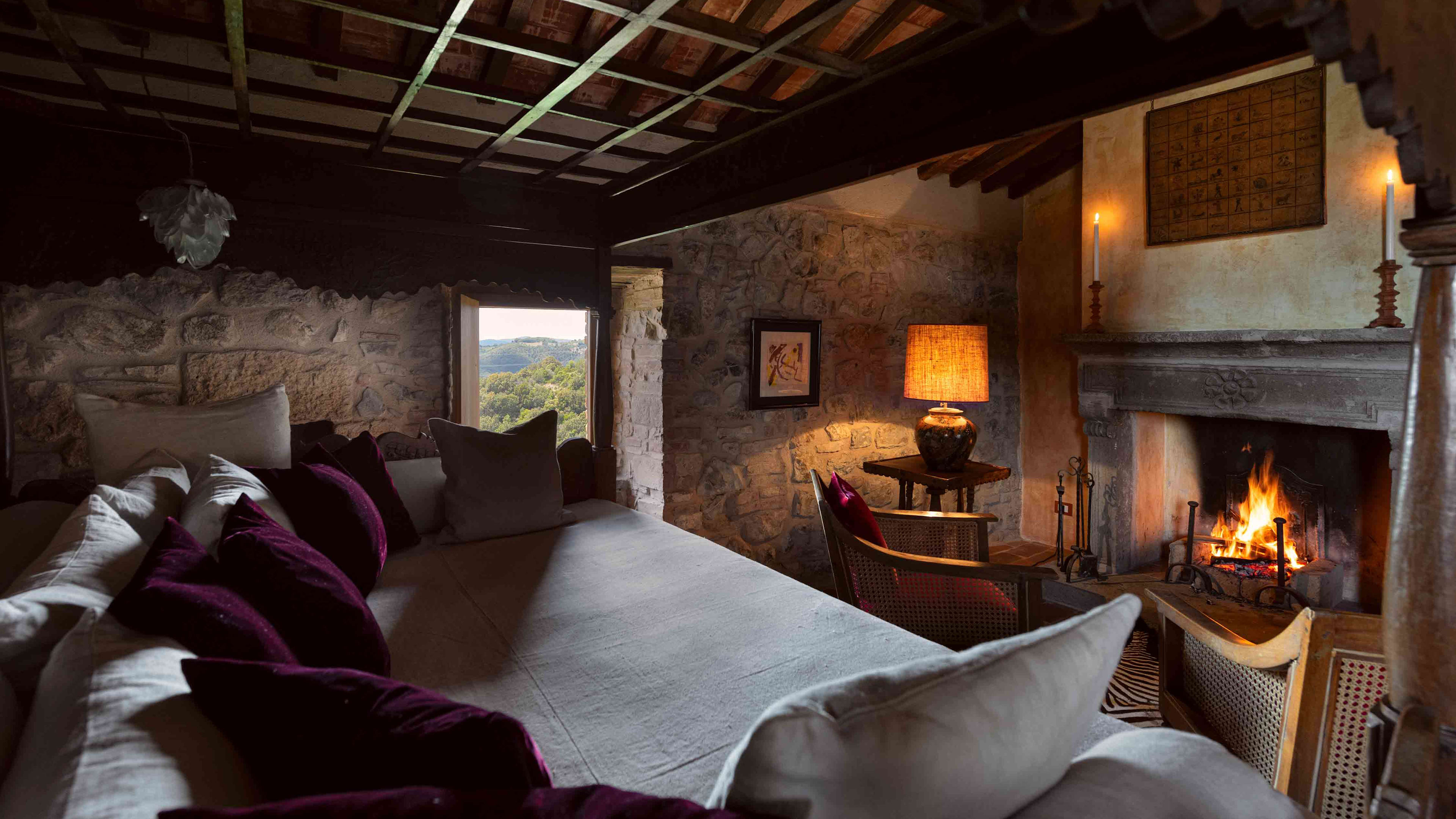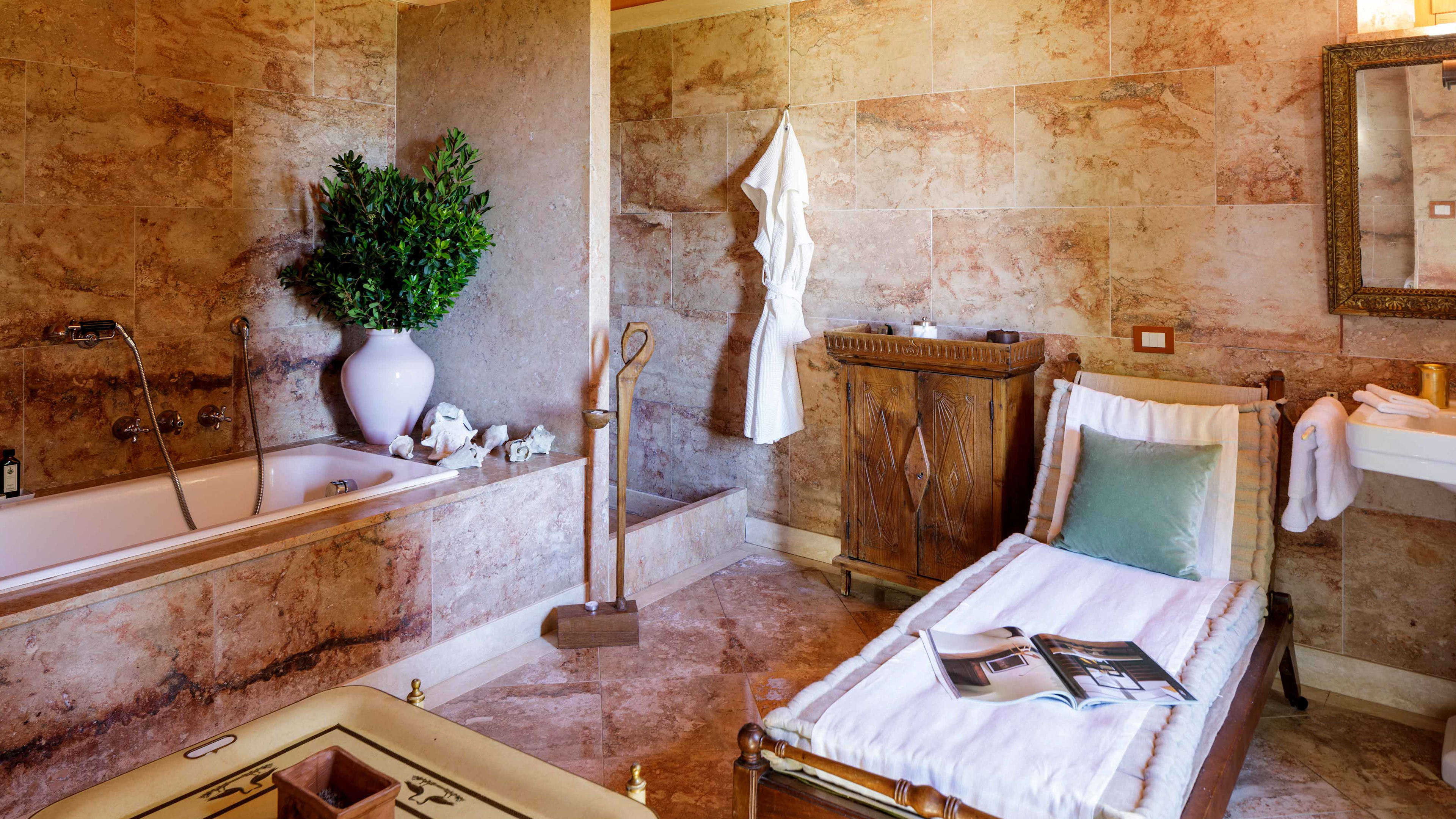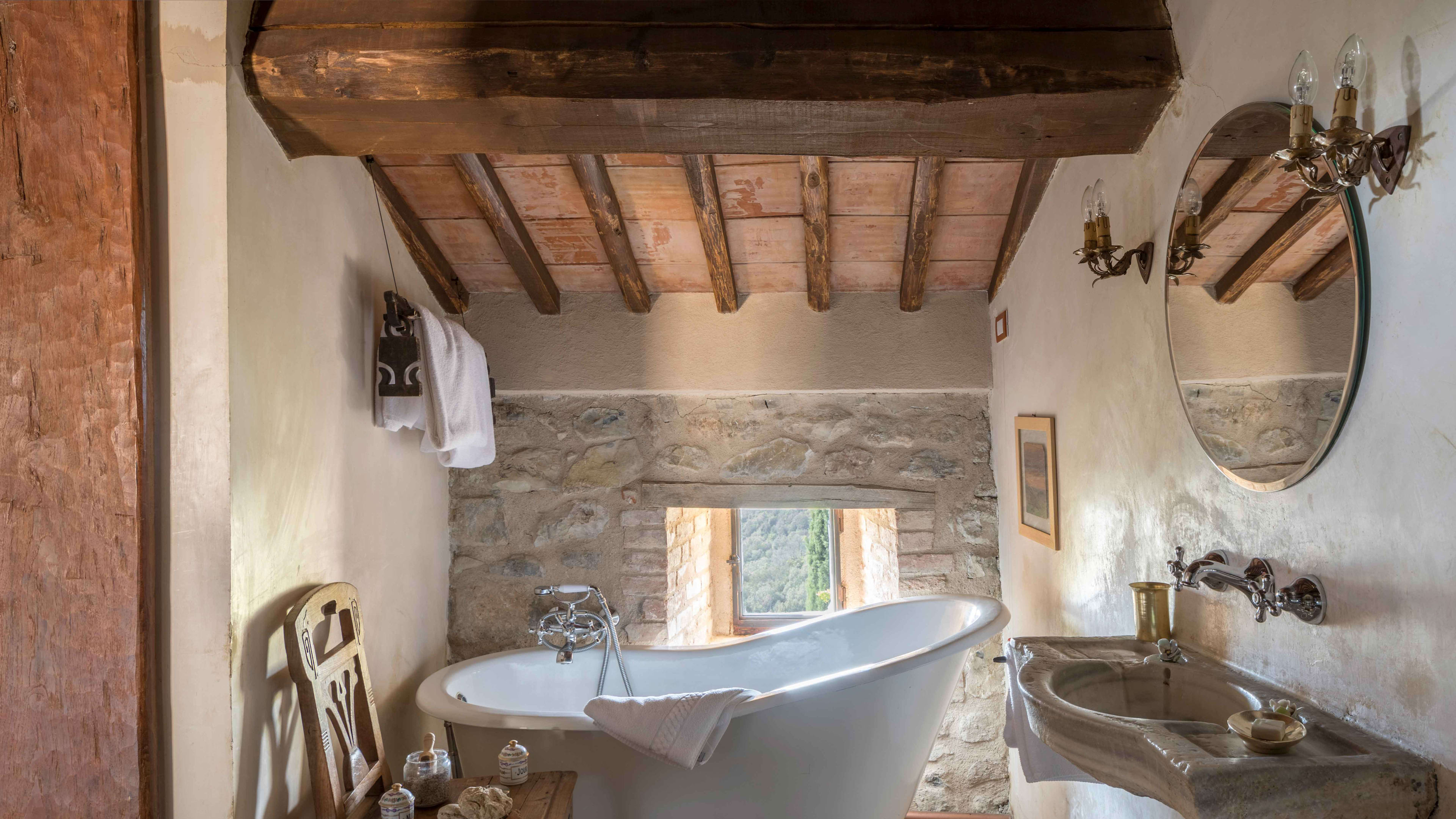 If you’re really looking to indulge, book the secluded Spa Suite, which is a short walk from the main castle. This modern, chalet-style suite has teak-clad interiors and floor-to-ceiling windows that look out across the Ombrone valley and river at the bottom of the hill. There’s an indoor hammam and sauna, and a wooden ‘barile’ hot tub on the sun deck, which has been positioned to perfectly catch the Tuscan sunset.