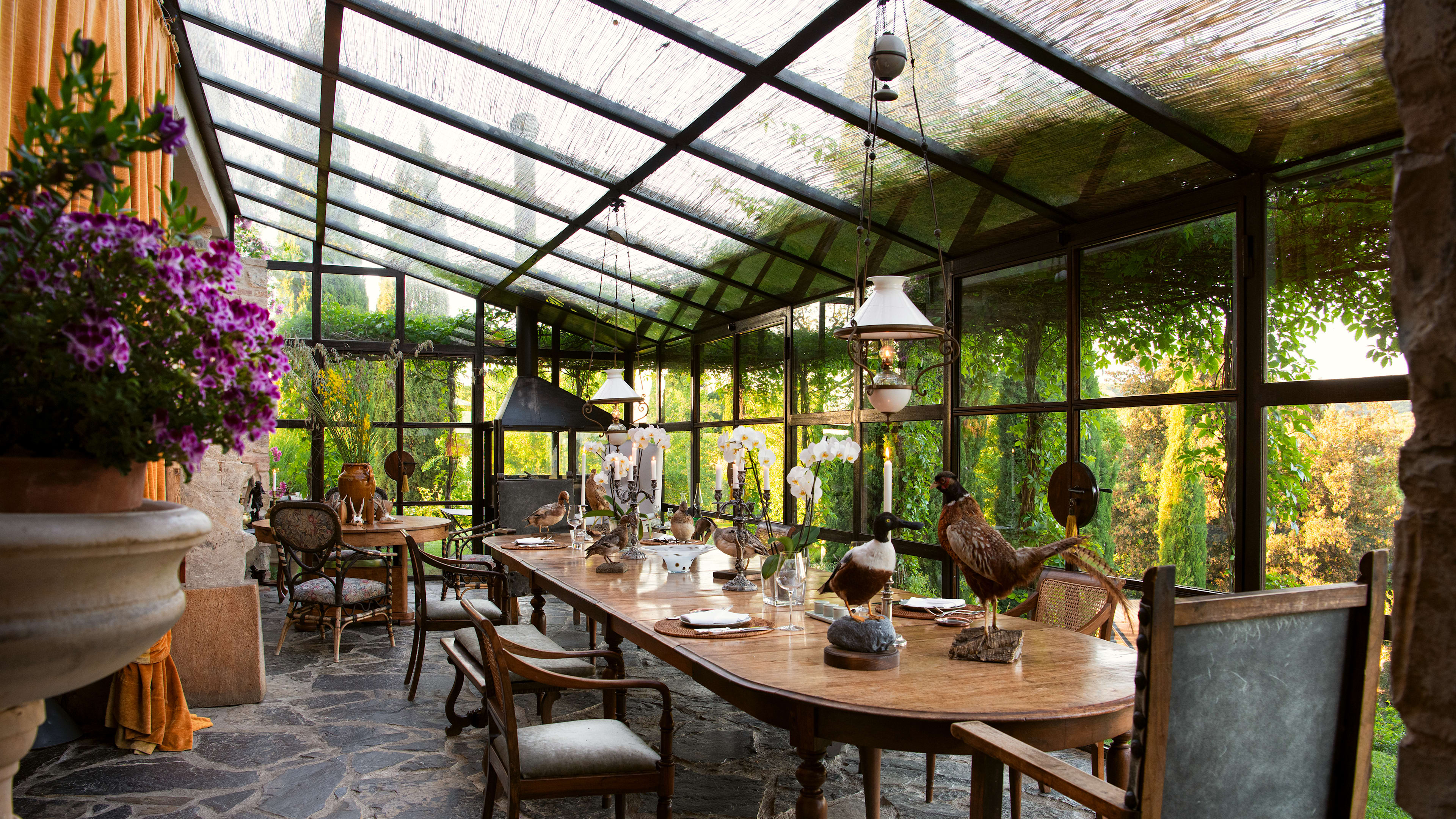 The round table in the corner by reception overlooks the whole dining area and the gardens – perfect for a romantic tête-à-tête. The owners will also arrange a secret spot in the gardens to dine in if you request.