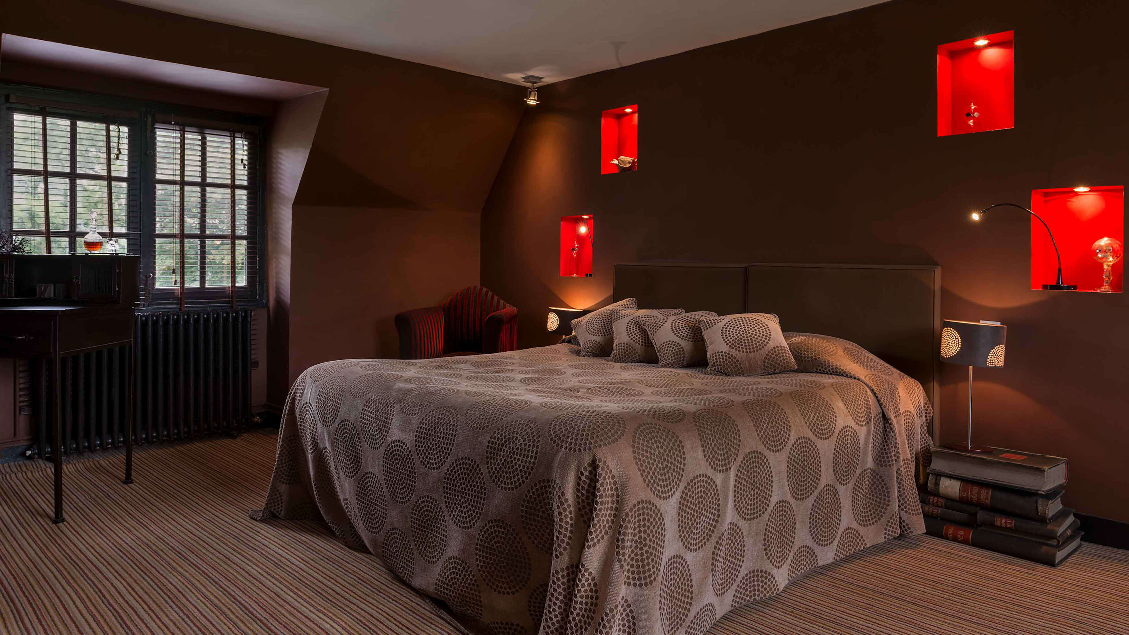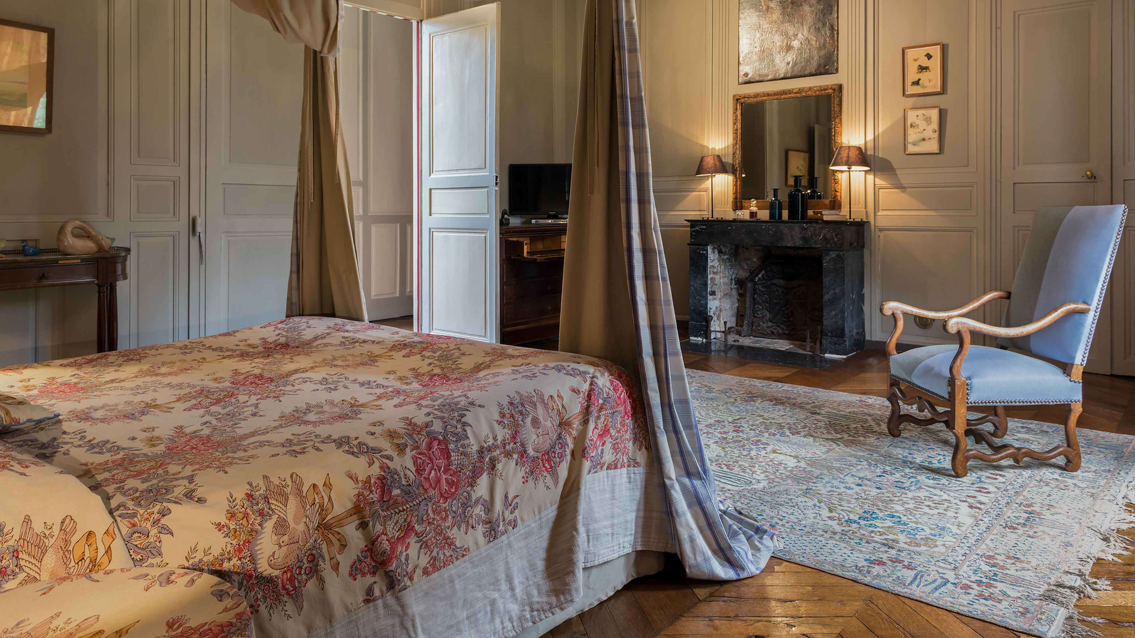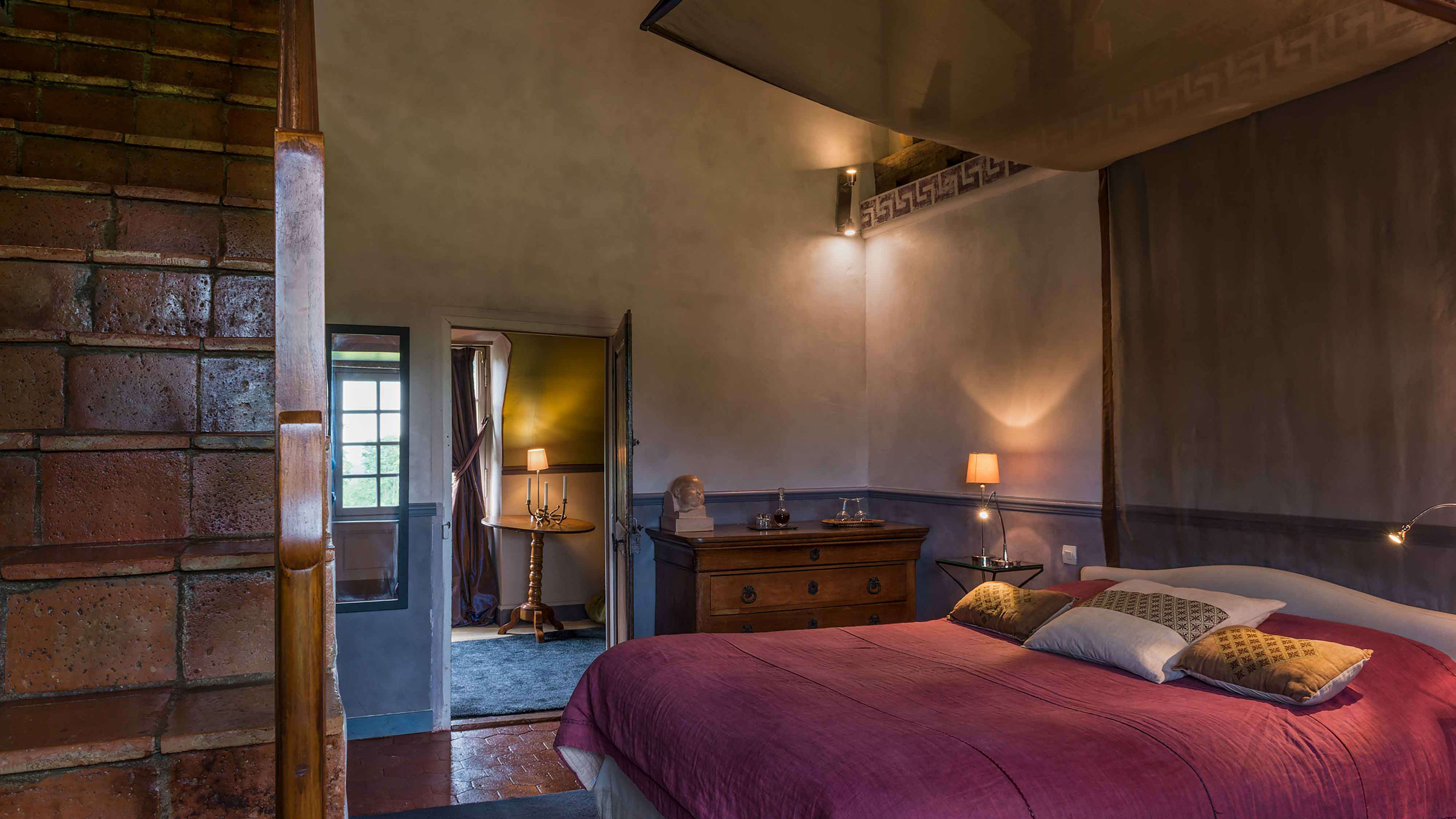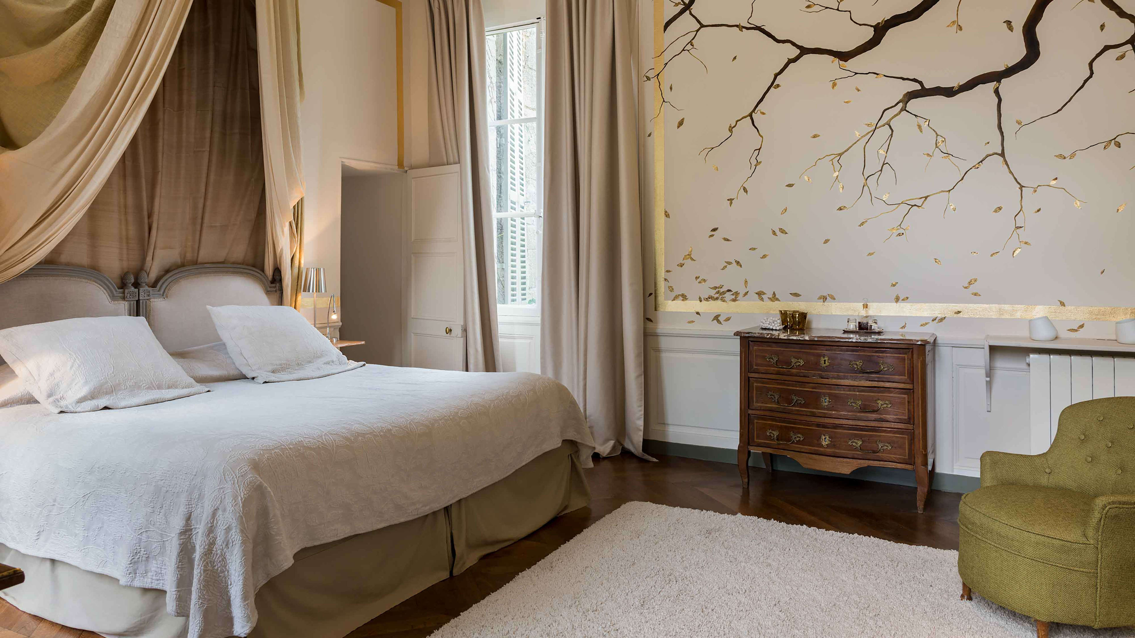 L’Orangerie is set apart from the château, a huge, self-contained suite with an open bathroom, vast wooden bed and one wall made from a 19th-century backdrop found in a Barcelona theatre. The château’s most modern room is the Chambre des Mystères, romantically secluded up two narrow flights of winding stairs (52 in total, if you're counting…). It’s chocolate-coloured, with bold red accents. For a stay that’s steeped in history, go for the Chambre d’Henri IV, where France’s first Bourbon king kipped. Chambre de Madame may have been the bedroom of owner Charles-Henry's grandmother, but these days is prized for its four-poster bed and panoramic pool-and-park views.