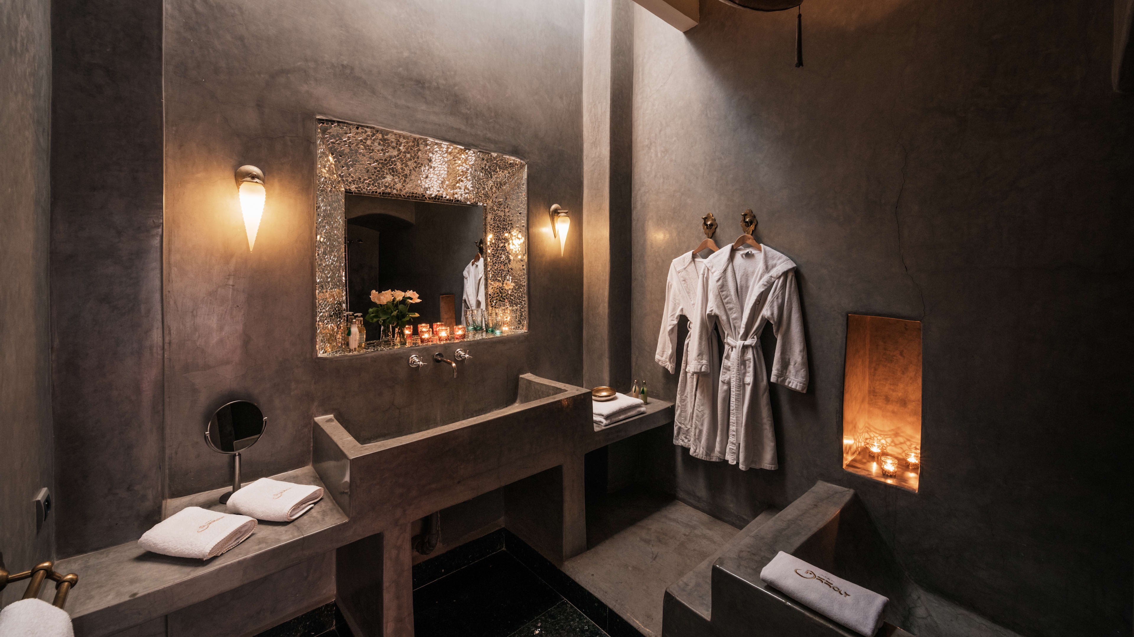 In room beauty and massage treatments, library, CD selection. In rooms: free bottled water, Les Sens de Marrakech toiletries.