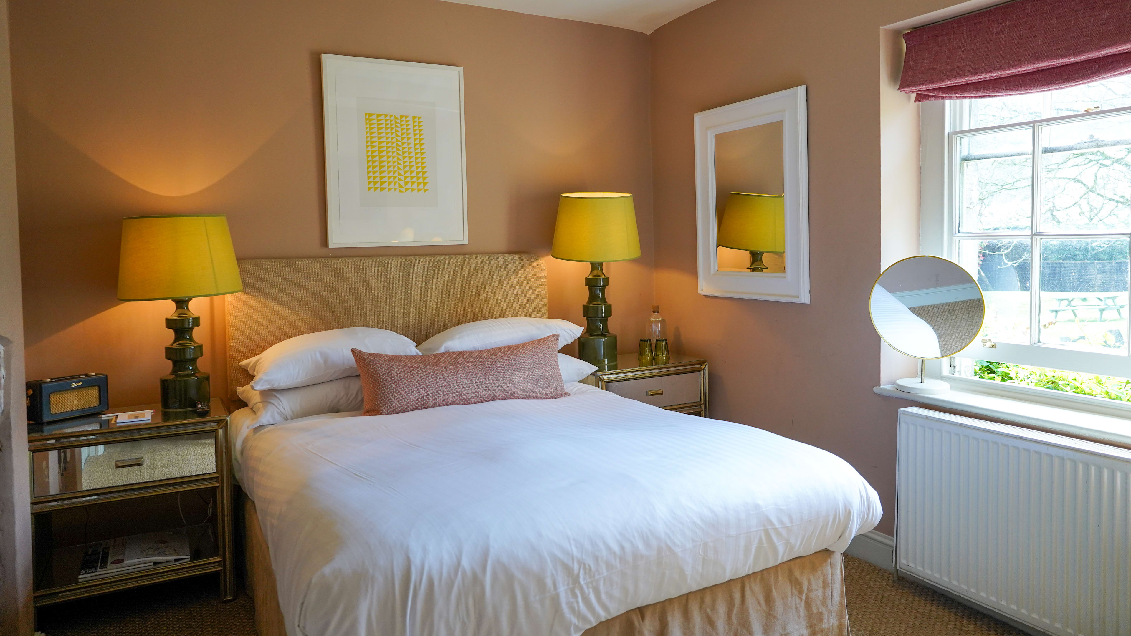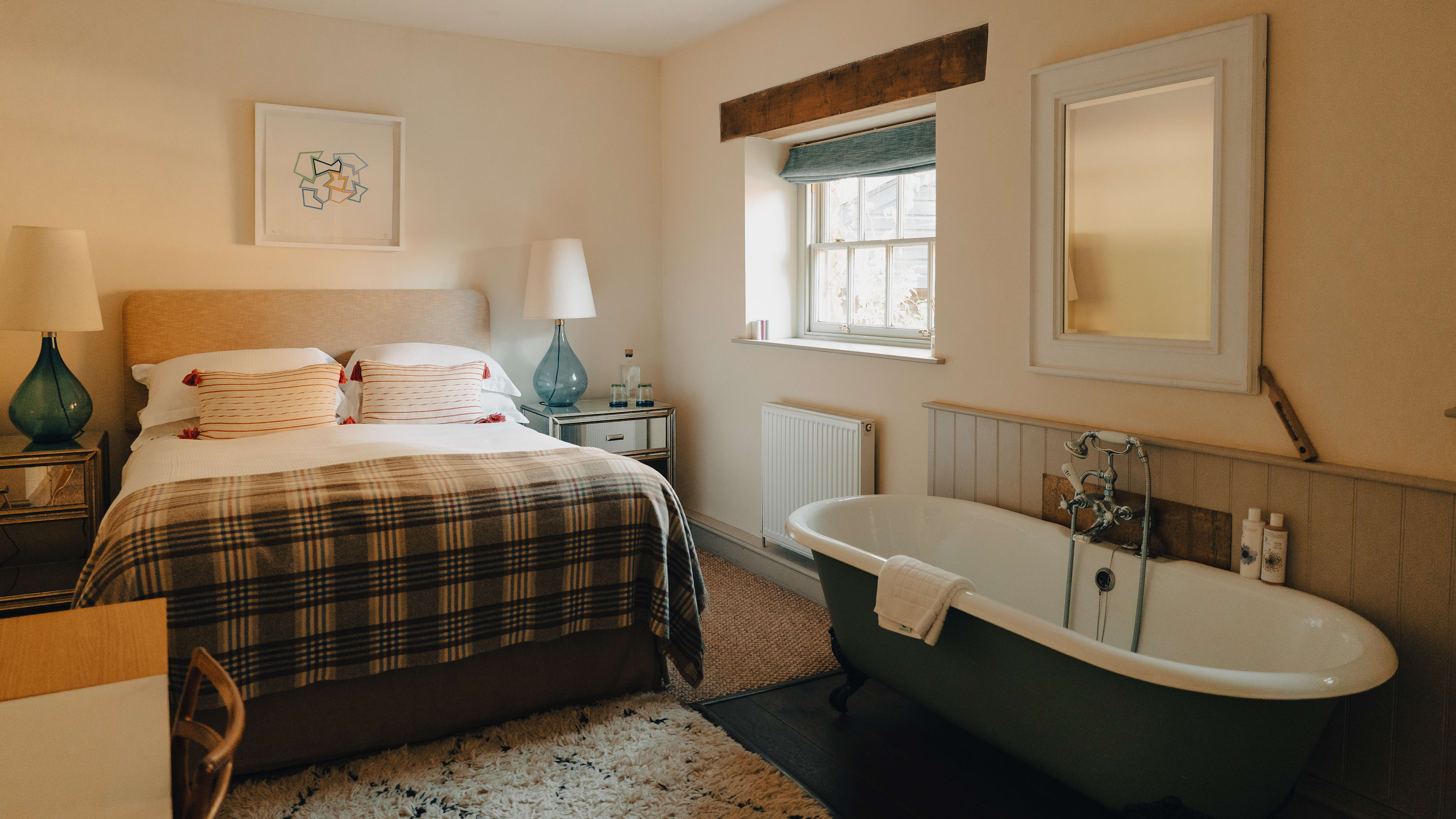 Room 1, nestled into the corner of the building above the sitting room, is one of the larger rooms. Room 5 is a cosy suntrap, with elegant mirrored bedside tables and a small stone fireplace. The Arch is located a little further afield and is the perfect space for families with two bedrooms, a kitchen, boot room and living room with a warming wood burner. Note to big packers: the Beckford's rooms don't have wardrobes, just wall pegs and hangers.