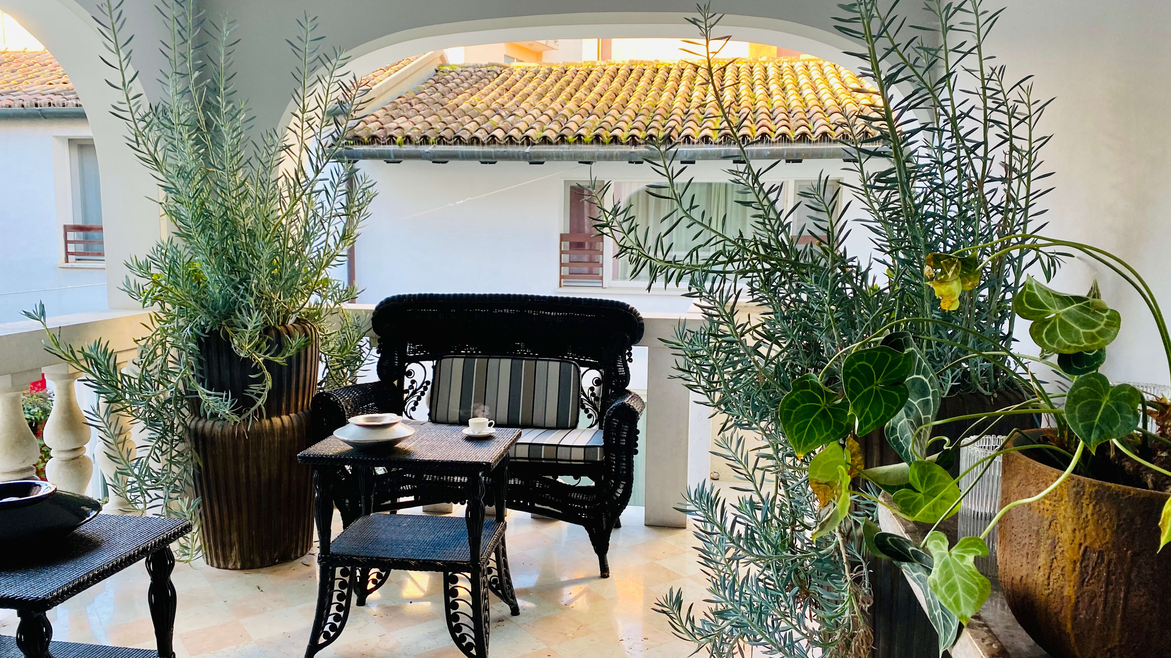 True to its name, La Romantica is a love den worth swooning over for its red lacquered four-poster bed that’s king-size but feels bigger, high ceilings with white wooden beams, parquet flooring, shower for two, and peaceful private terrace with views over the courtyard. Cosy and inviting, La Musica – taking up the whole top floor – has a treehouse-y feel and is teched out with a Bang & Olufsen sound system (hence the name). ‘Best Bathroom’ prize goes to La Suite, which dazzles with its Carrera marble-clad number.