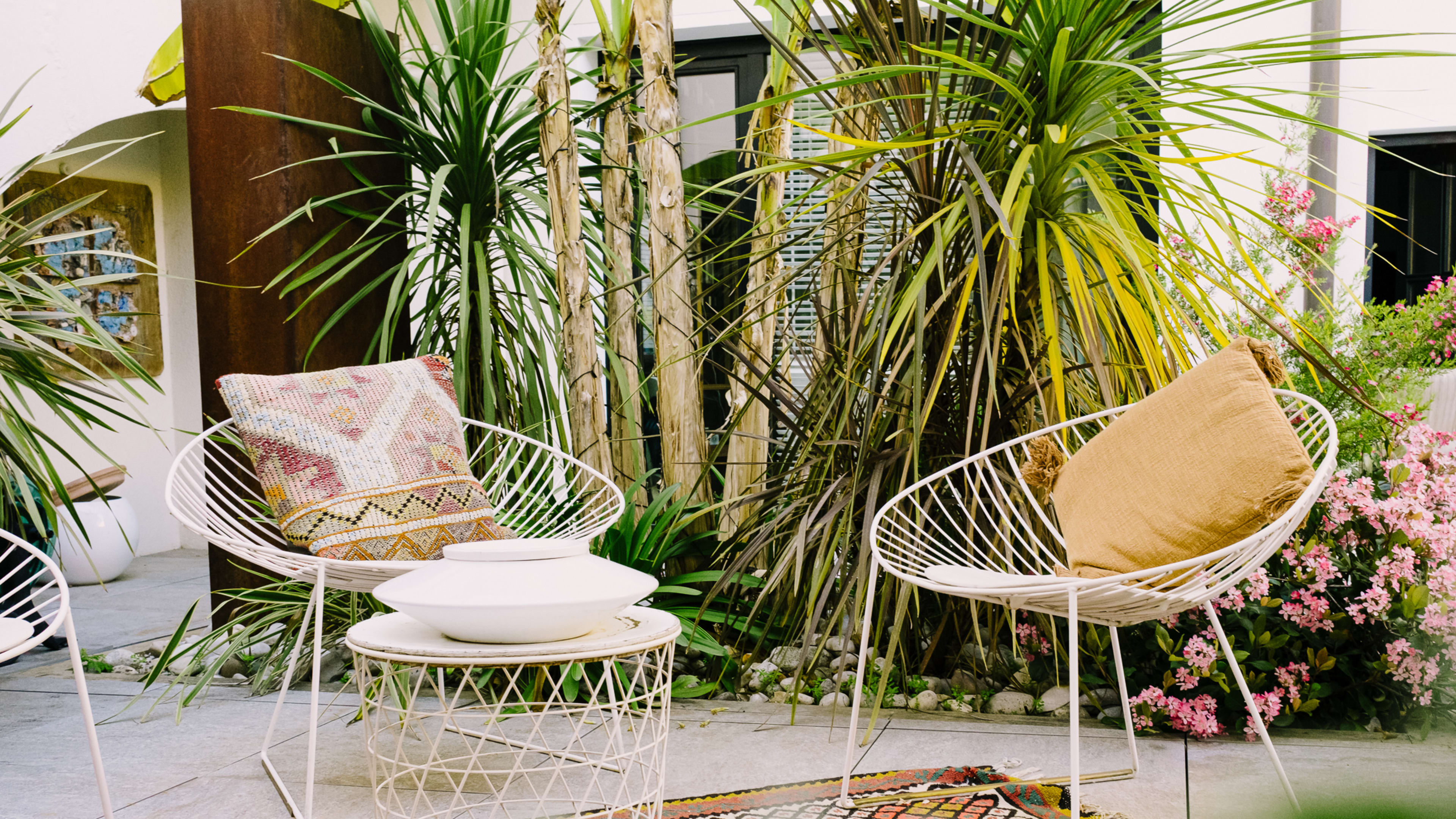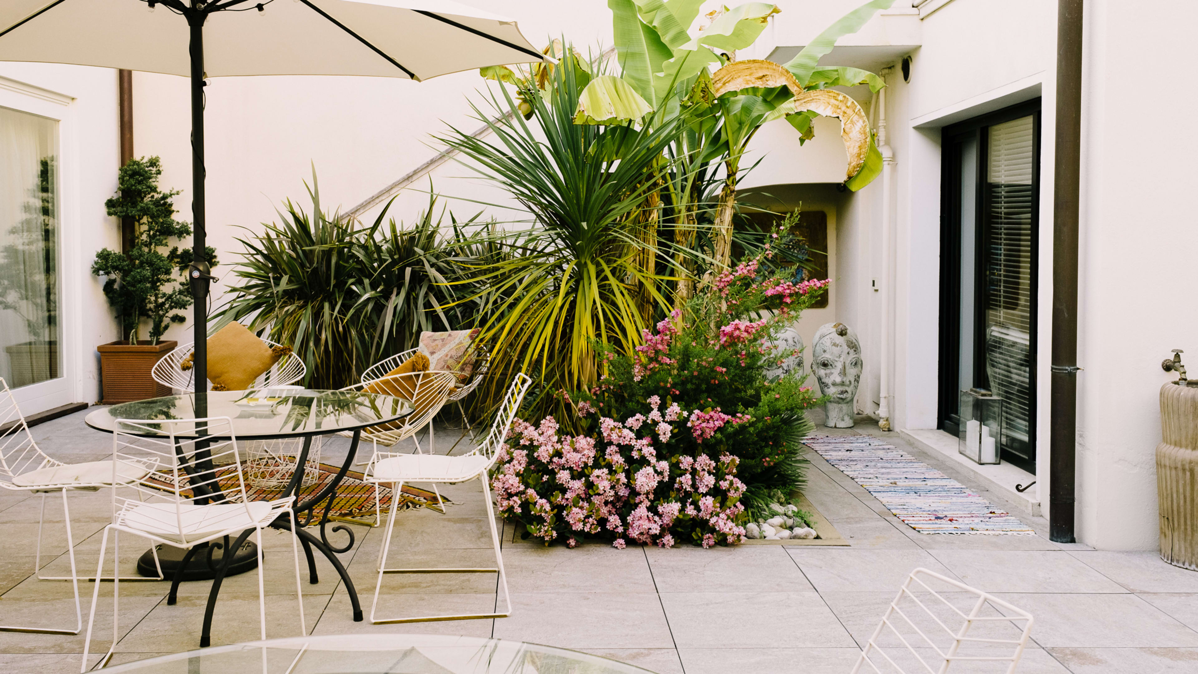 Shotgun the sunloungers on the terrace, or settle in with a book on the sleek ivory sofa.