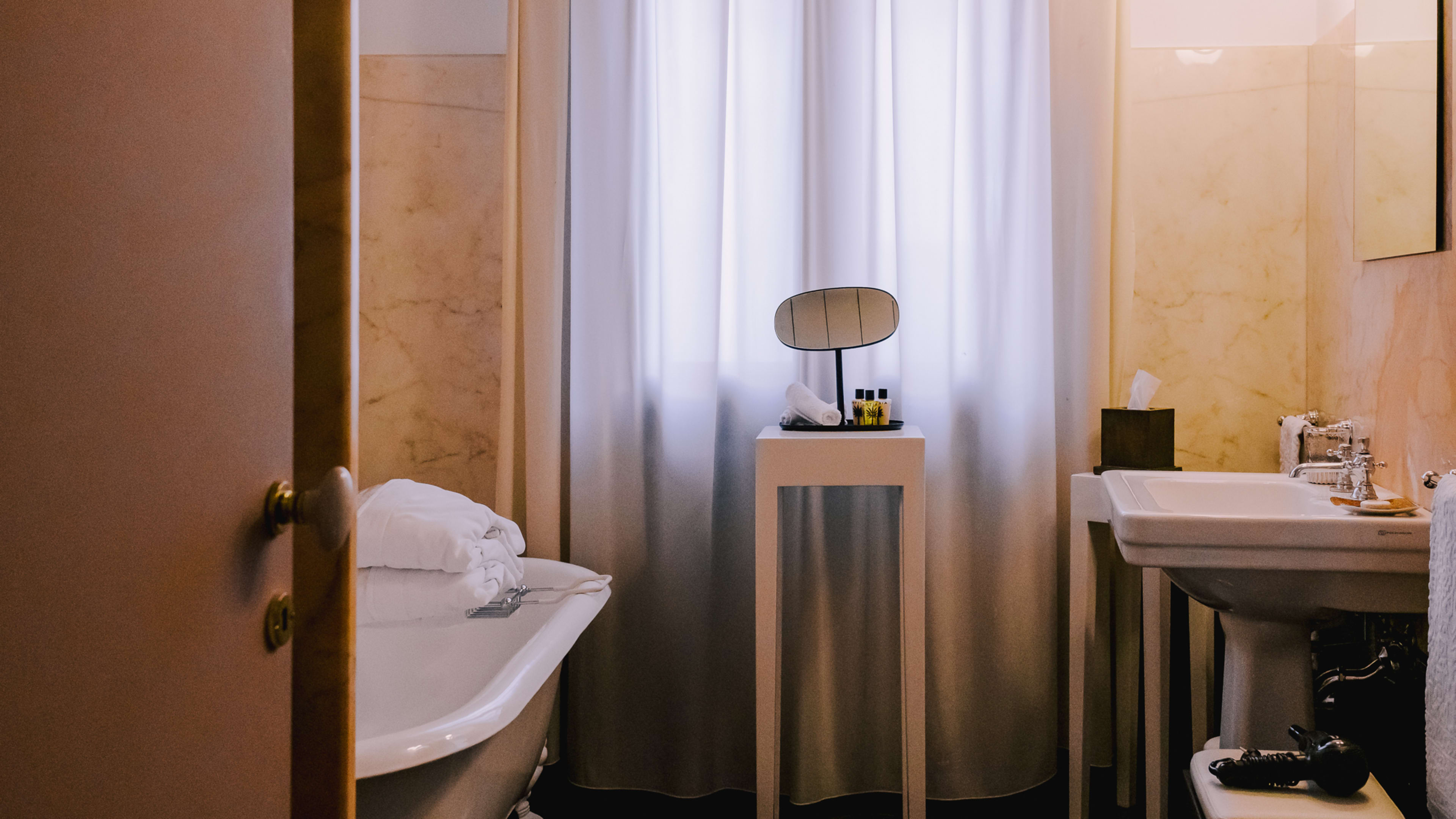 Library, free WiFi throughout. In rooms: flatscreen TV with Netflix and Amazon Prime, CD player, Tivoli radio, Maison Margela and Ortigia bath products, pastries and cookies, Nespresso coffee, free bottled water, Mariage Frères tea and soft drinks from the minibar.