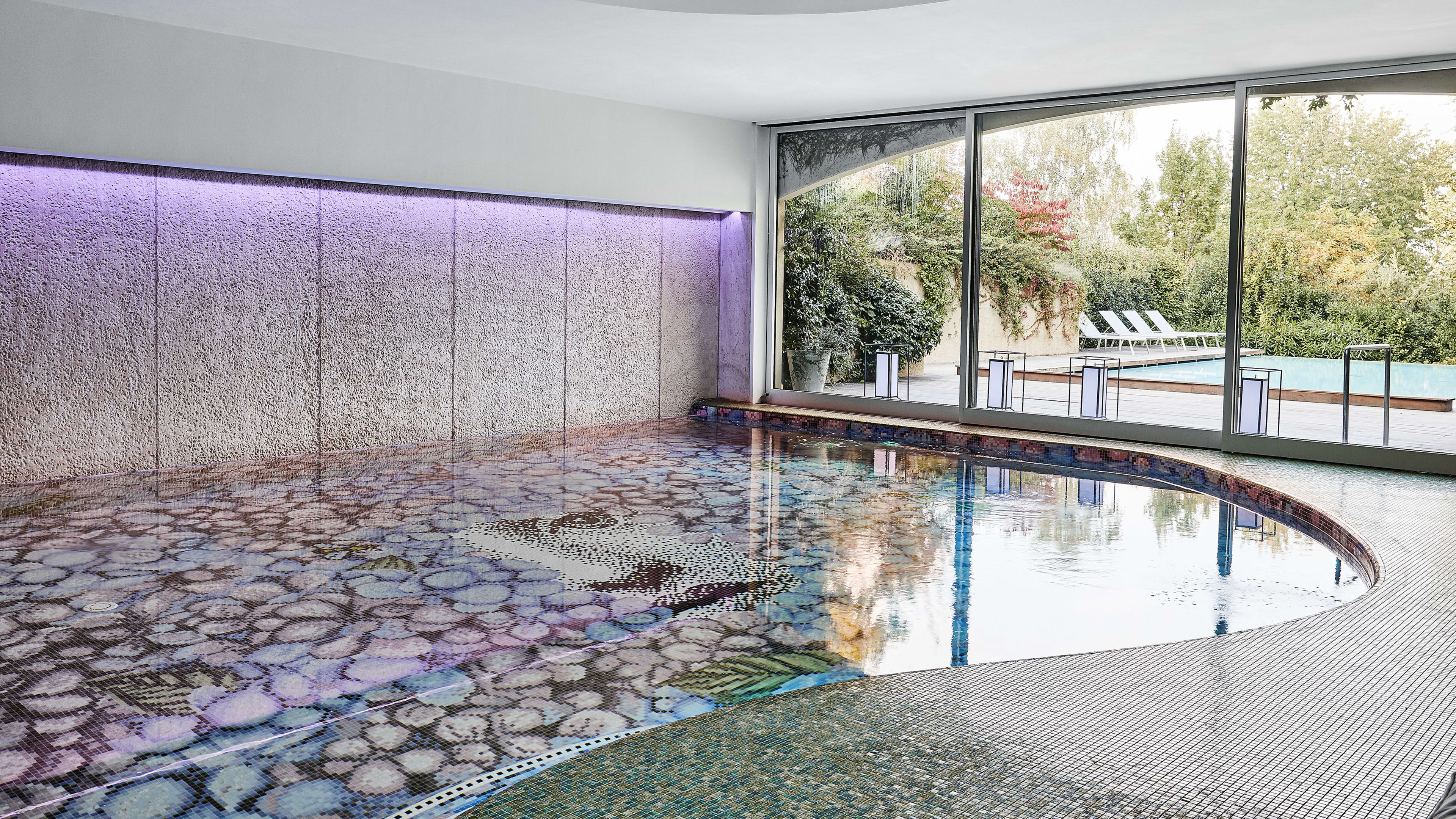 Lounge by the heated indoor pool in the spa area, which has counter-current swimming and hydromassage jets to soothe from top to toe.
