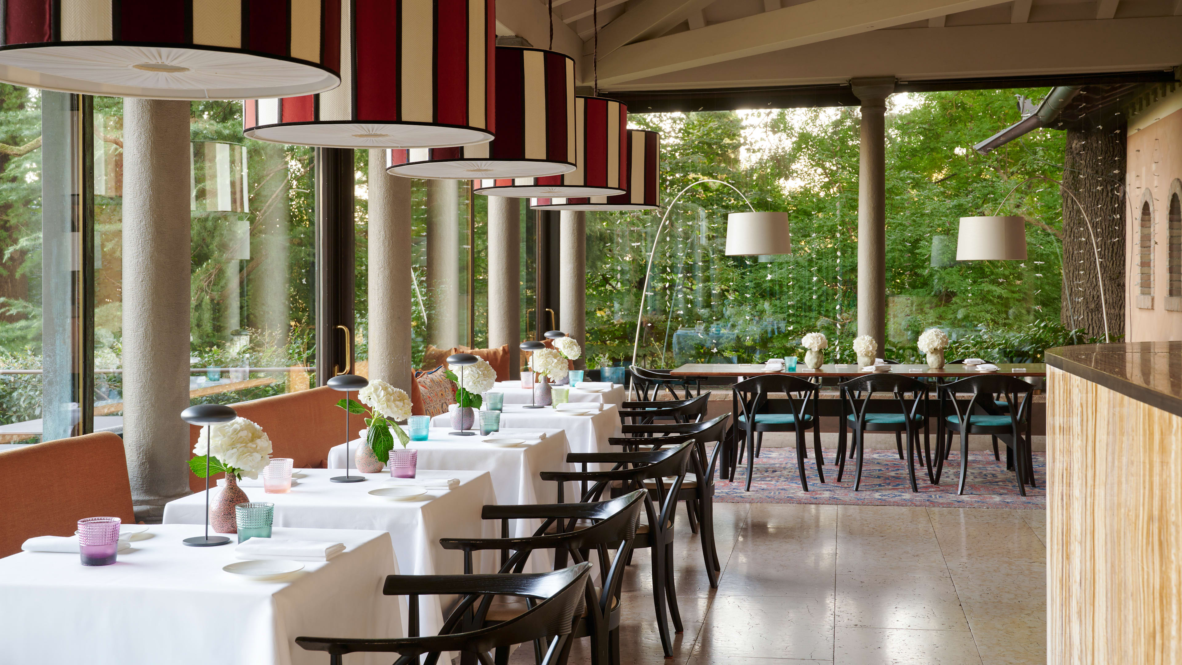 Leone Felice's chef Alberto Quadrio finds most of his ingredients on the green hillside where L'Albereta sits; chickens and rabbits are bred close by, and herbs, fruits and vegetables grow in the kitchen garden. Dishes are traditional rustic Italian with a few modern touches: dine on tortelli is stuffed with burrata cheese and caviar, cod drizzled with almond mayonnaise and violet Sanremo prawns served with sweet grape, under the restaurant's moon-shaped lights. Guests enjoying treatments at the spa can dine on tempting – and dietician-approved fare – at the Wellness Restaurant. Pizza kiosk La Filiale (helmed by Franco Pepe) serves up crisp, tasty masterpieces alongside a list of wines from Franciacorta and beyond. Fine-dining L'Aurum serves top tasting-menu dinners (7.30pm–10pm) on Monday, Tuesday, Friday and Saturday, with lunch only on Sunday (12.30pm–2pm).