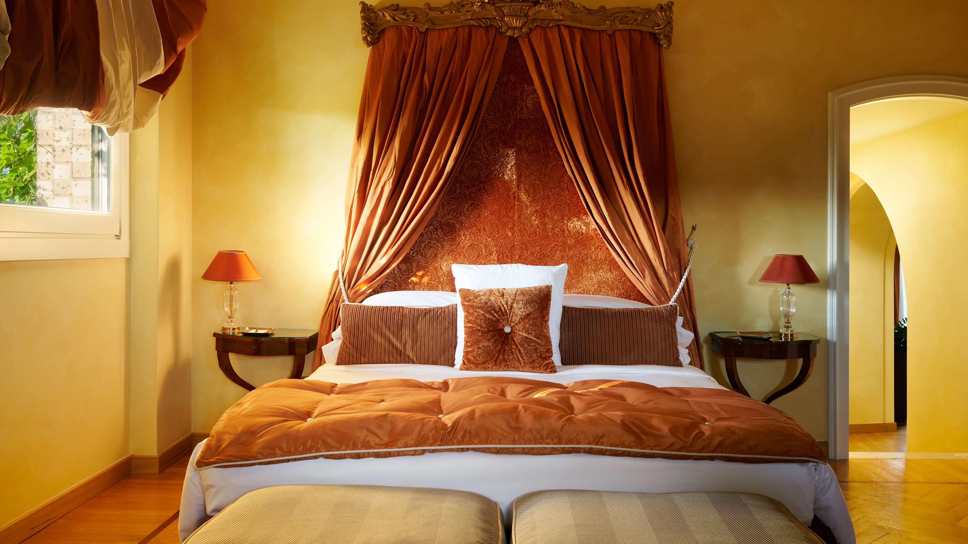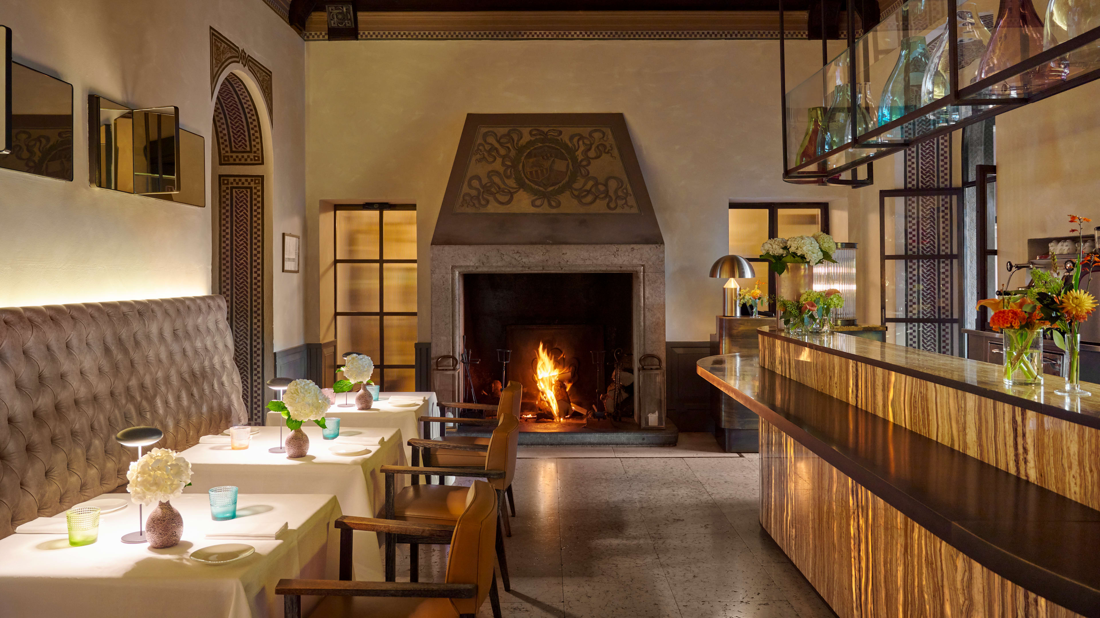 Curl up in the tiny Sala Scacchi, just off the lobby: it’s got a grand fireplace stacked with heraldic finery, high ceilings, the building’s original frescoes and an intimate, cosy atmosphere.