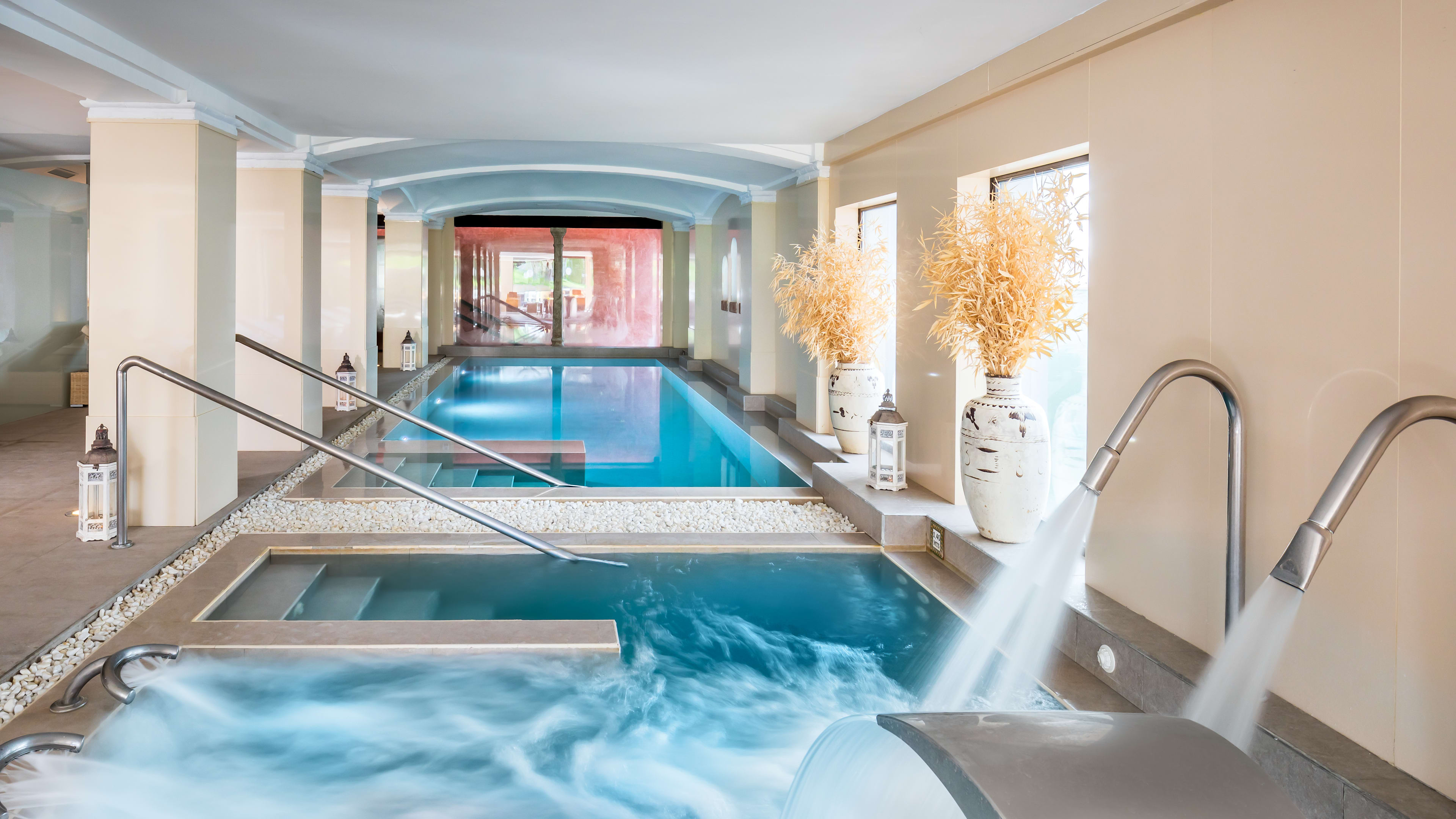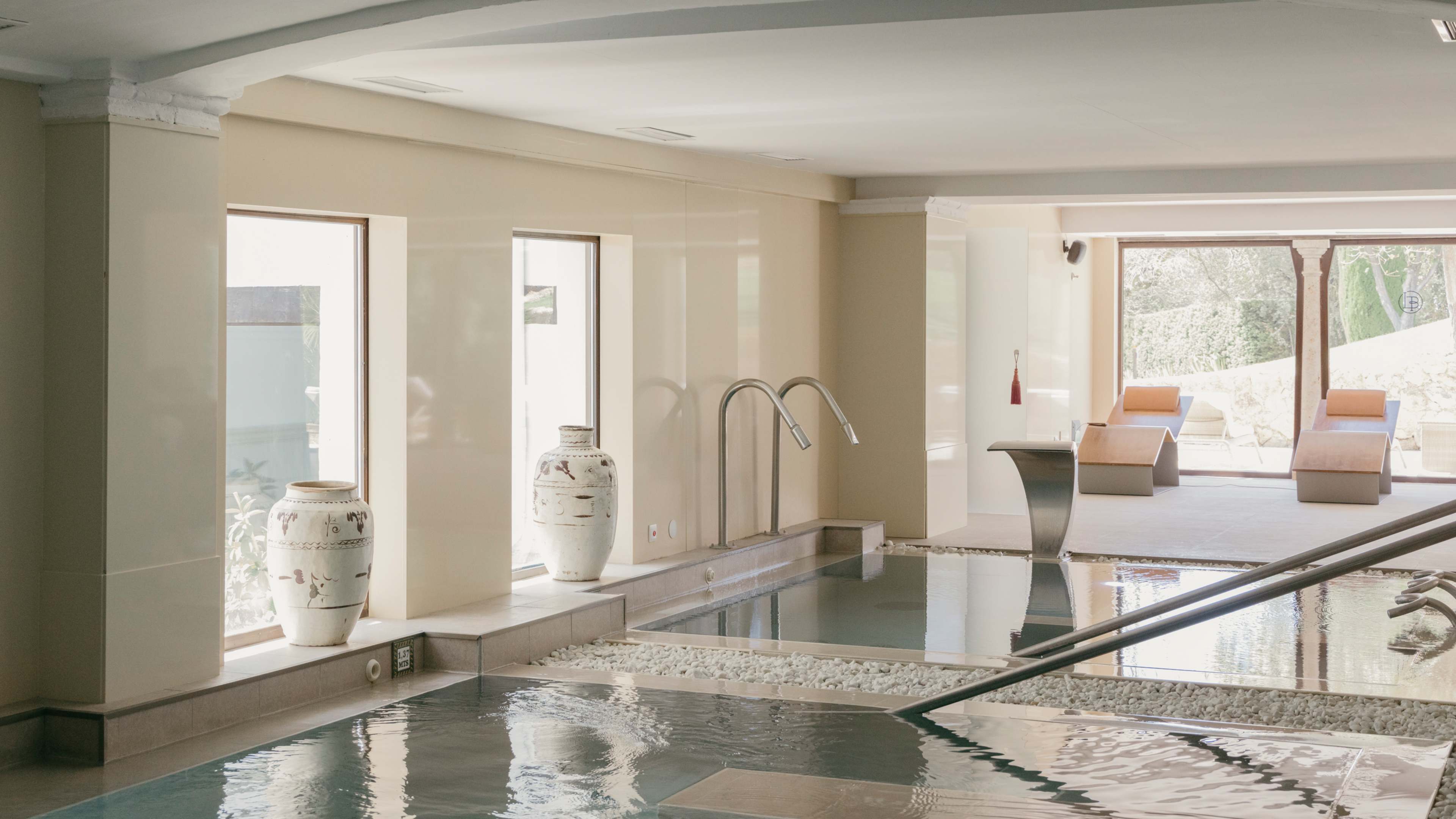 The classical baths-style is all tiles, exposed brick columns and high, arched white ceilings; there are four treatment rooms (including a couples' suite with two massage tables and two whirlpool baths) and a hydrotherapy zone incorporating a heated indoor pool with body jets, hydro-massage pool with neck massages and waterfall, plus a solarium, Finnish sauna, hammam and steam room. Book a primp (waxing, mani-pedi) or a pamper (seaweed wrap, anti-ageing marine facial or olive oil body treatments) then relax on roomy day beds by the pool. The spa is open daily from 9am to 8pm. Kids are allowed in the spa, but only 11am–1pm daily. There's also guided forest walks for those who would rather get out and explore the hotel's impressive surroundings.