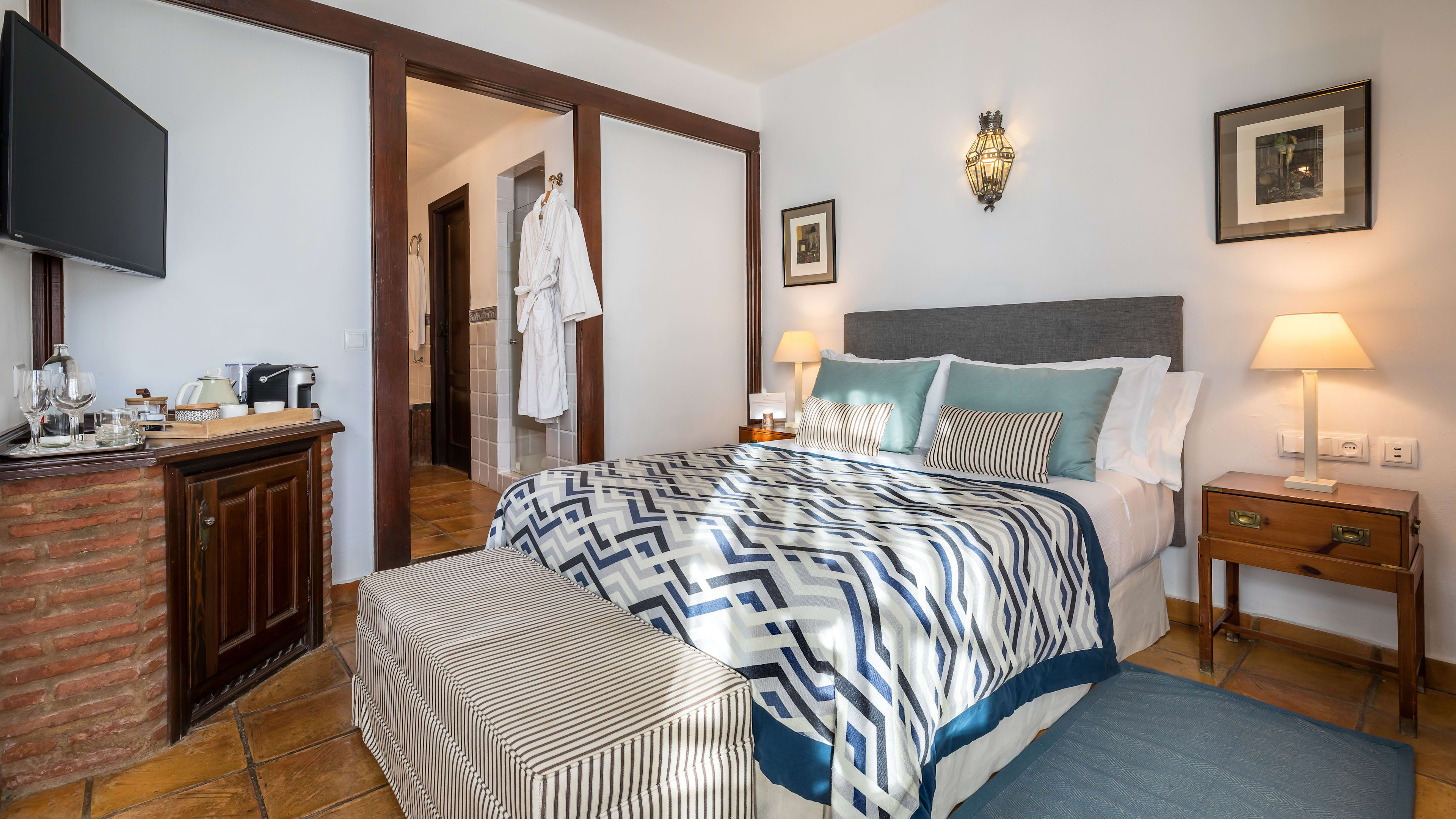 The hotel has four restaurants: La Finca, El Jardin, La Plaza and El Mirador. Well-loved La Finca has been awarded a Michelin Star on account of its traditional Andalusian fare, cooked up with locally-sourced and fresh ingredients. The wine cellar at this destination restaurant wins awards. La Finca is closer to the main building and is white-tablecloth and family-friendly. Breakfast (included in your room rate) is served at El Jardin: a lavish buffet of fruit and yoghurt, local cheeses and jamón, made-to-order eggs, waffles, pancakes, plus chilled cava to kick off a cosseted day of doing nothing.