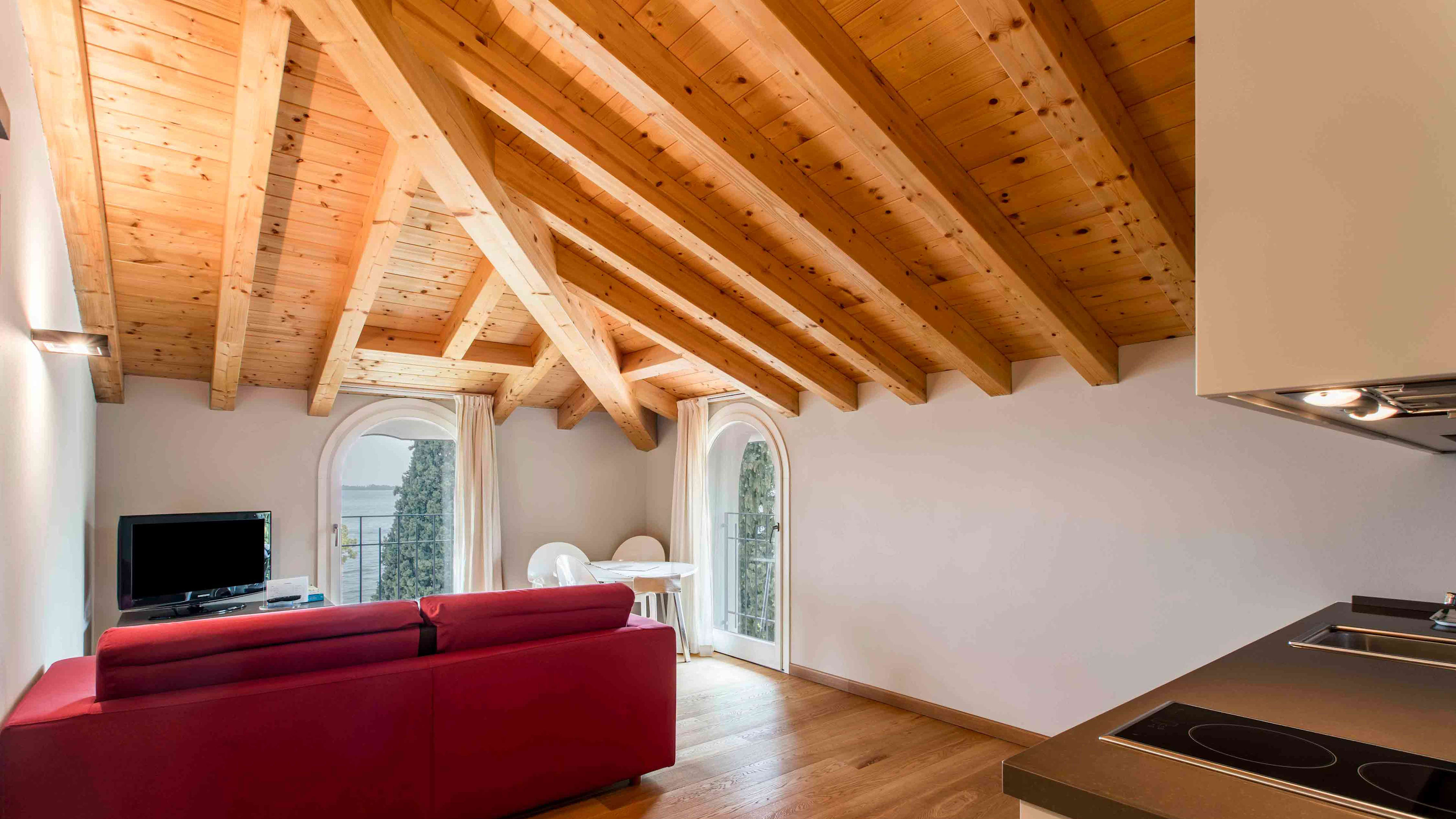The hotel is easily accessed from the only road that sweeps round the lake, meaning you may catch the sound of passing cars in between tweeting birds, gently lapping waves and church bells wafting across the water.