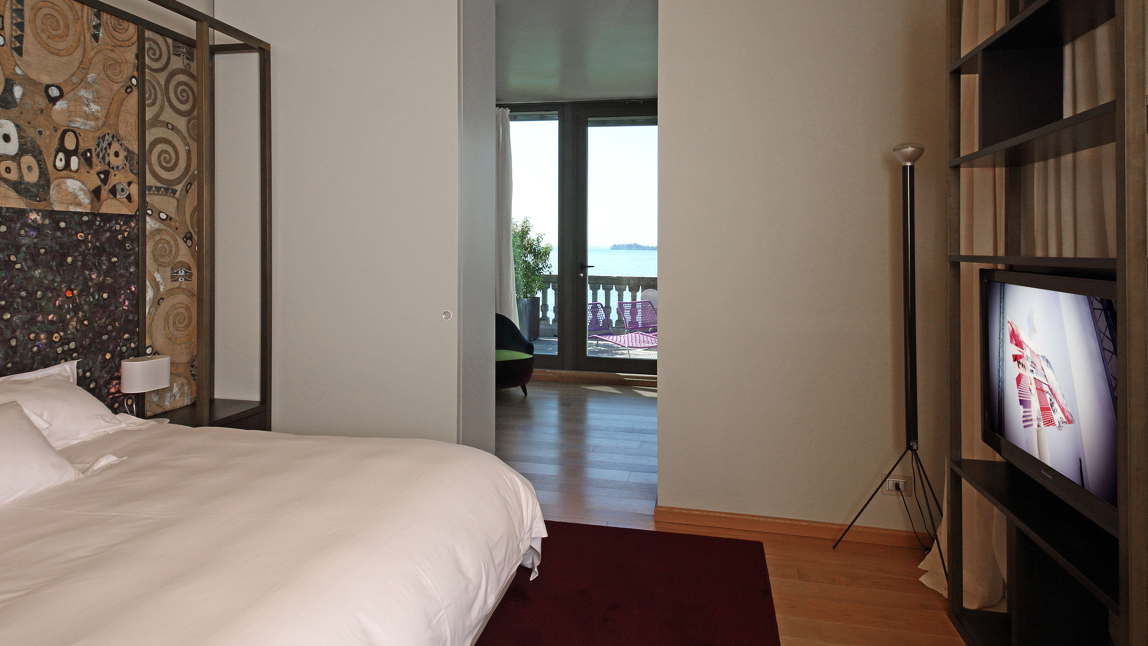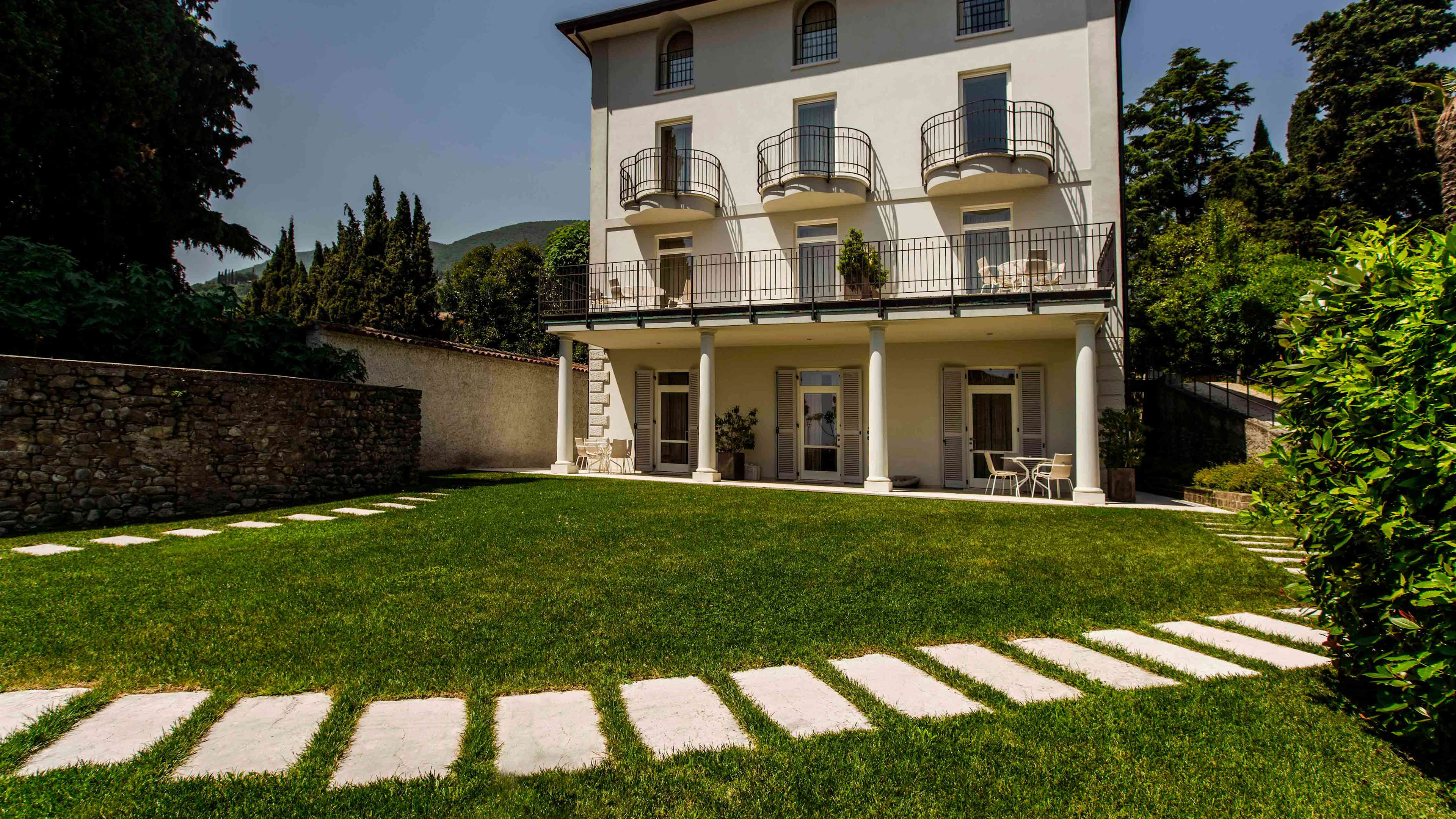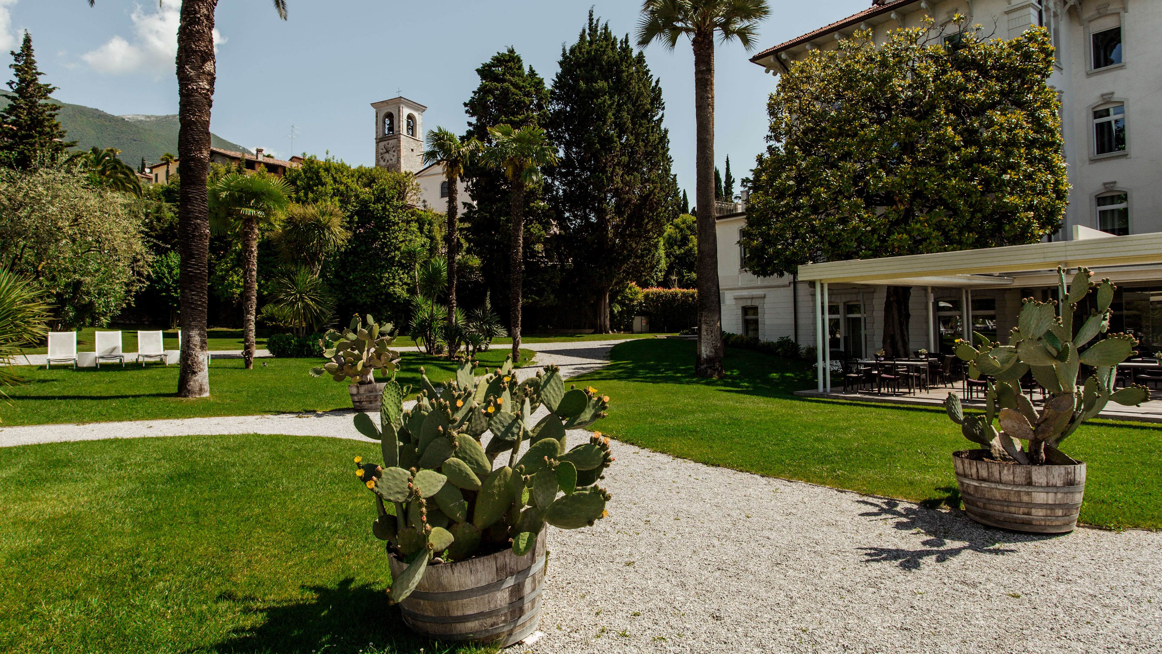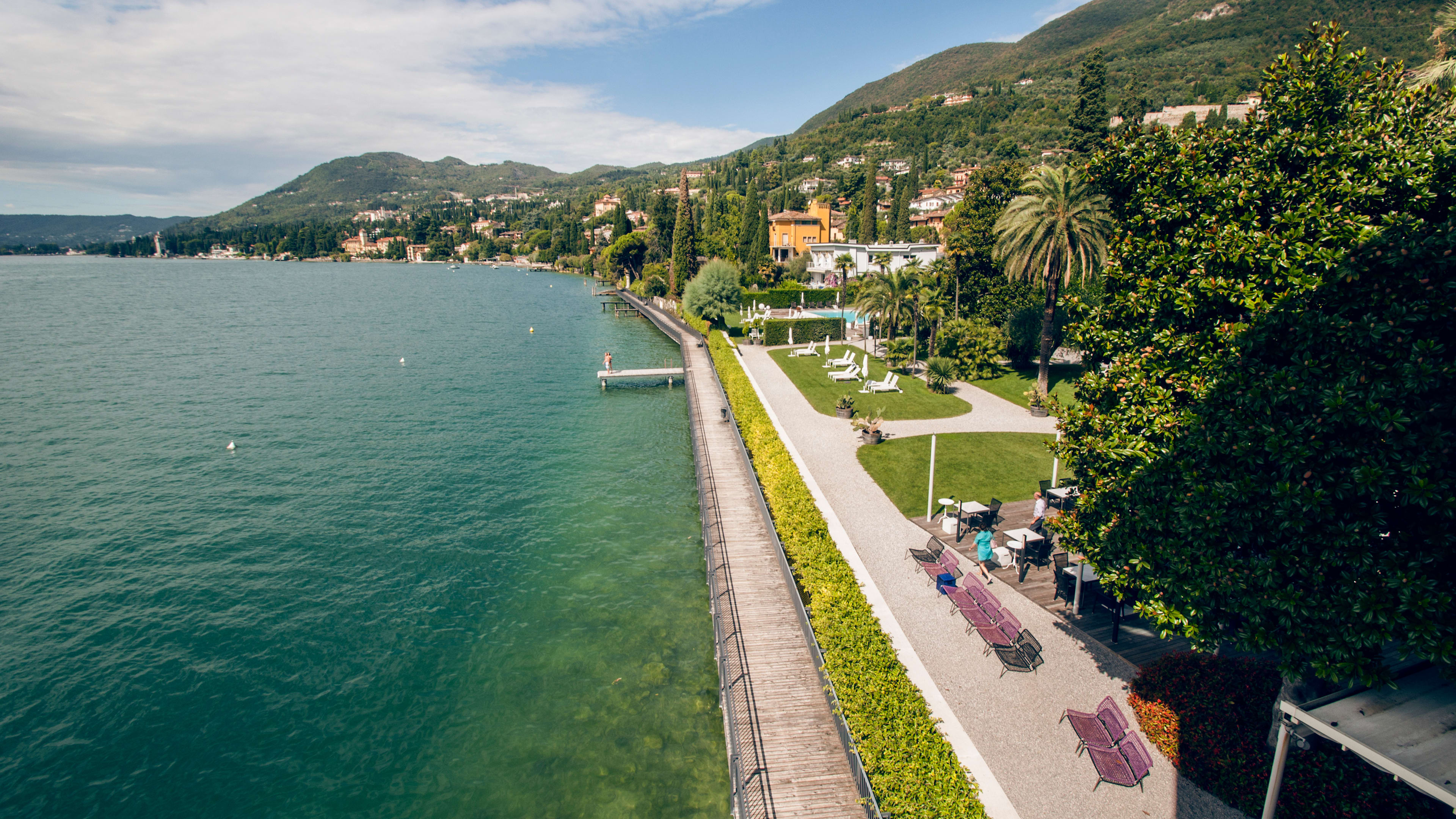 Lake Garda’s shores are best explored with a hire car, though it’s a short ride on local buses to nearby Salo or picture-perfect Gargnano. The hotel has free onsite parking, and is easily accessible from the main road circling the lake.