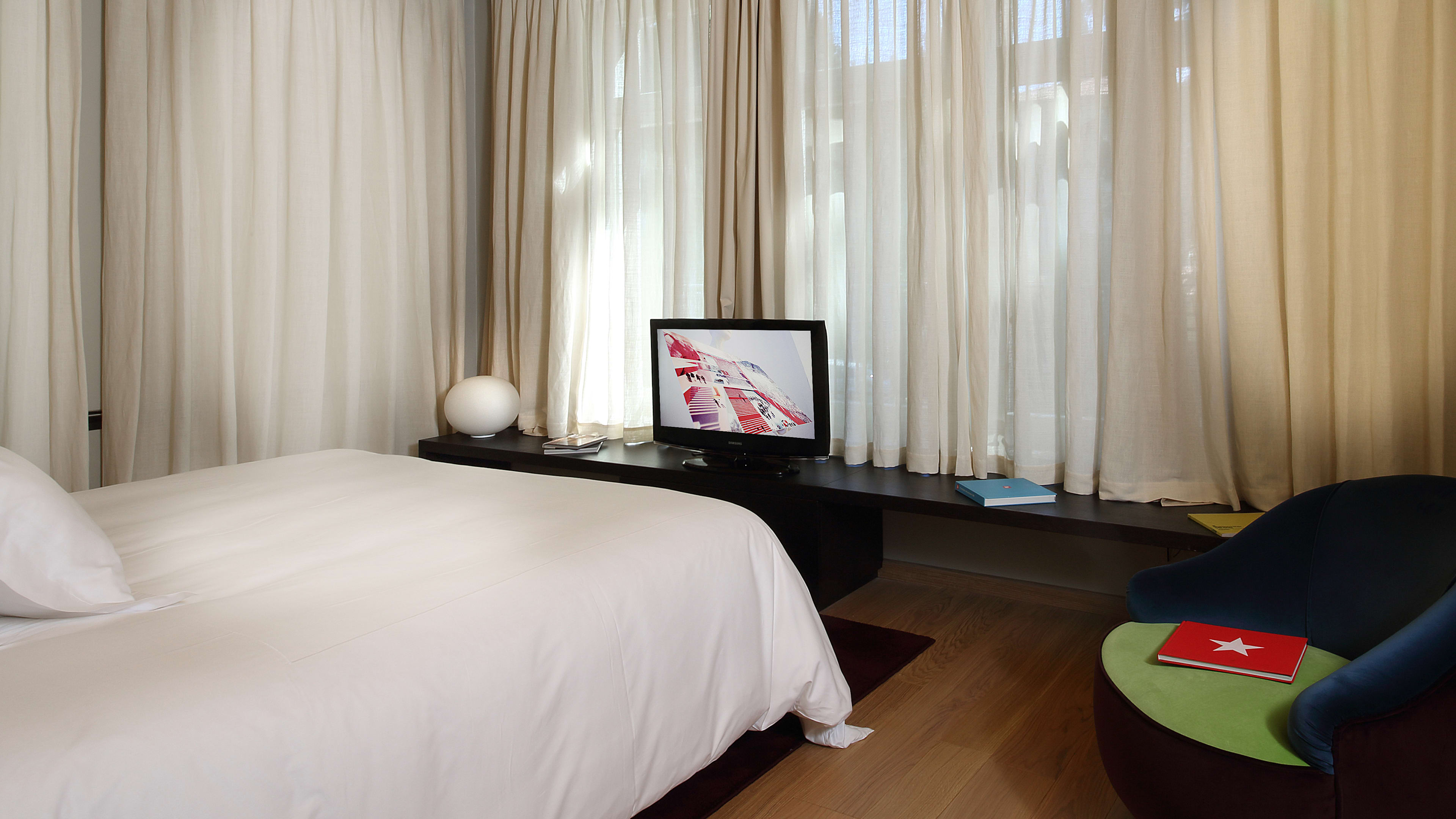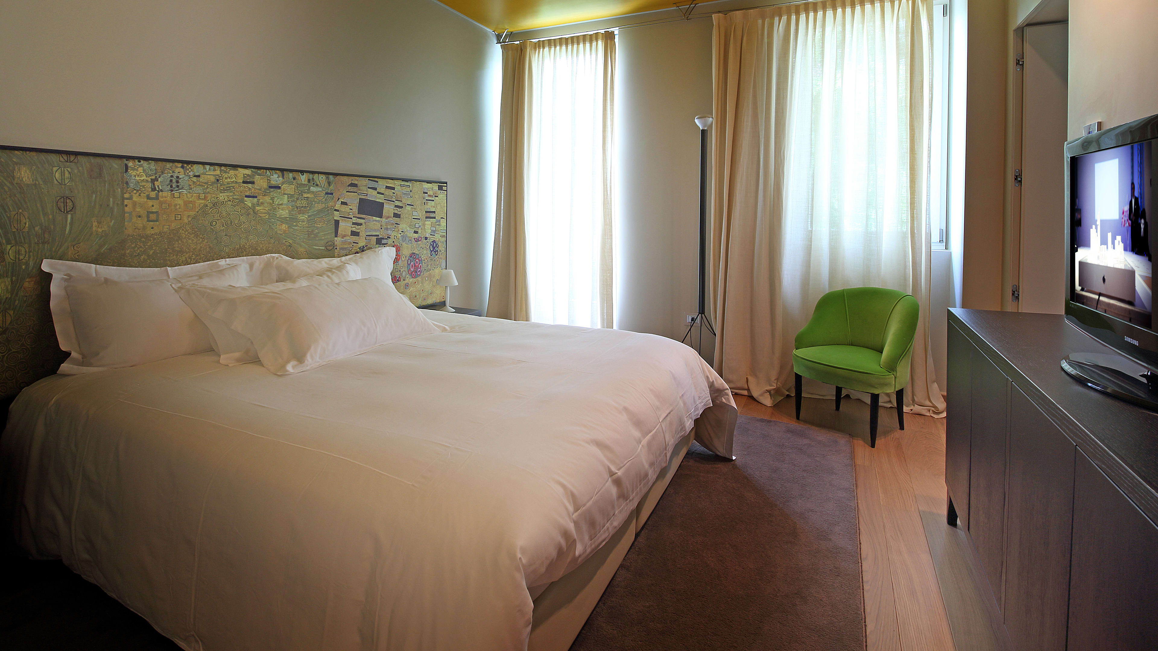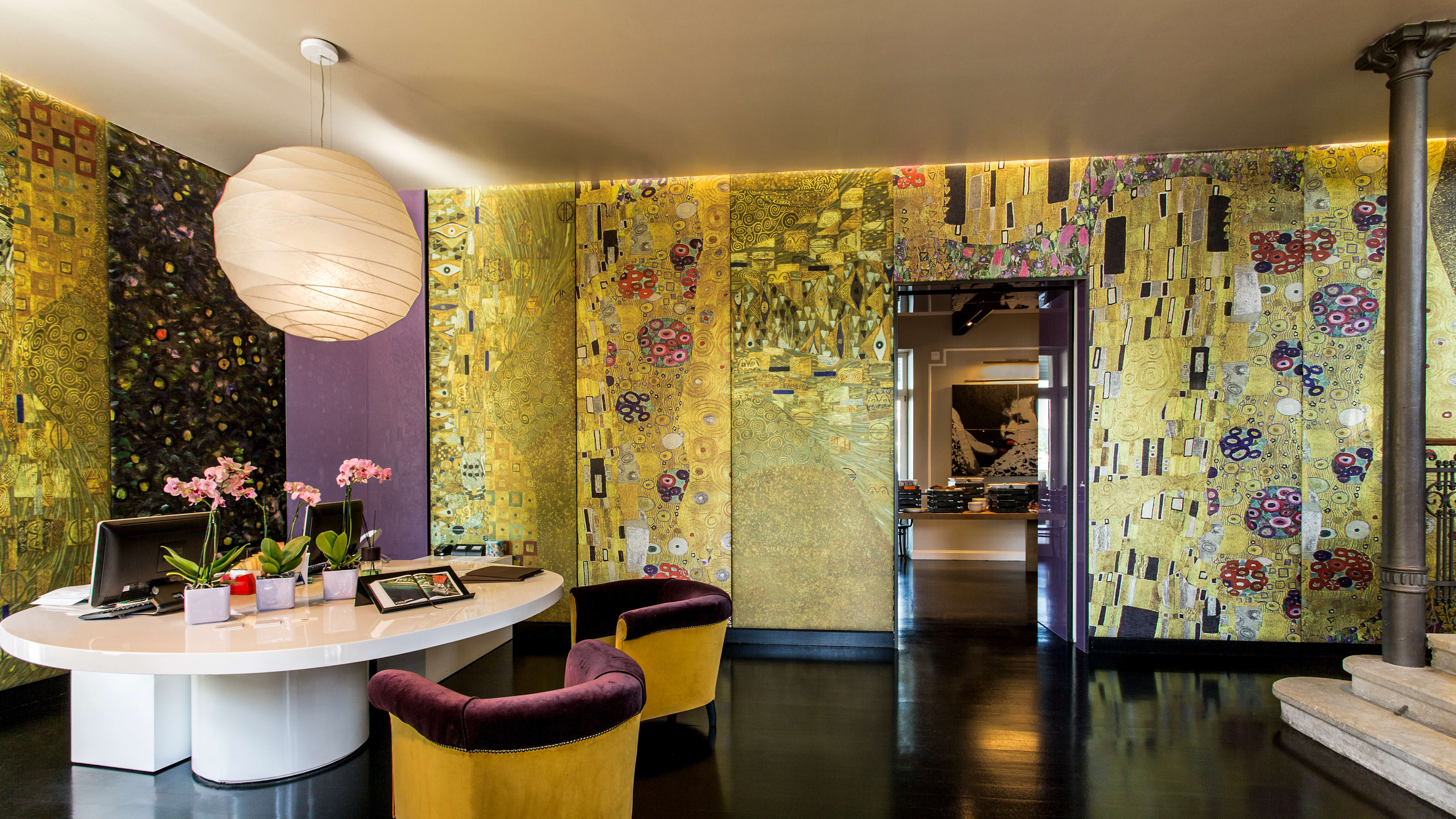 Italian design whizz Piero Lissoni’s light touch is evident behind the hotel’s classic turn-of-the-century façade (he’s also responsible for the Conservatorium’s quirky-cool interiors in Amsterdam). The reception and bar areas mix soft-toned furnishings, carefully preserved original mouldings and floor-to-ceiling murals inspired by Klimt’s golden phase; upstairs, the original light stone treads and ornate ironwork make way for a sharp sheet-glassed staircase to the top-floor extension.
