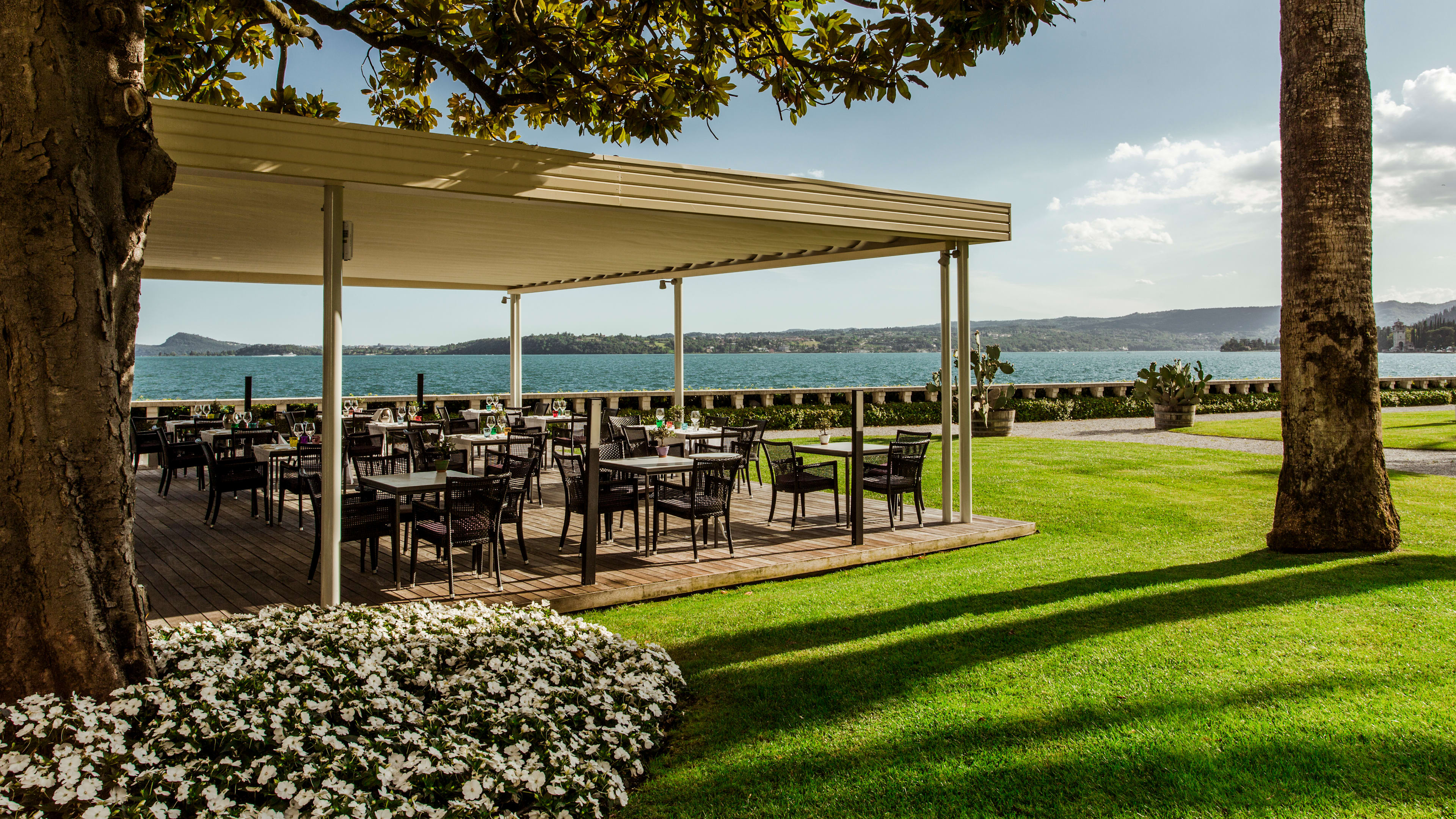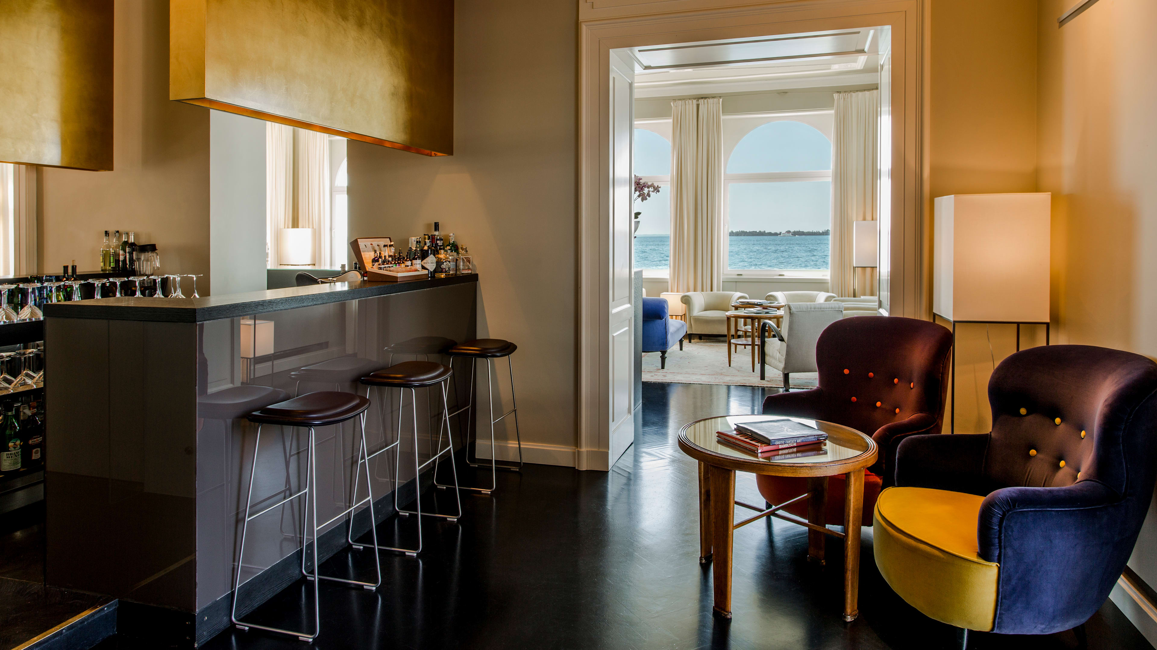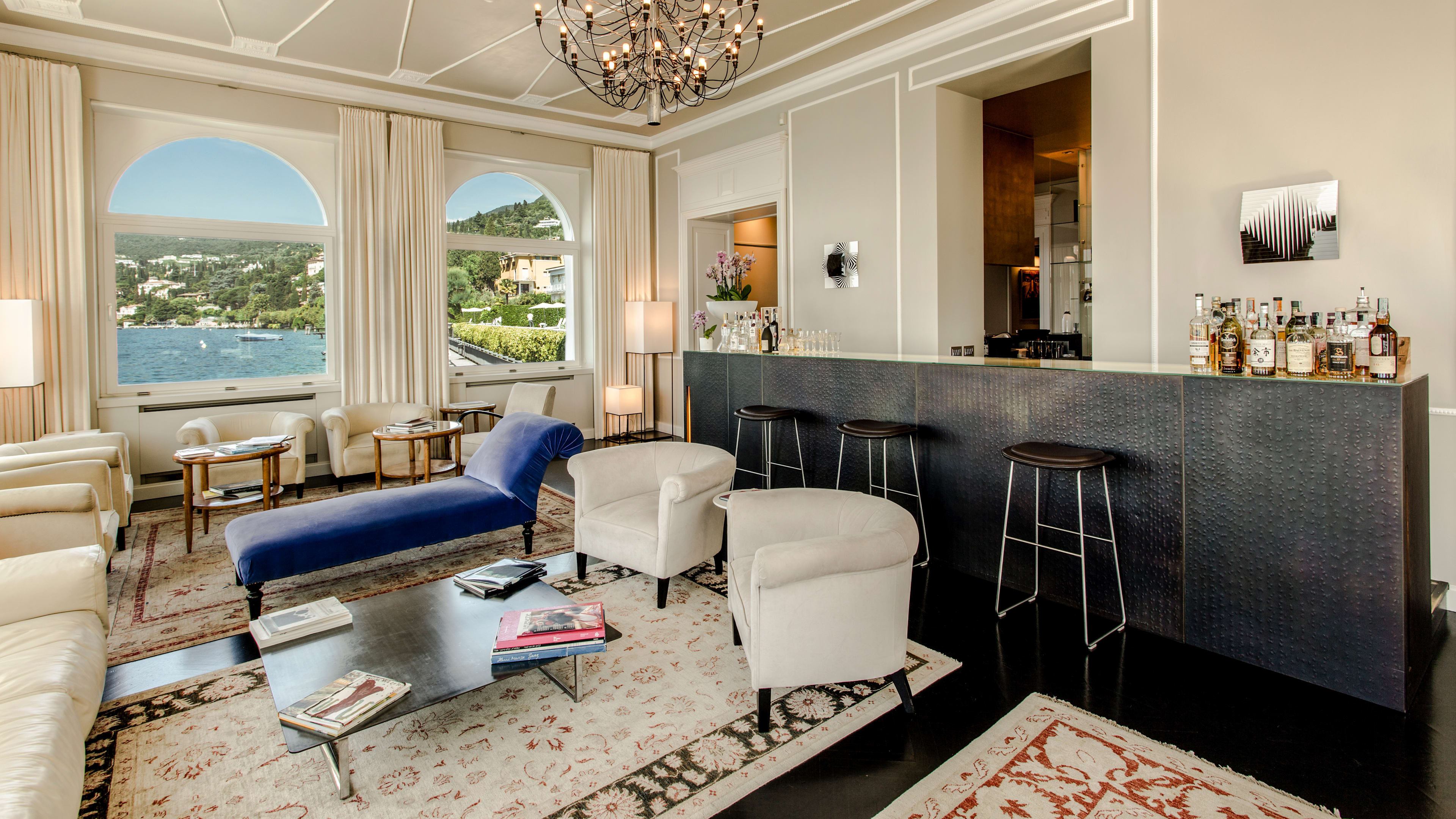Housed in an extension built over the water, the bar has panoramic windows and sweeping lake views. Grab a deep armchair, admire the original mouldings above, and make yourself at home: Enzo, the gregarious barman, talks about wines as if they were old friends, but can also whip up a gentle mimosa or a heady passione (rum, passion fruit, banana syrup and prosecco, if you’re wondering).